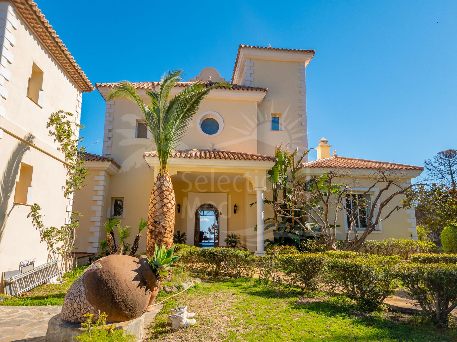 Outside, the grounds offer a tranquil Mediterranean oasis. Mature gardens with established trees, including a striking avocado tree, surround the property, creating a sense of seclusion and natural beauty. A private swimming pool and paddle tennis court invite year-round outdoor living, while the 163 m² of terraces provide multiple settings for al fresco dining, relaxation and elegant evening gatherings.