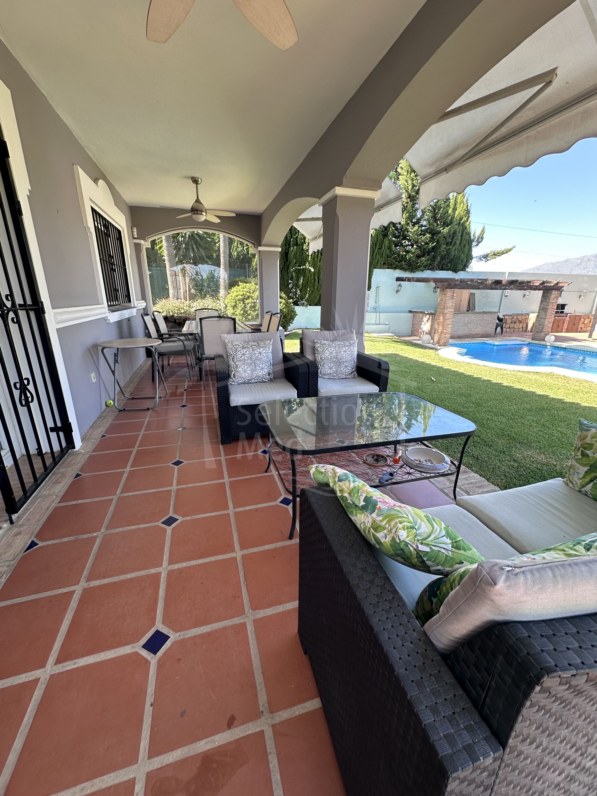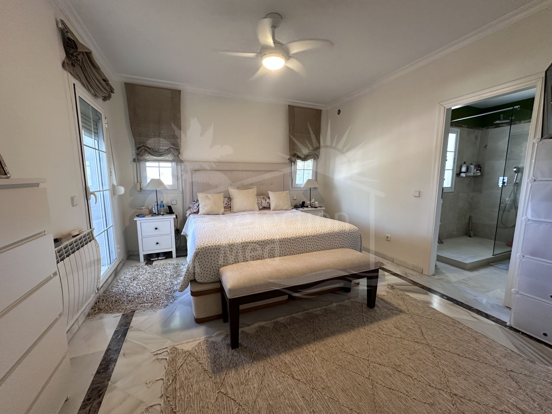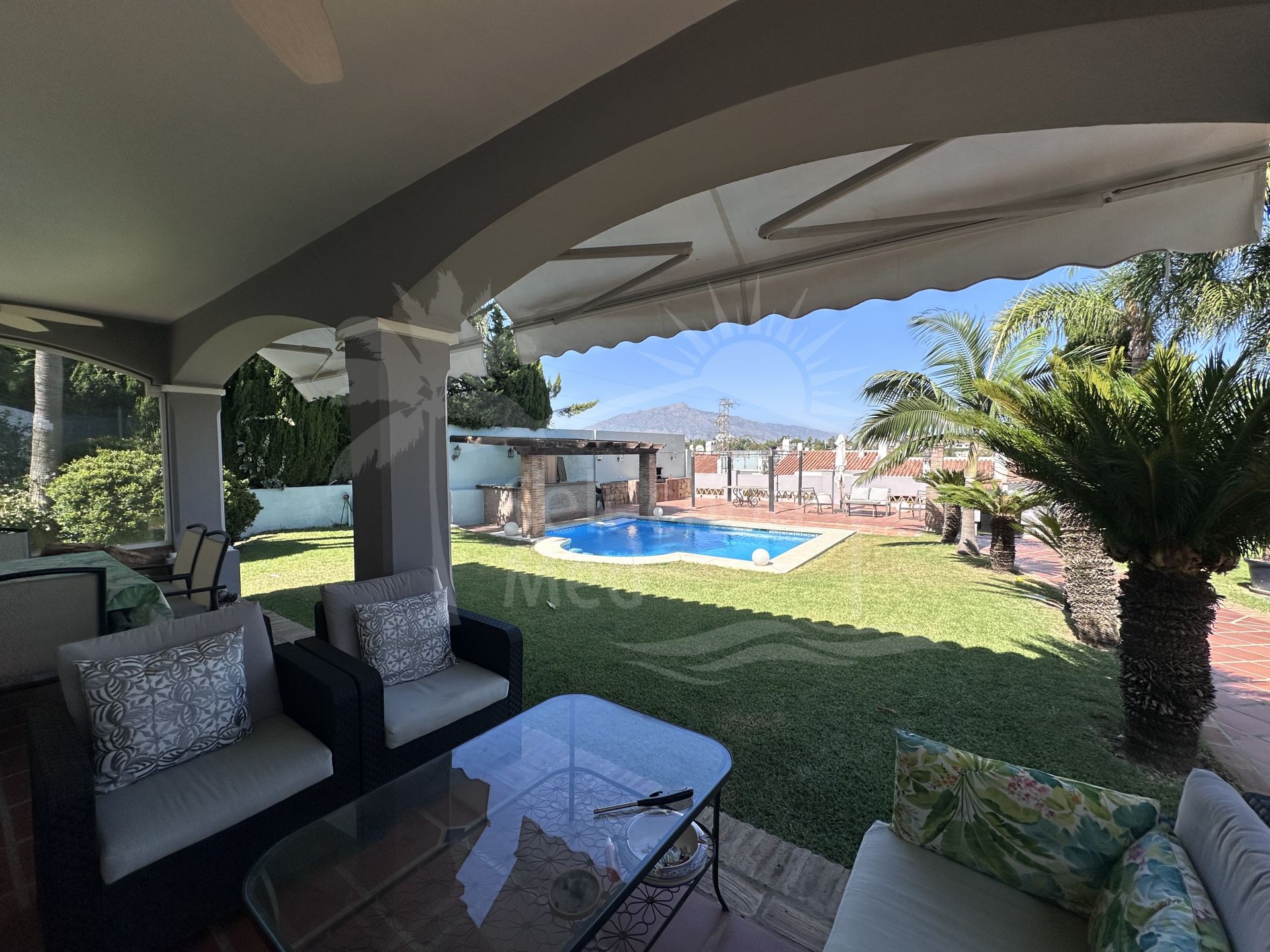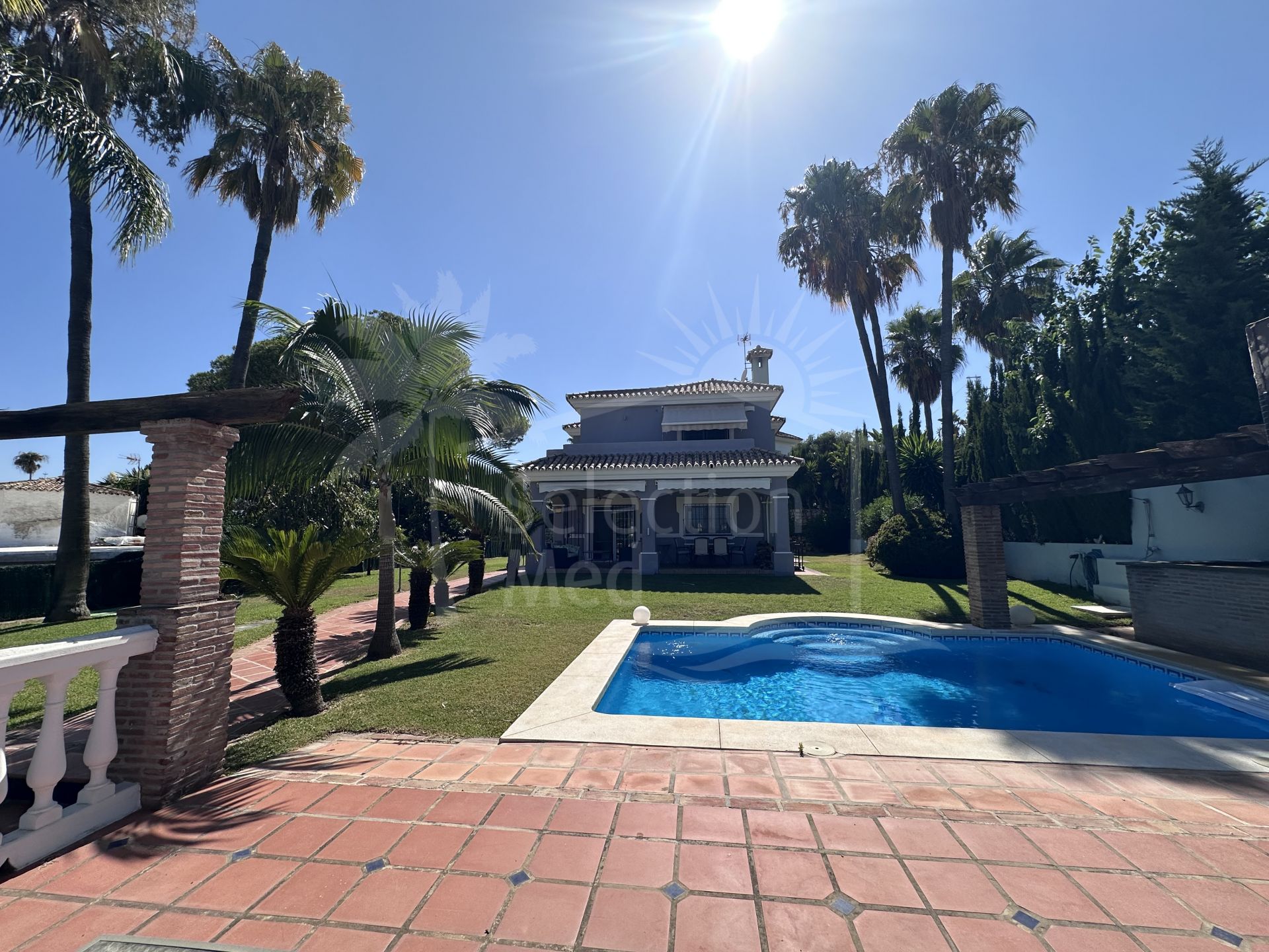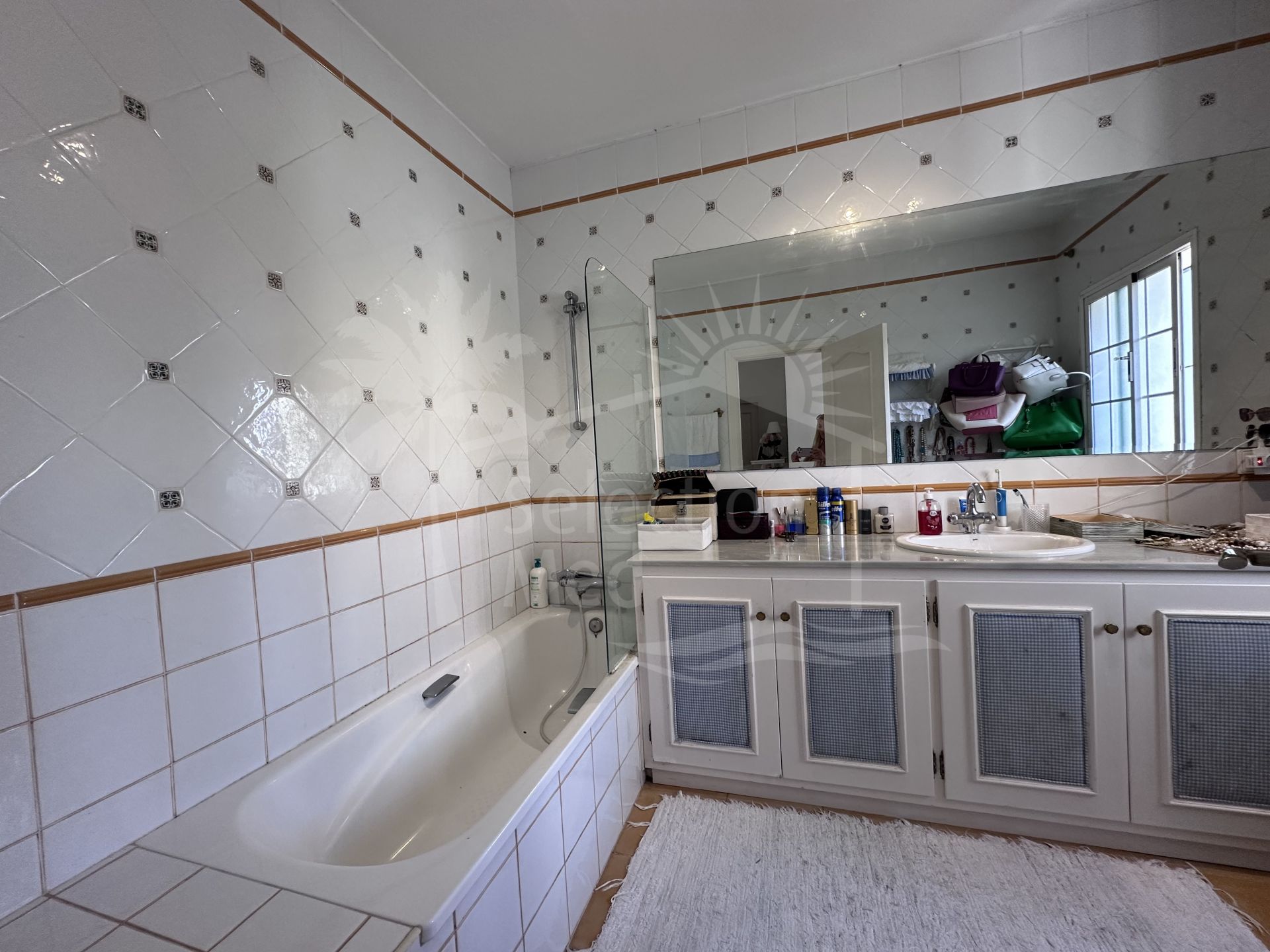 Villa for sale in Estepona with 3 bedrooms, 2 bathrooms, 1 on suite bathroom, 1 toilet and with orientation south/east, with private swimming pool, private garage (2 parking spaces) and private garden. Regarding property dimensions, it has 289 m² built, 754 m² plot, 210 m² interior and 79 m² terrace. Has the following facilities mountainside, amenities near, air conditioning, fully fitted kitchen, utility room, fireplace, satellite tv, storage room, alarm, security entrance, double glazing, video entrance, dining room, barbecue, guest toilet, private terrace, living room, parquet floors, mountain view, laundry room, internet – wi-fi, covered terrace, fitted wardrobes, garden view, pool view, wine cellar, unfurnished, close to golf, uncovered terrace, glass doors, separate dining room, balcony, good condition, close to shops, close to schools, individual a/c units, electric radiators and partial sea views.