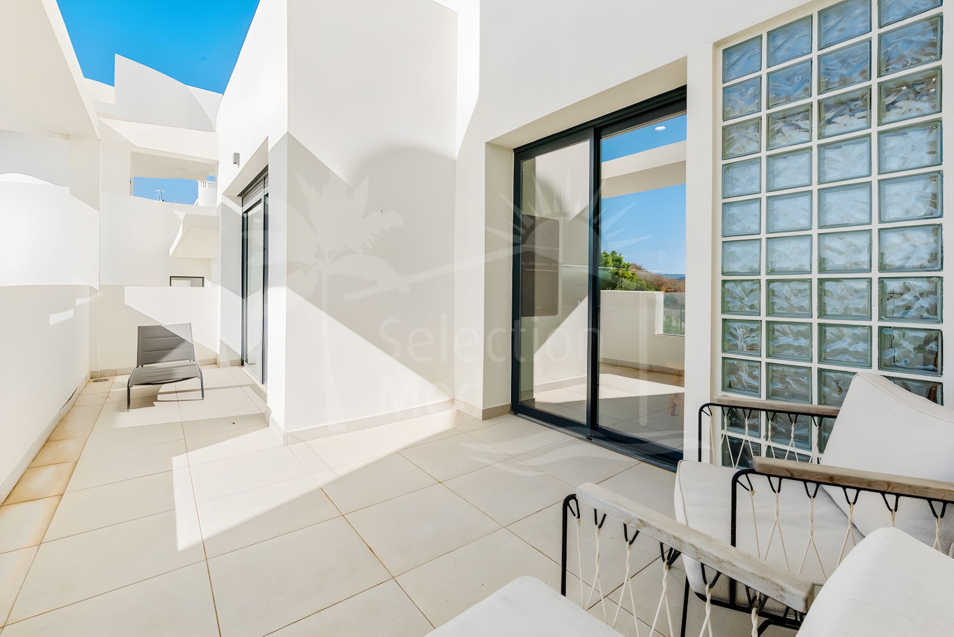 The two terraces, located on opposite sides of the apartment, flood the home with natural light throughout the day and offer the flexibility to enjoy either sun or shade at any time. The main terrace, with its crystal balustrades, maximises the stunning views, while the second sunlit terrace is ideal for late afternoon relaxation.
