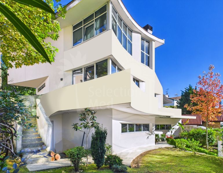 Julia Bachelot invites you to discover this truly exceptional property, ideally located just moments from the Bay of Txingudi. This unique architect-designed home immediately stands out for its contemporary design, flowing curved lines, and high-end finishes, offering a rare...