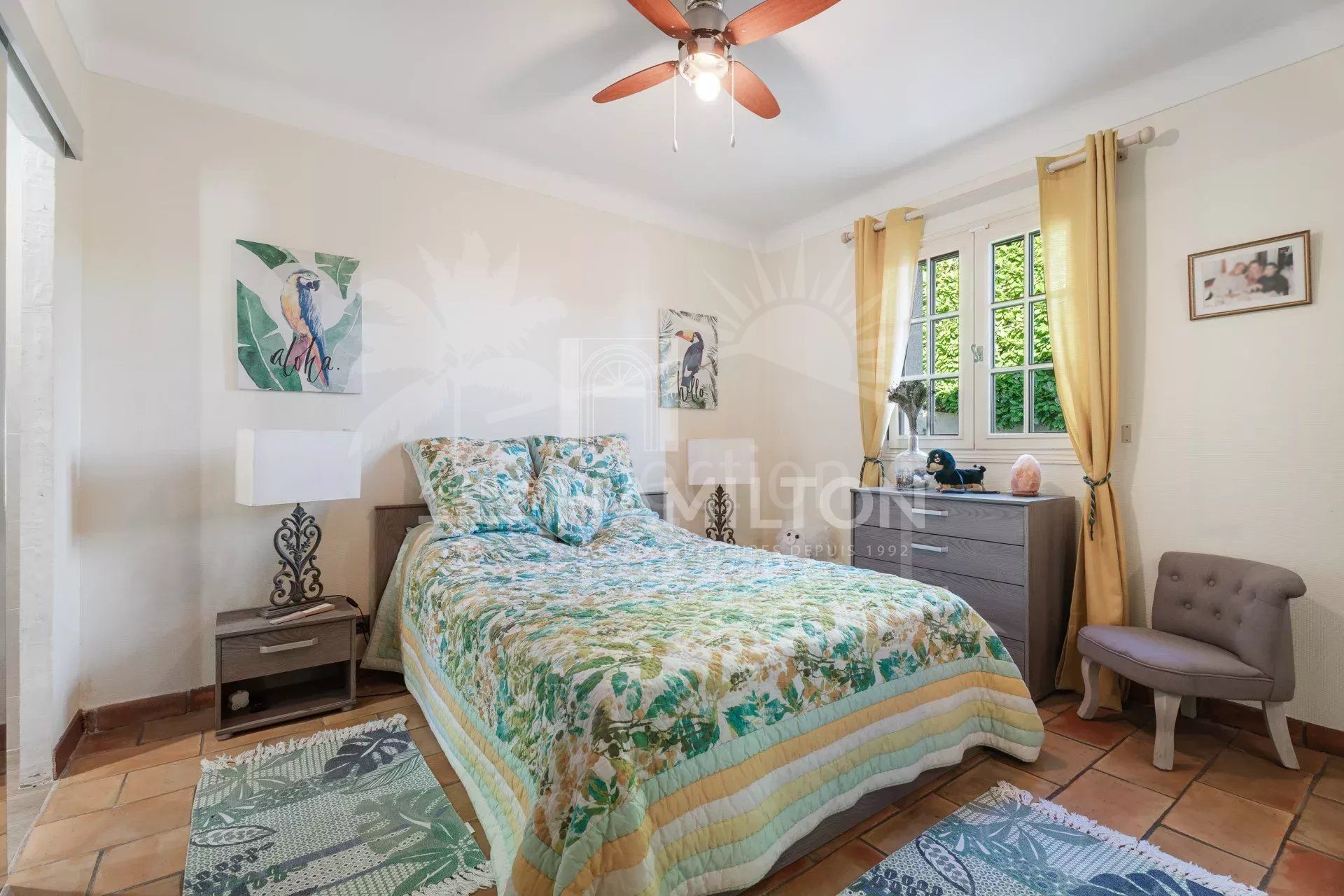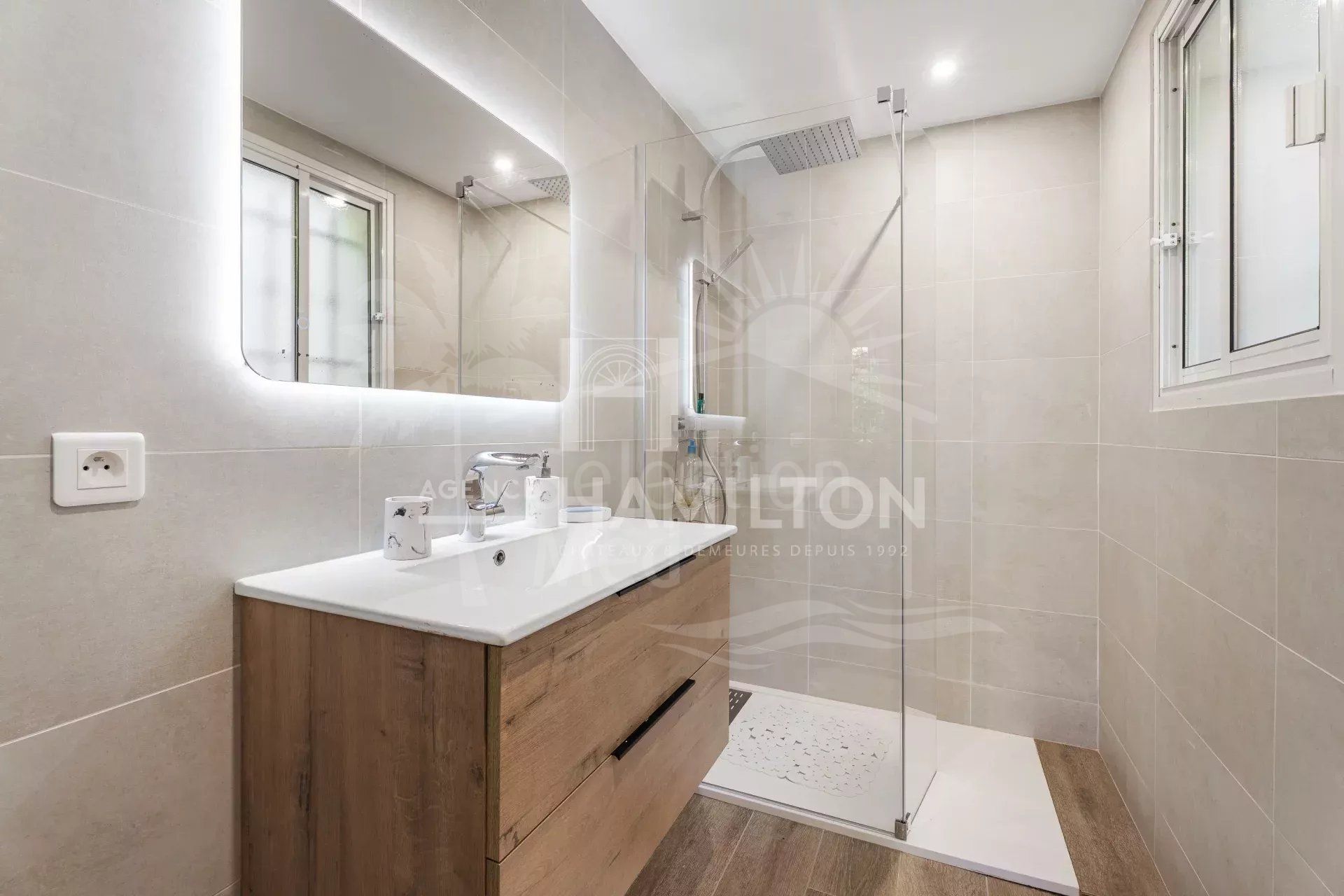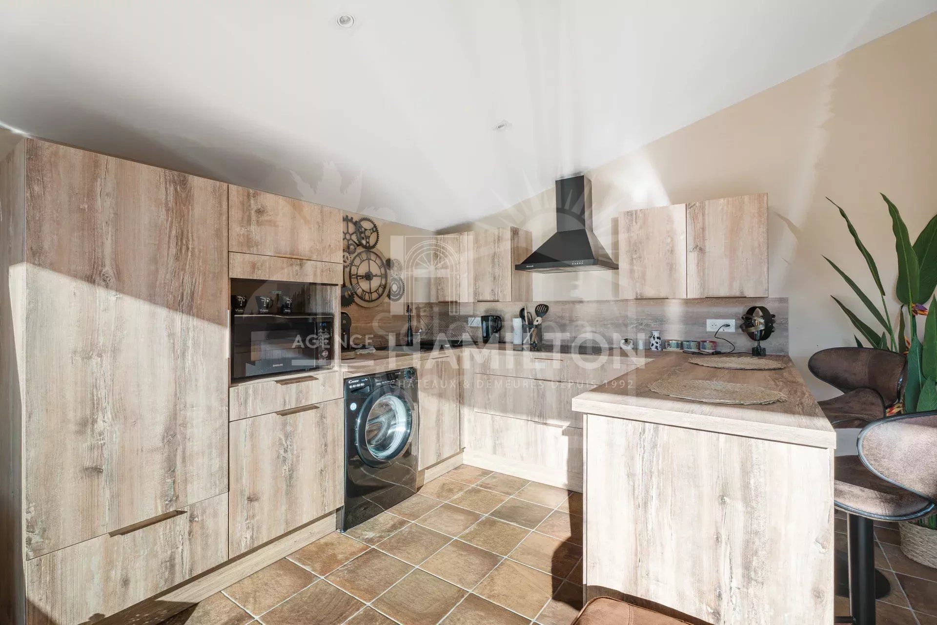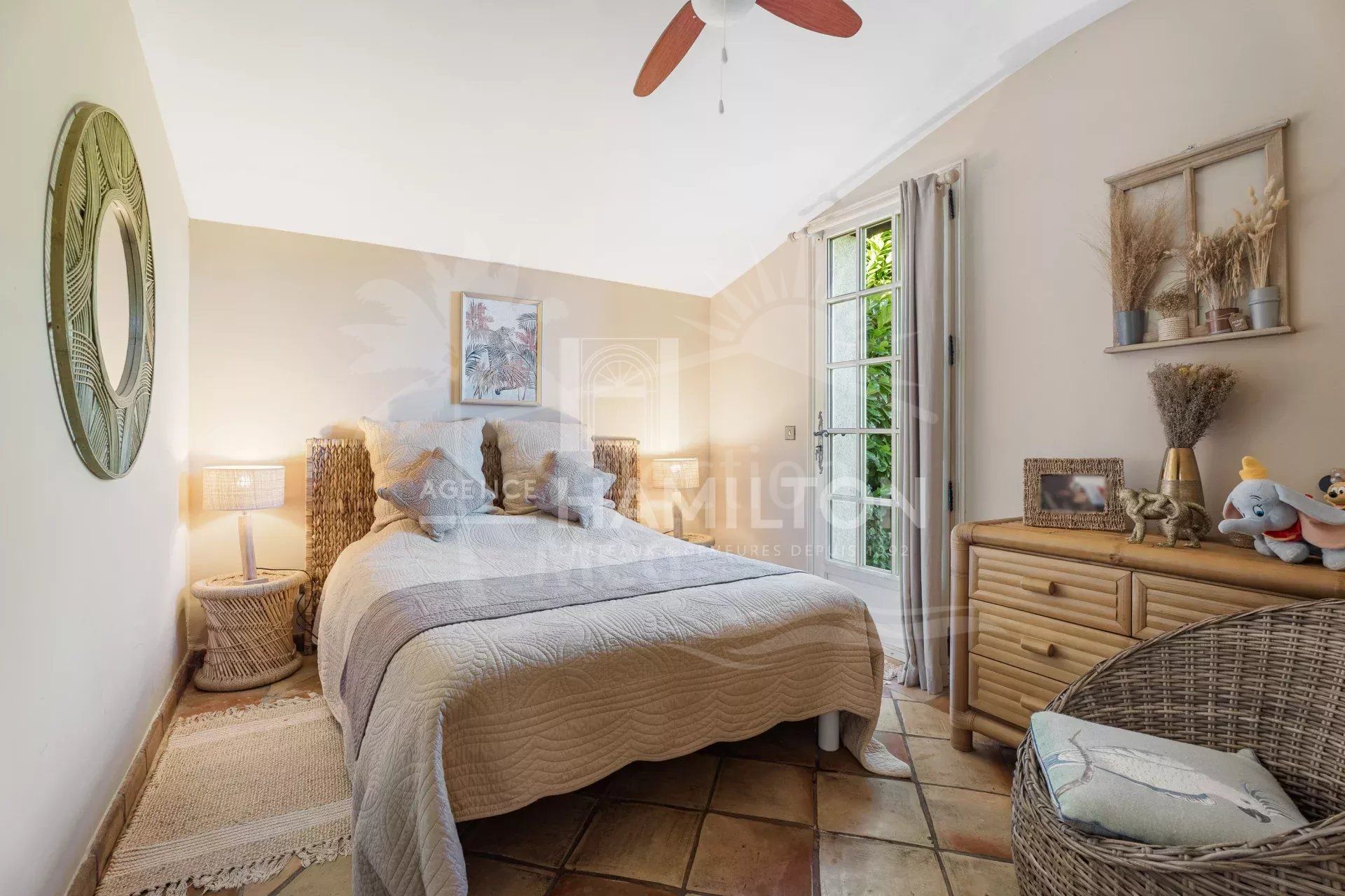 Outside, the flat 1,900 m² garden offers a peaceful atmosphere, ideal for enjoying the region’s mild climate. The garden includes a sunny swimming pool, a pool house, a jacuzzi for relaxing moments, and even a pétanque court for those who enjoy outdoor activities.