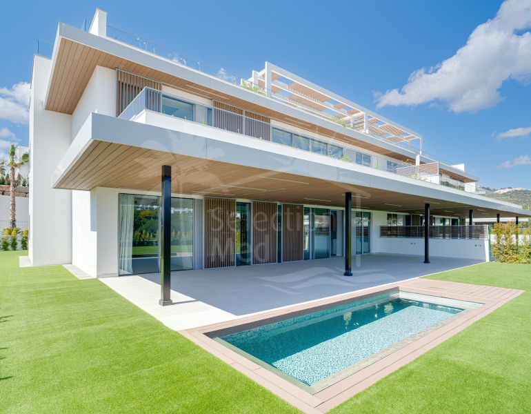 This magnificent ground-floor duplex apartment is located in Santa Clara, Marbella East, perfectly positioned close to the hospital, shops, golf courses, schools, and the beach. The property seamlessly blends indoor and outdoor living, featuring a private 270 sqm garden, a...