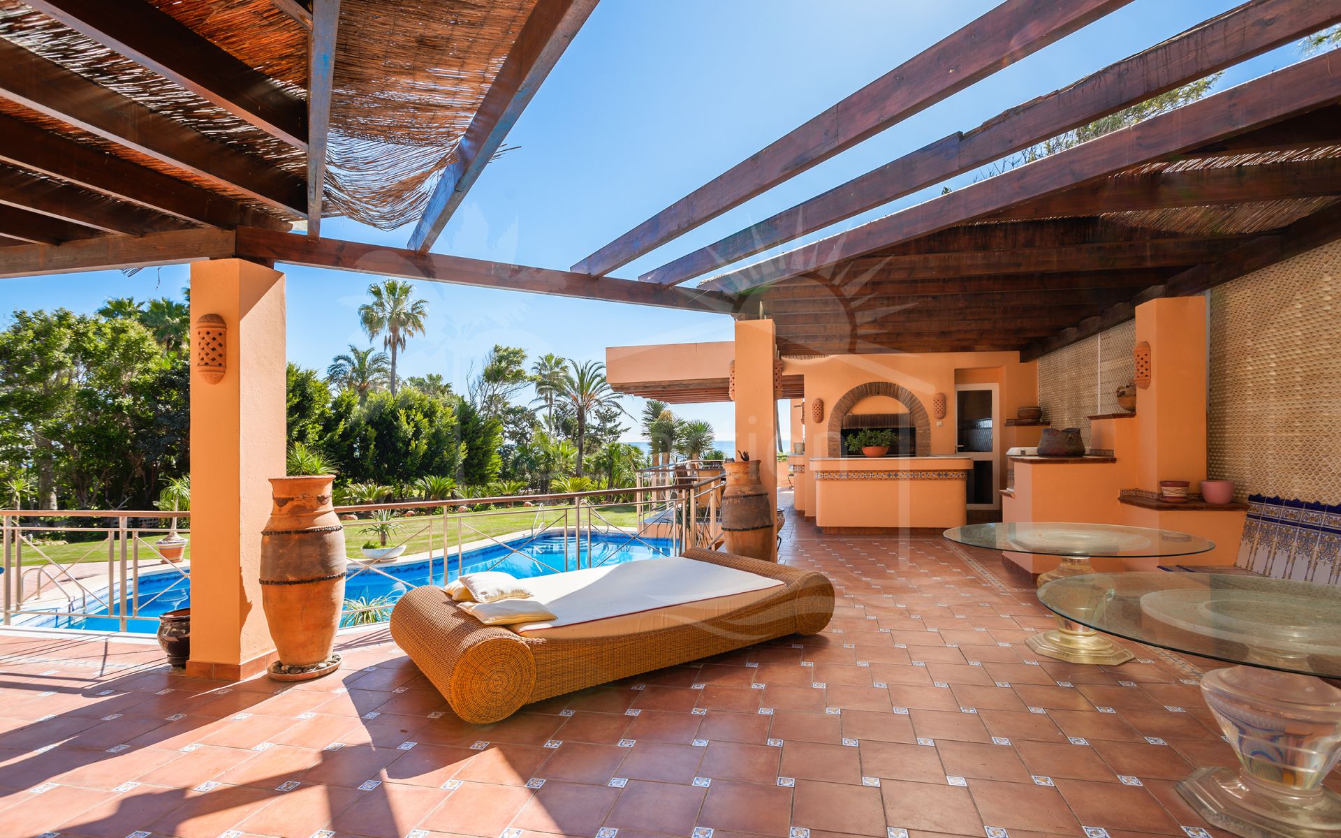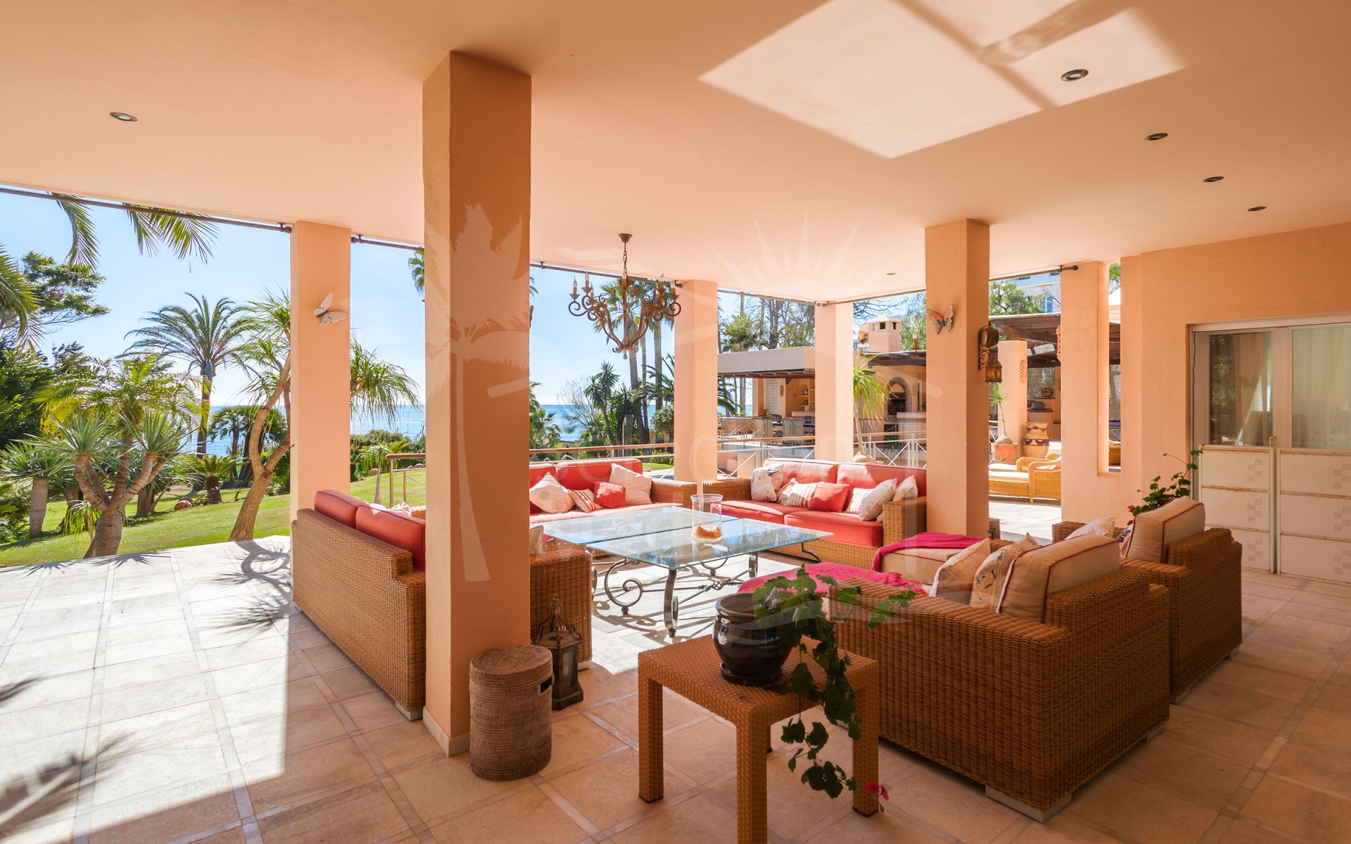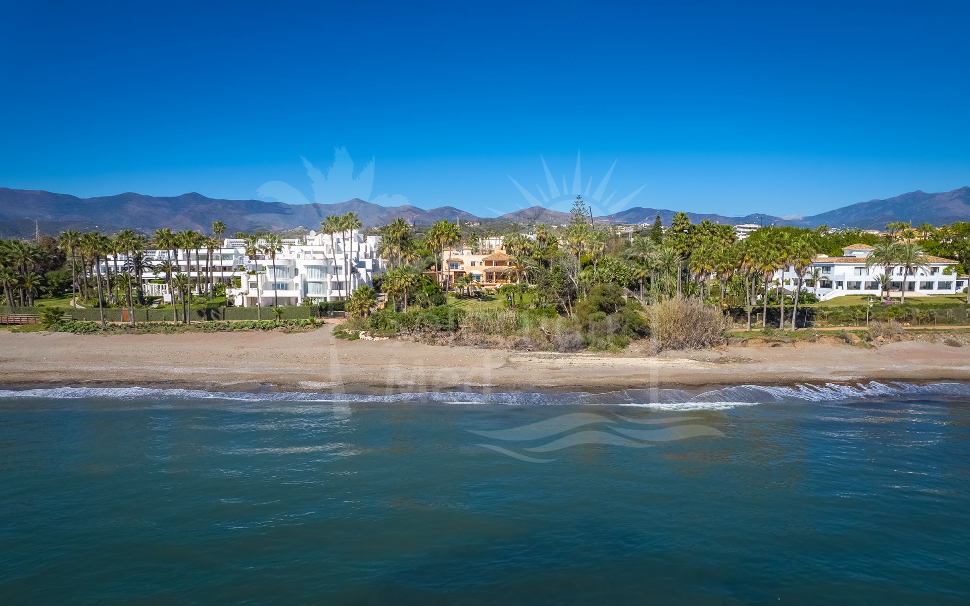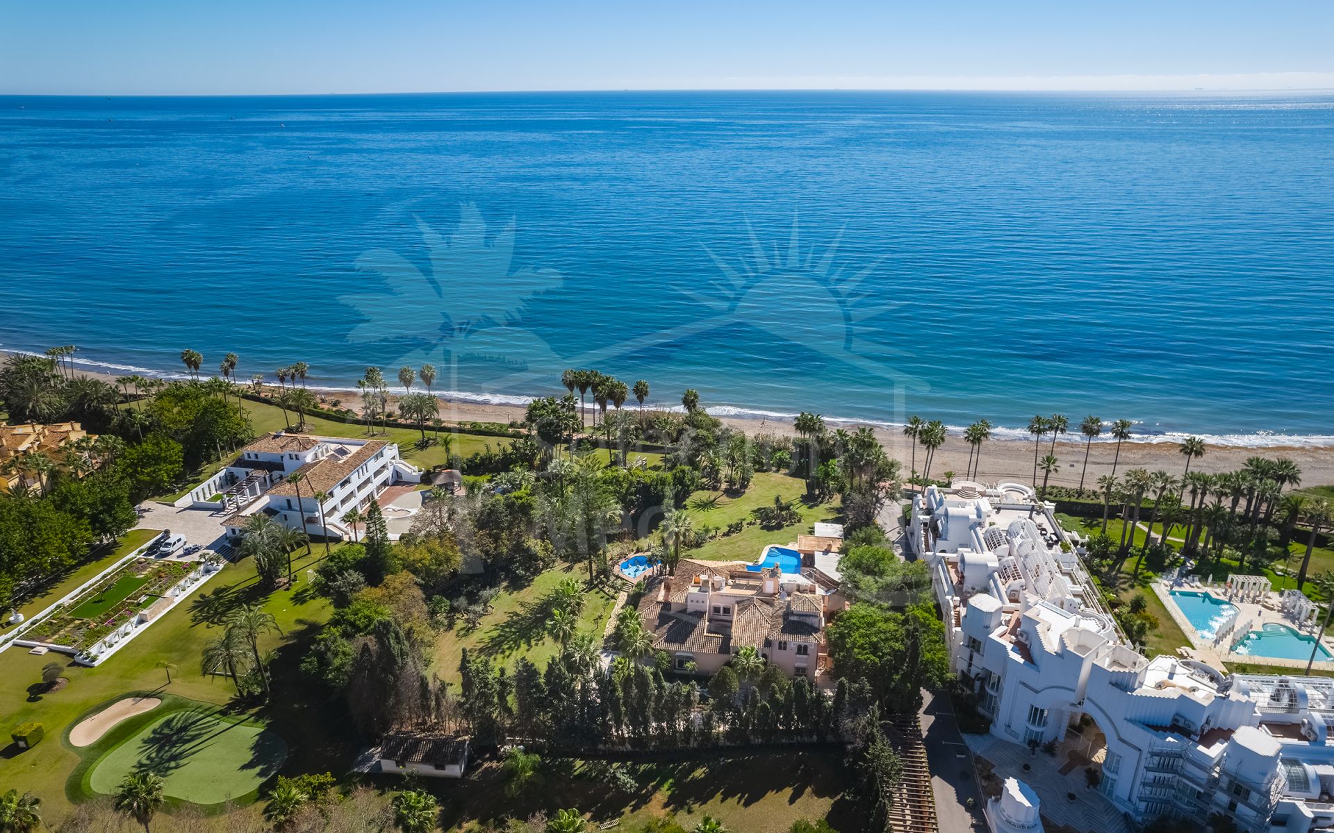 Nestled along the pristine shoreline of the New Golden Mile, this stunning frontline beach villa epitomises luxury living at its finest. Boasting a grand total of 8 bedrooms, 10 bathrooms, and a separate guest apartment, this expansive estate offers unparalleled comfort and sophistication.