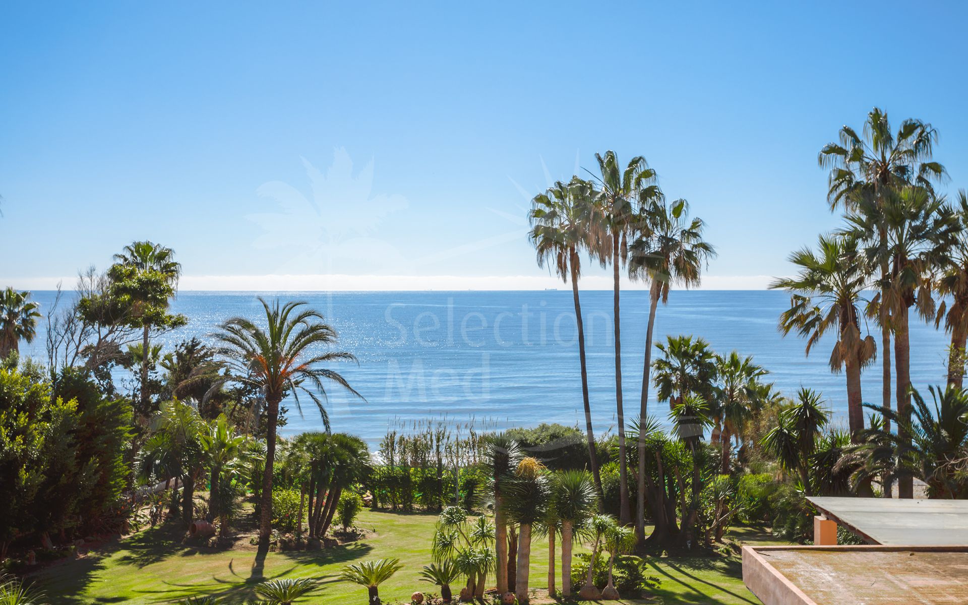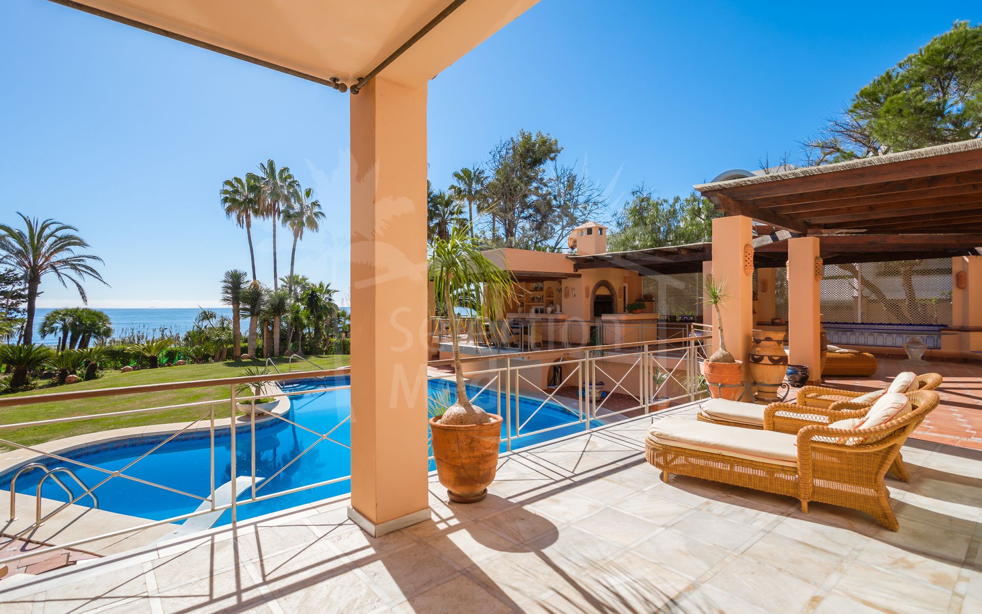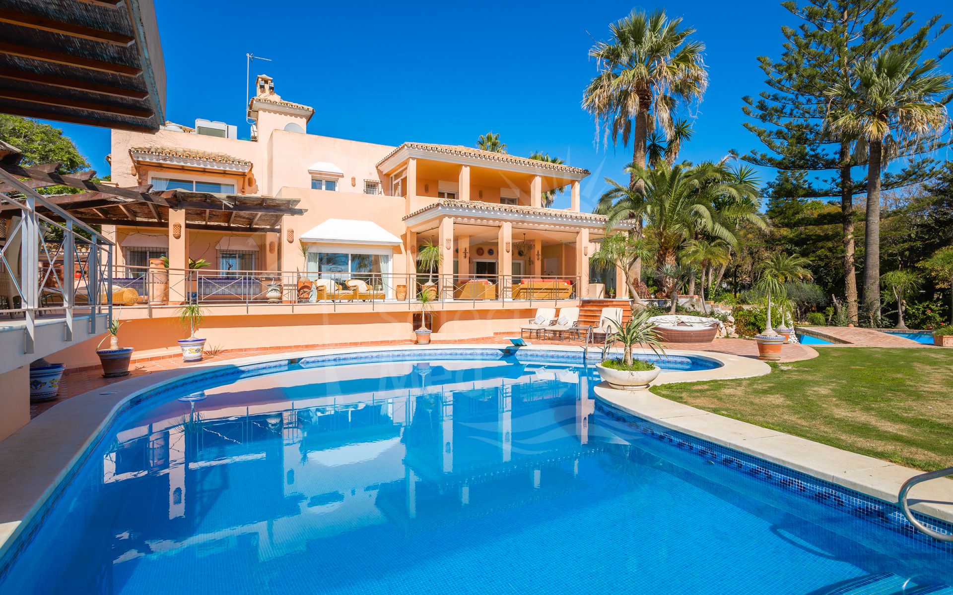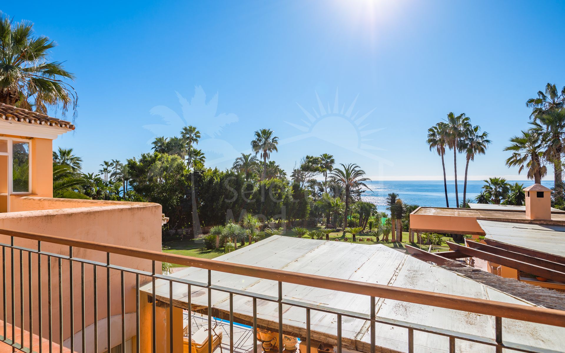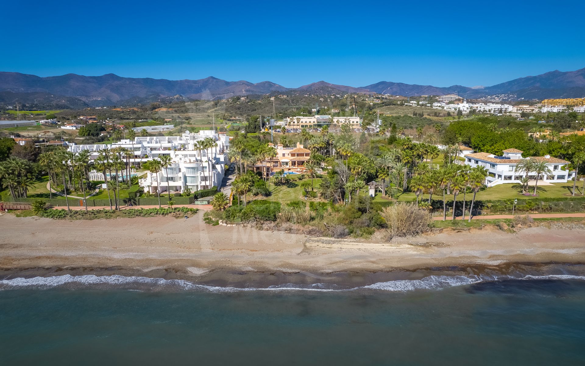 Nestled along the pristine shoreline of the New Golden Mile, this stunning frontline beach villa epitomises luxury living at its finest. Boasting a grand total of 8 bedrooms, 10 bathrooms, and a separate guest apartment, this expansive estate offers unparalleled comfort and sophistication.