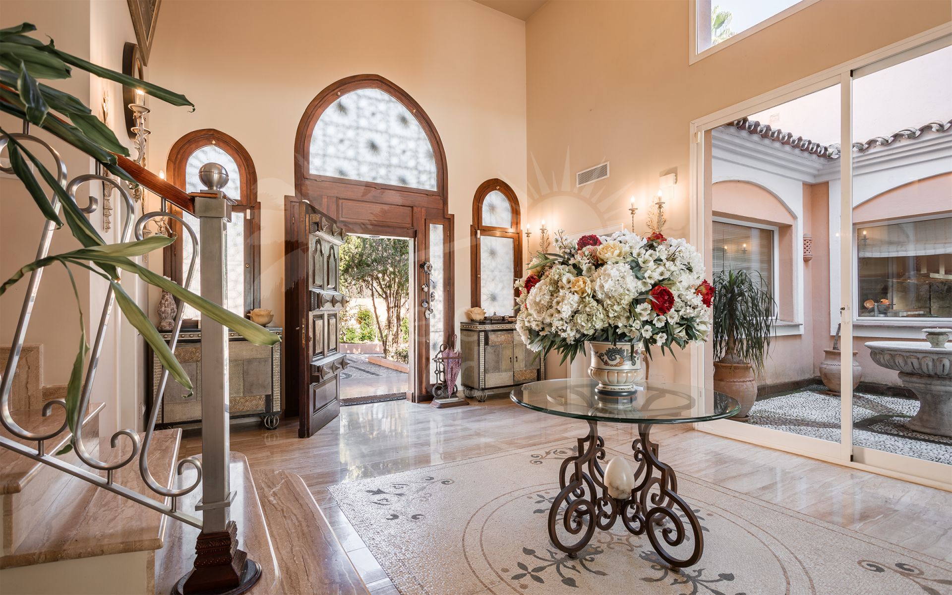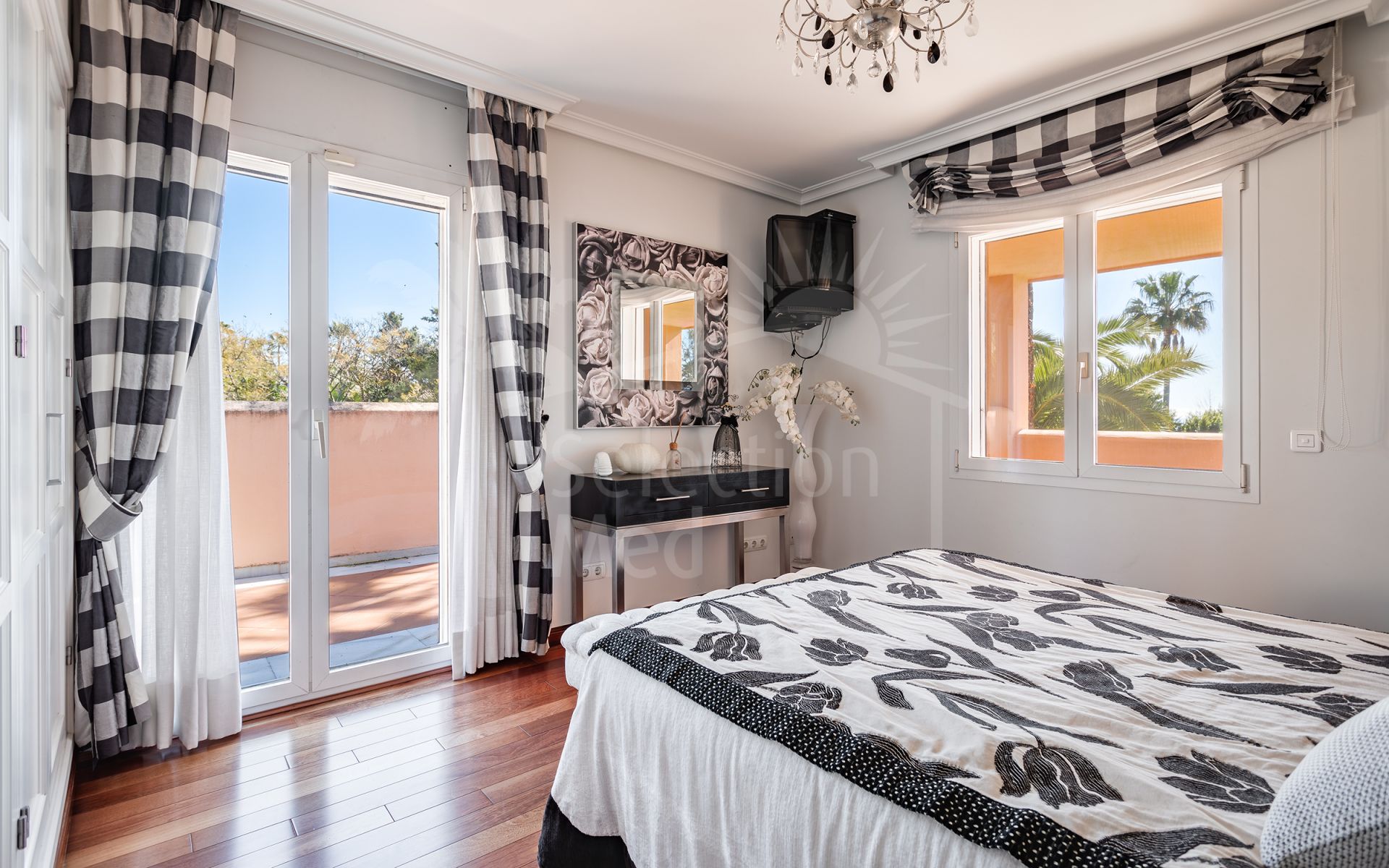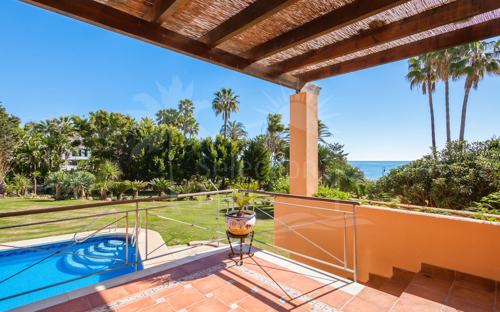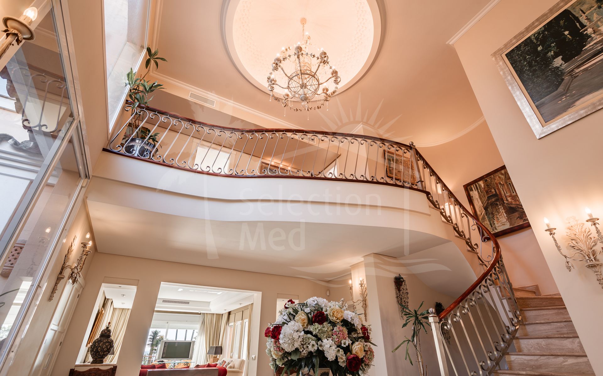 Nestled along the pristine shoreline of the New Golden Mile, this stunning frontline beach villa epitomises luxury living at its finest. Boasting a grand total of 8 bedrooms, 10 bathrooms, and a separate guest apartment, this expansive estate offers unparalleled comfort and sophistication.