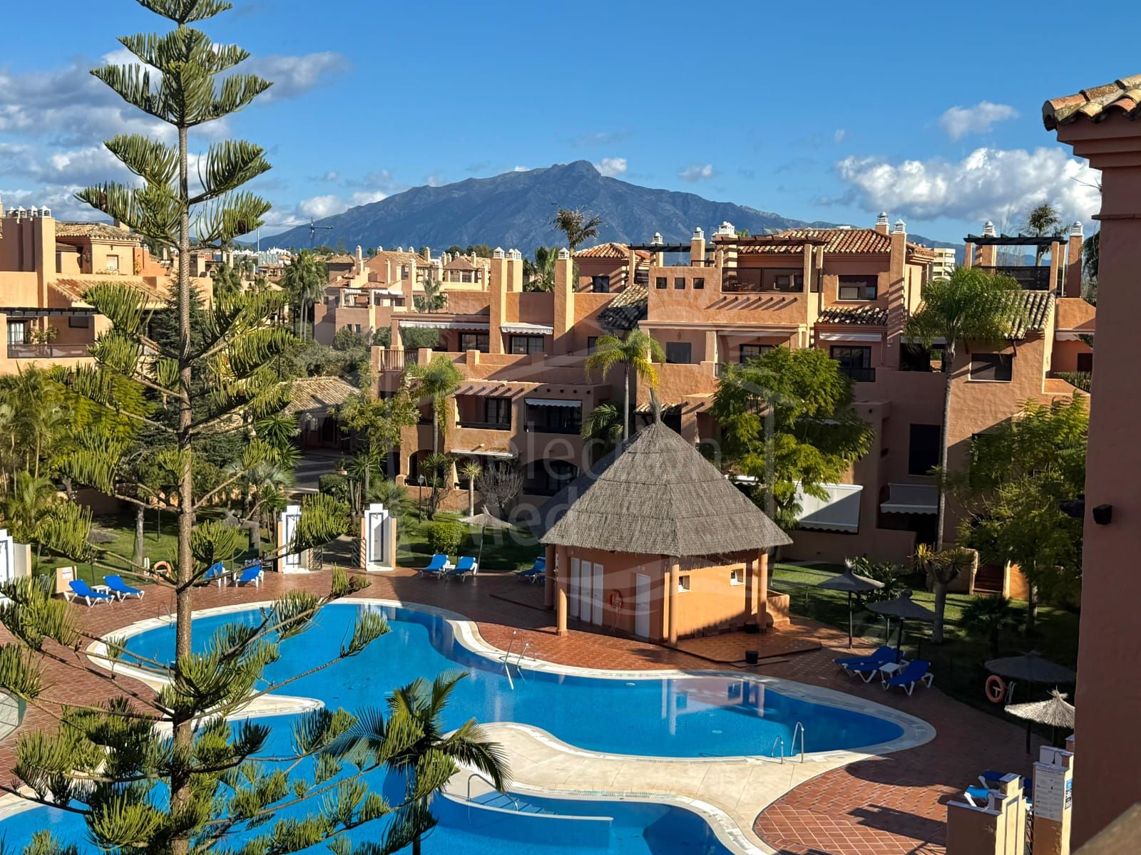 Discover this unparalleled duplex penthouse in the prestigious Hacienda del Sol urbanisation, a gated beachside community on the New Golden Mile between Estepona and Marbella. Renowned as the finest penthouse in Phase 1, this south-facing gem offers exceptional privacy and sunlight, just a short stroll from golden beaches, upscale amenities, and the glamour of Puerto Banús (5-minute drive). Surrounded by lush subtropical gardens, residents enjoy resort-style facilities including six communal swimming pools (with children's areas), a large gym, paddle tennis and tennis courts, expansive green spaces, a playground, and 24-hour security with concierge services – ensuring a secure, family-friendly haven close to golf courses like Los Flamingos and vibrant dining options.
