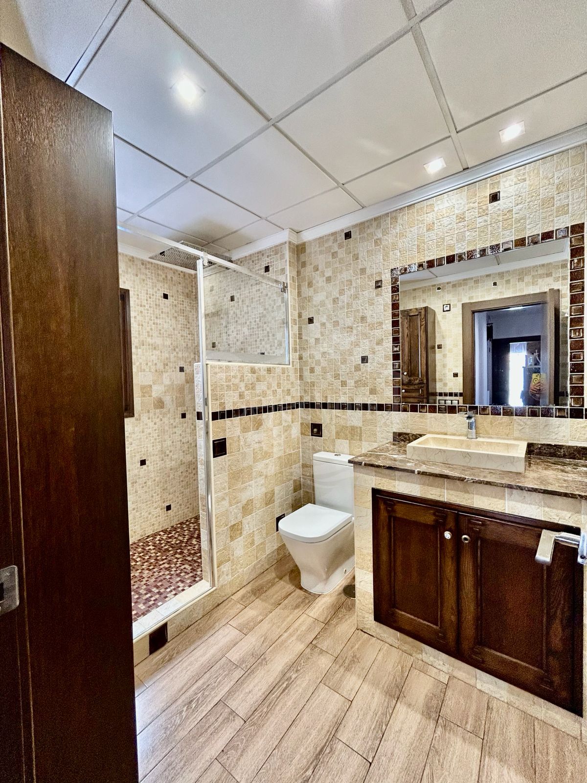 Extras like electric blinds in all bedrooms, mosquito nets on every window, air conditioning, and an American-style fridge-freezer make everyday life even more convenient. The apartment is sold fully furnished and move-in ready.