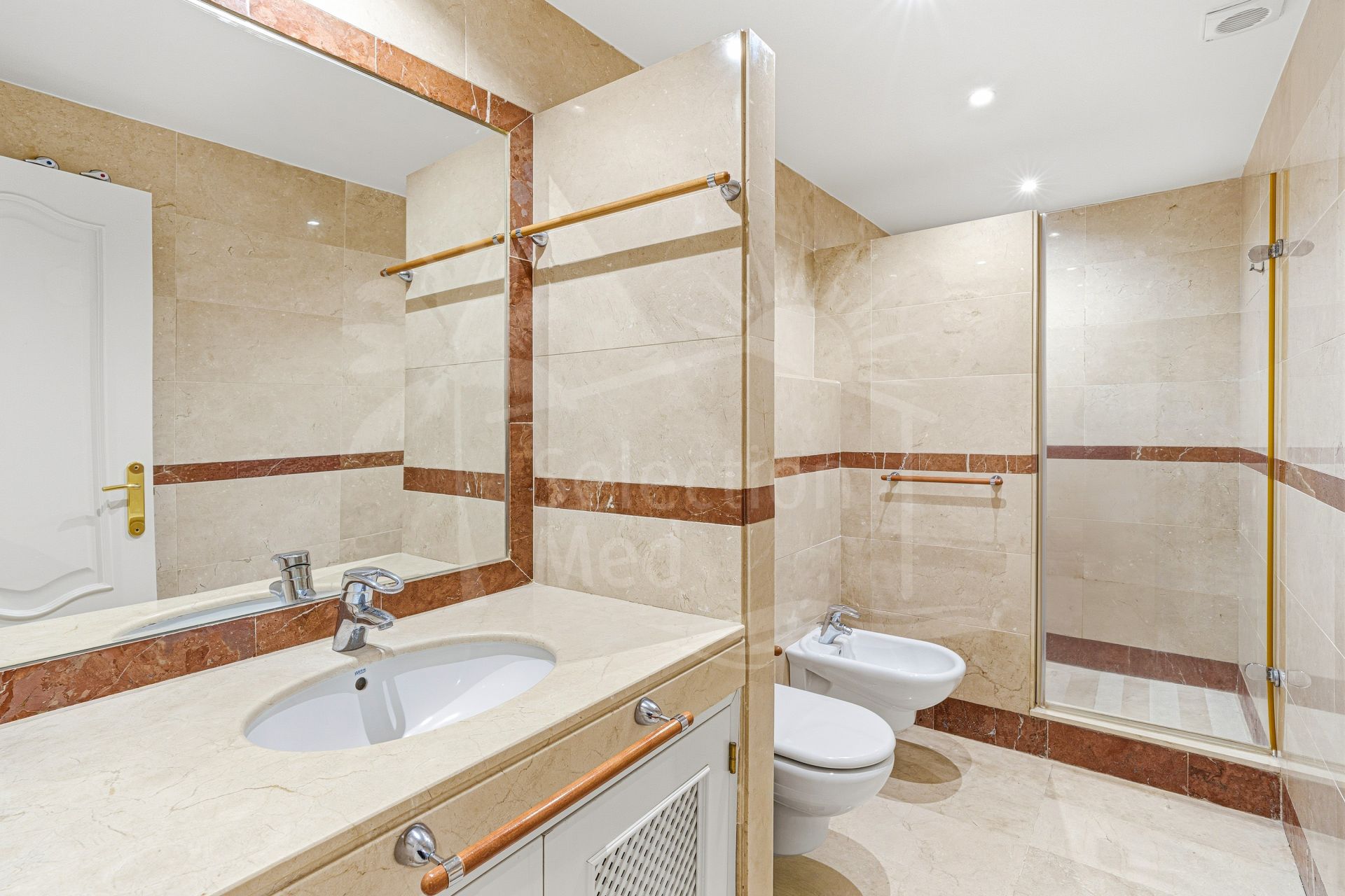 Elegant two-bedroom, beachfront apartment, located in the prestigious Jardin del Mediterráneo, Golden Mile Marbella