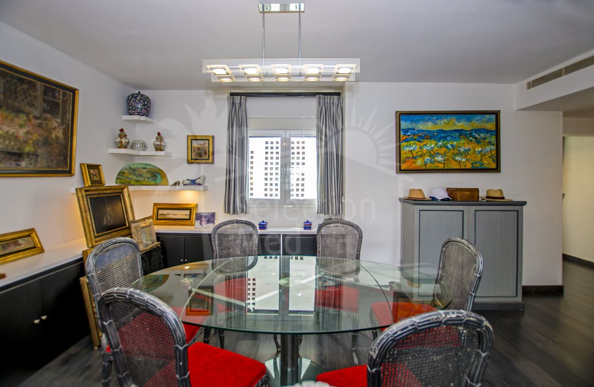 This penthouse sits in the heart of Puerto Banus, Marbella and has everything you could ever want in a home. Enjoy 258 m2 of living space including 1 parking space, an entrance hall, a spacious living room almost 50 m2, dining room, independent kitchen, 3 bedrooms (2 en suite), 3 bathrooms and 2 terraces.