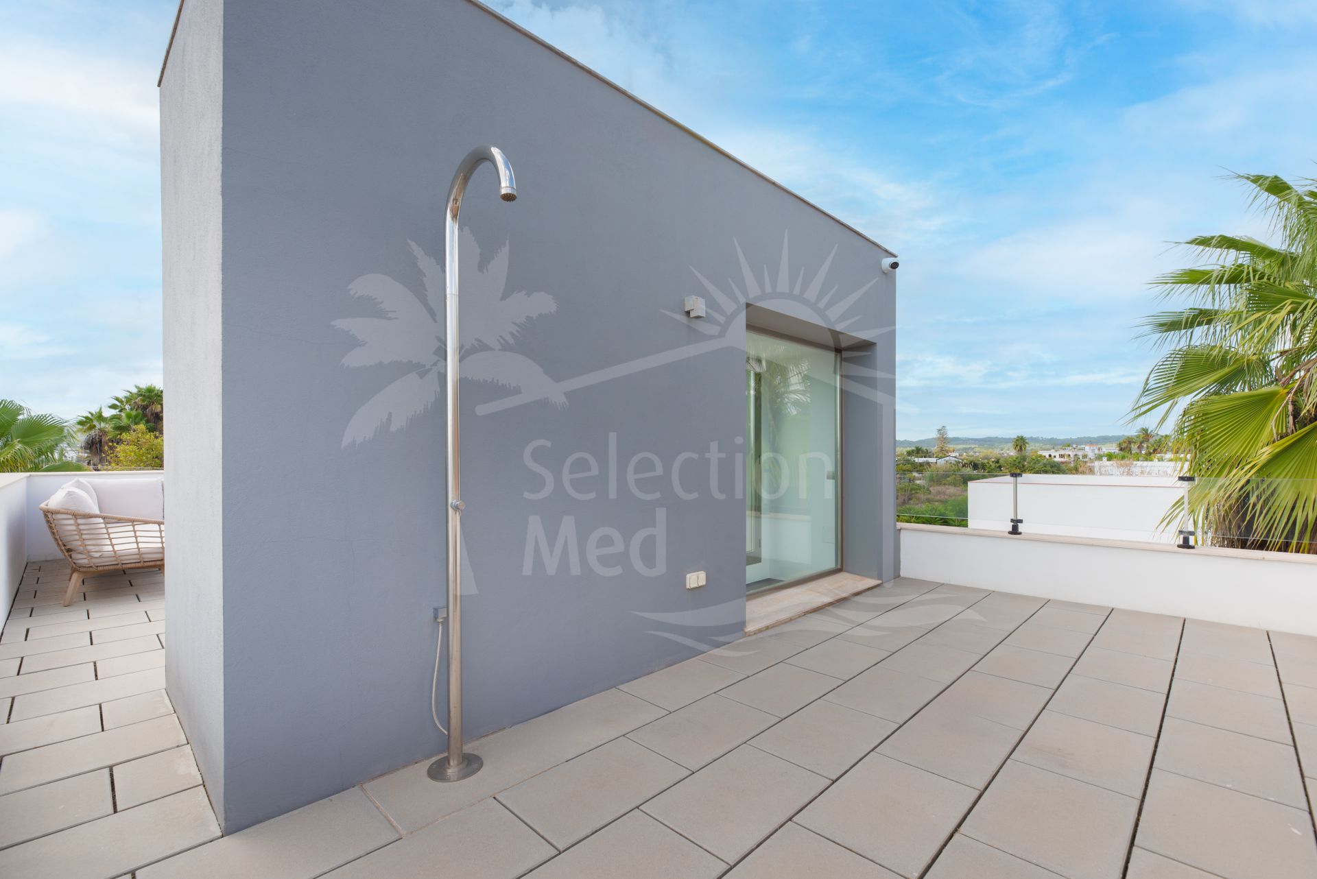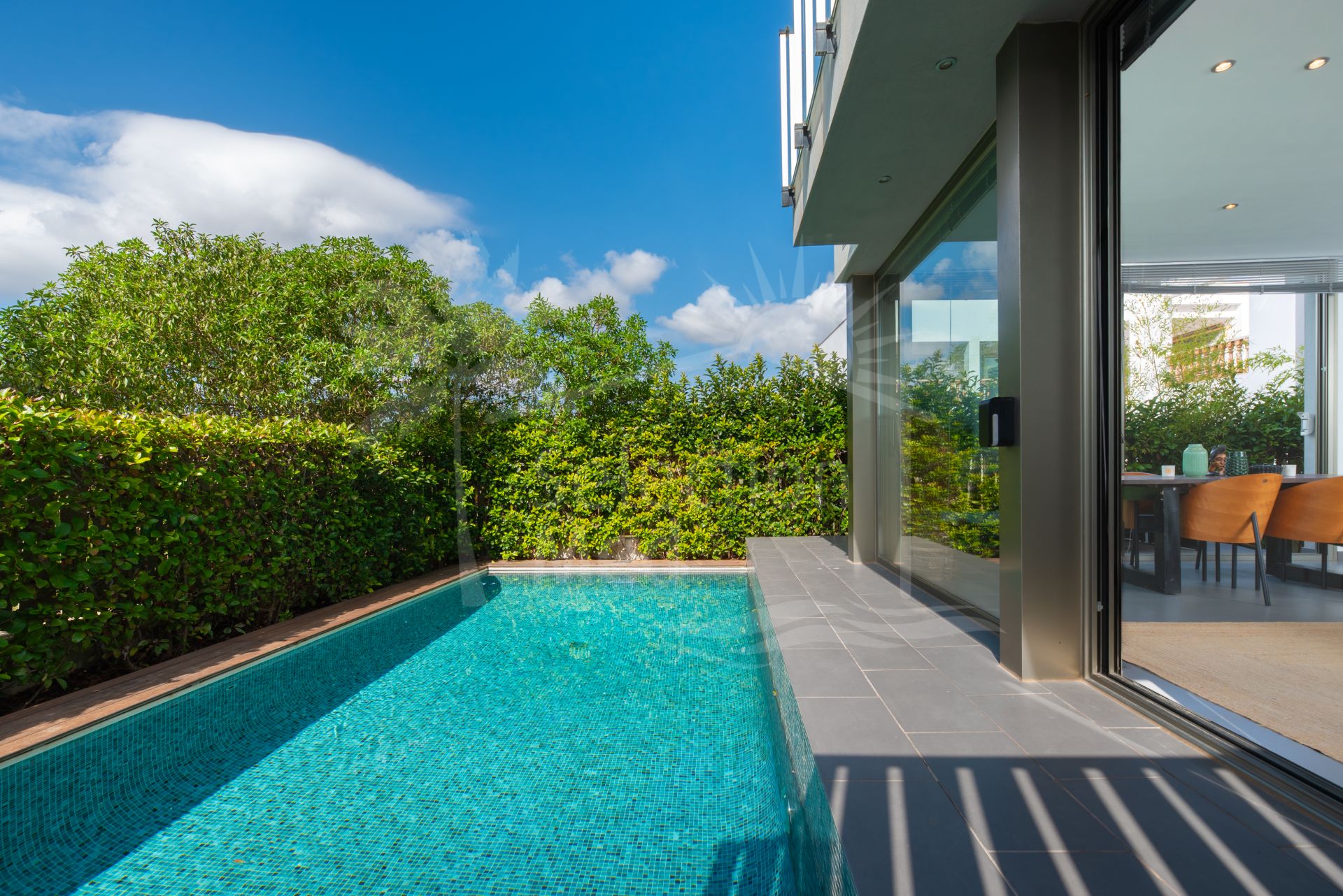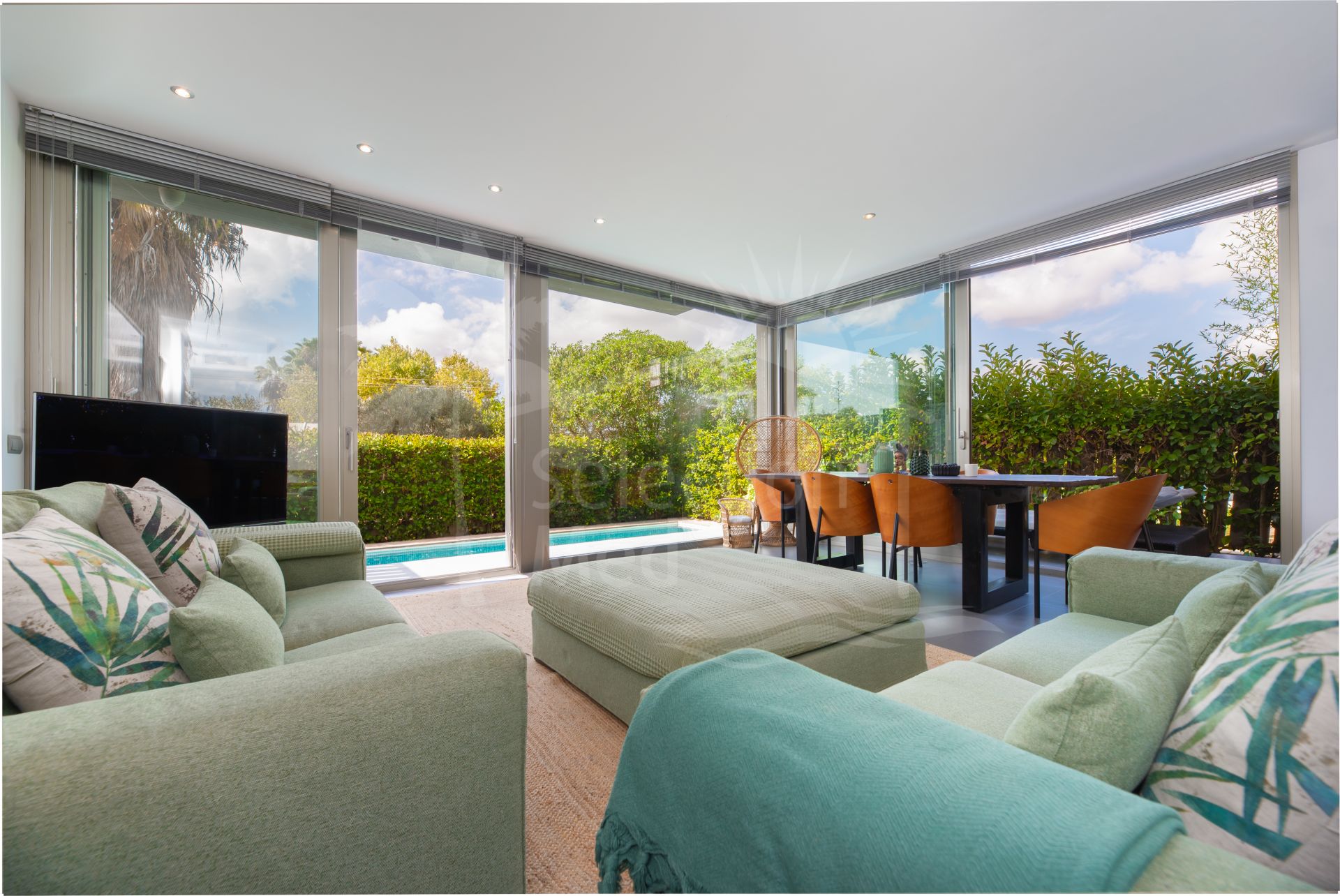 Built in a small residential community of only four houses, this house stands out for its exclusive spaces: private pool, roof terrace and garage with direct access from the interior.