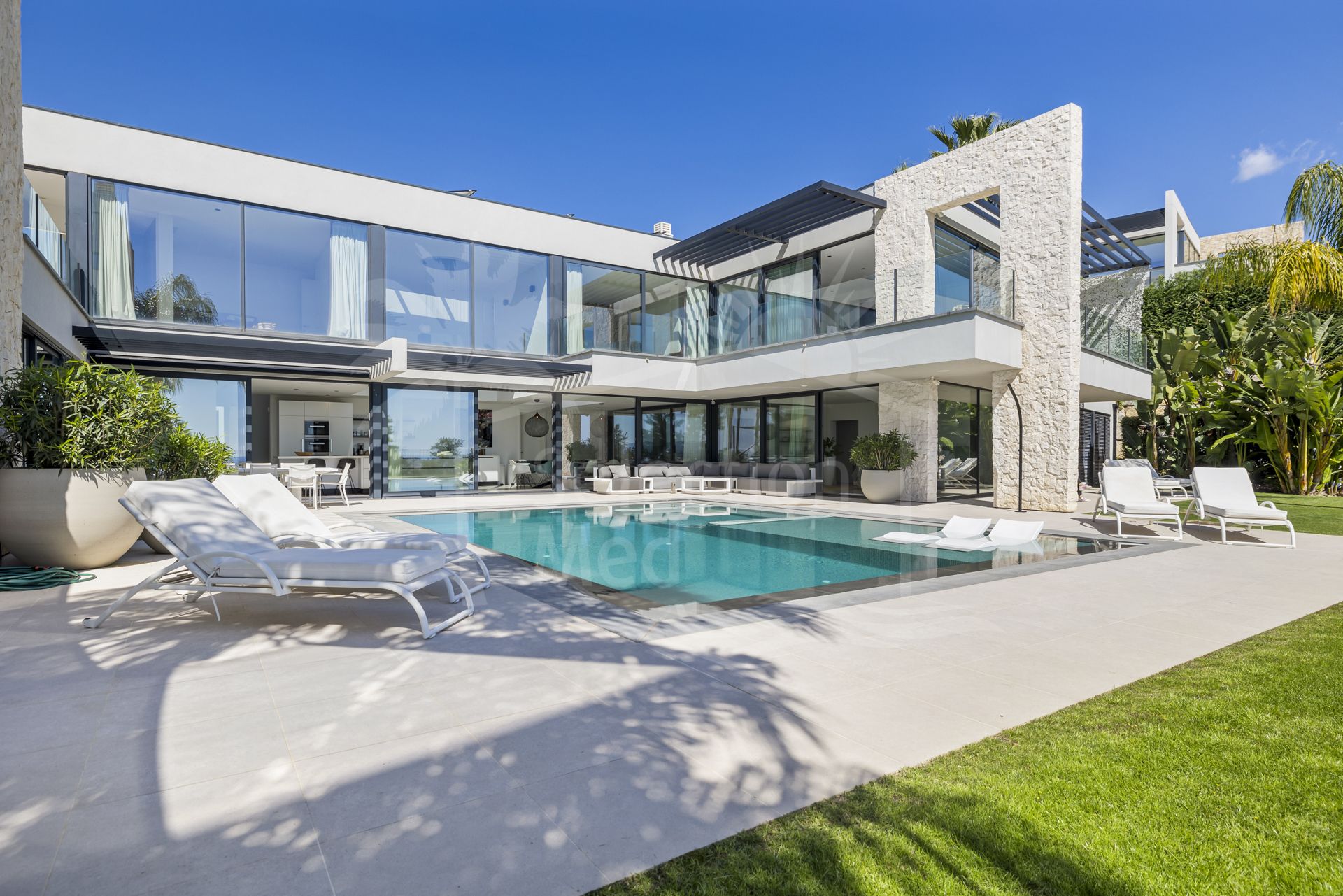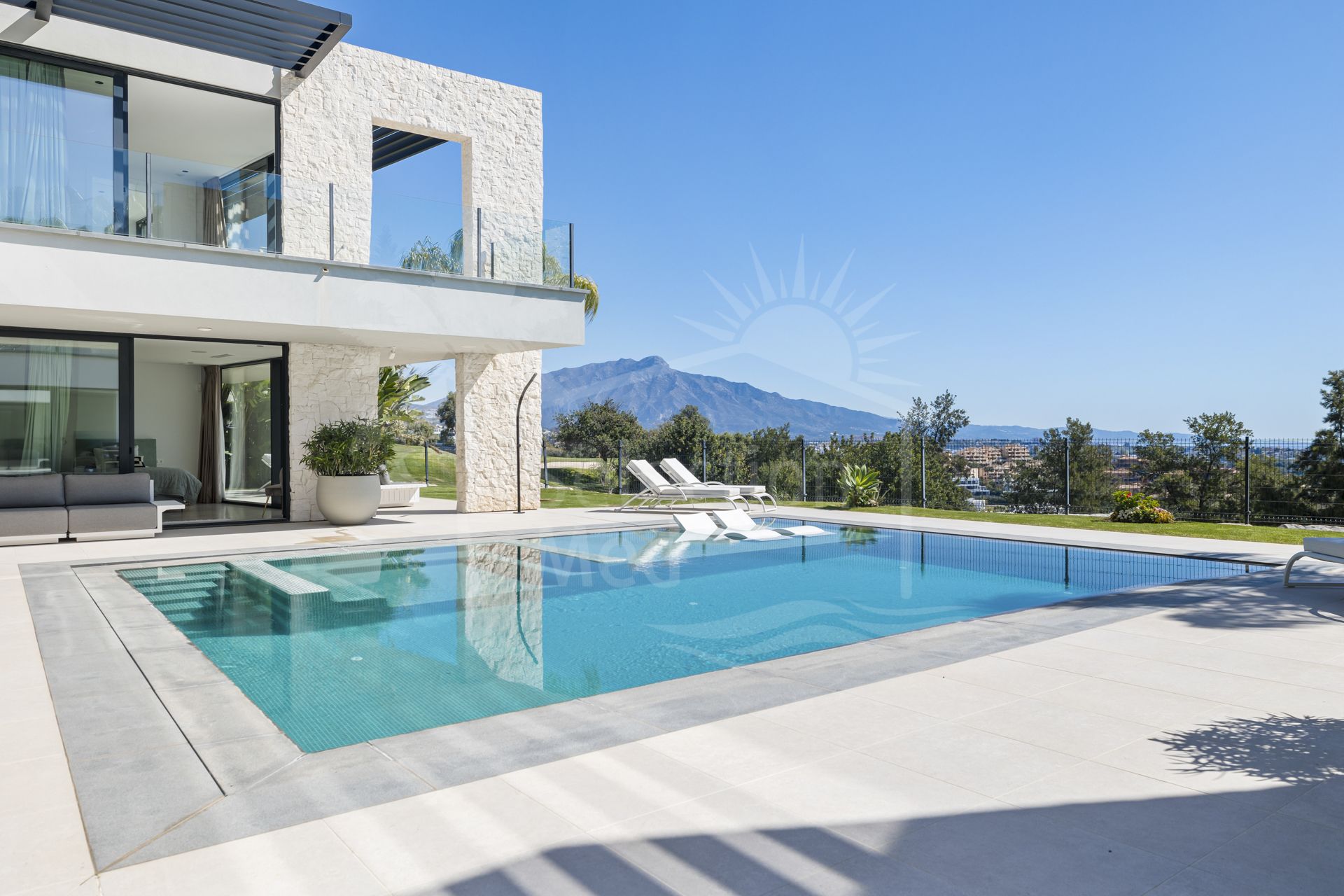 Perched in one of Benahavís’ most privileged locations, this exceptional villa combines panoramic sea, mountain, and golf views with refined contemporary living. Set on a generous 1,195 m² plot overlooking the front line of the golf course, the property offers privacy, space, and a timeless sense of tranquility, all just minutes from the coast, top schools, and the vibrant lifestyle of Marbella and Estepona.