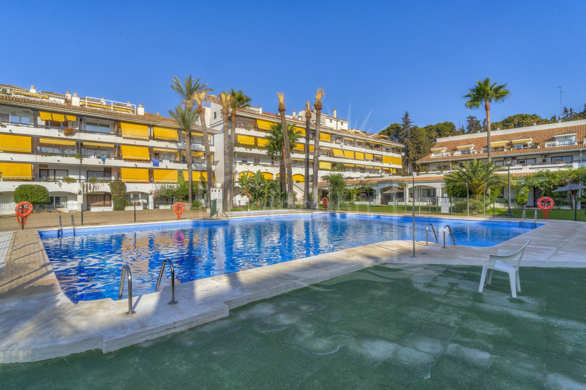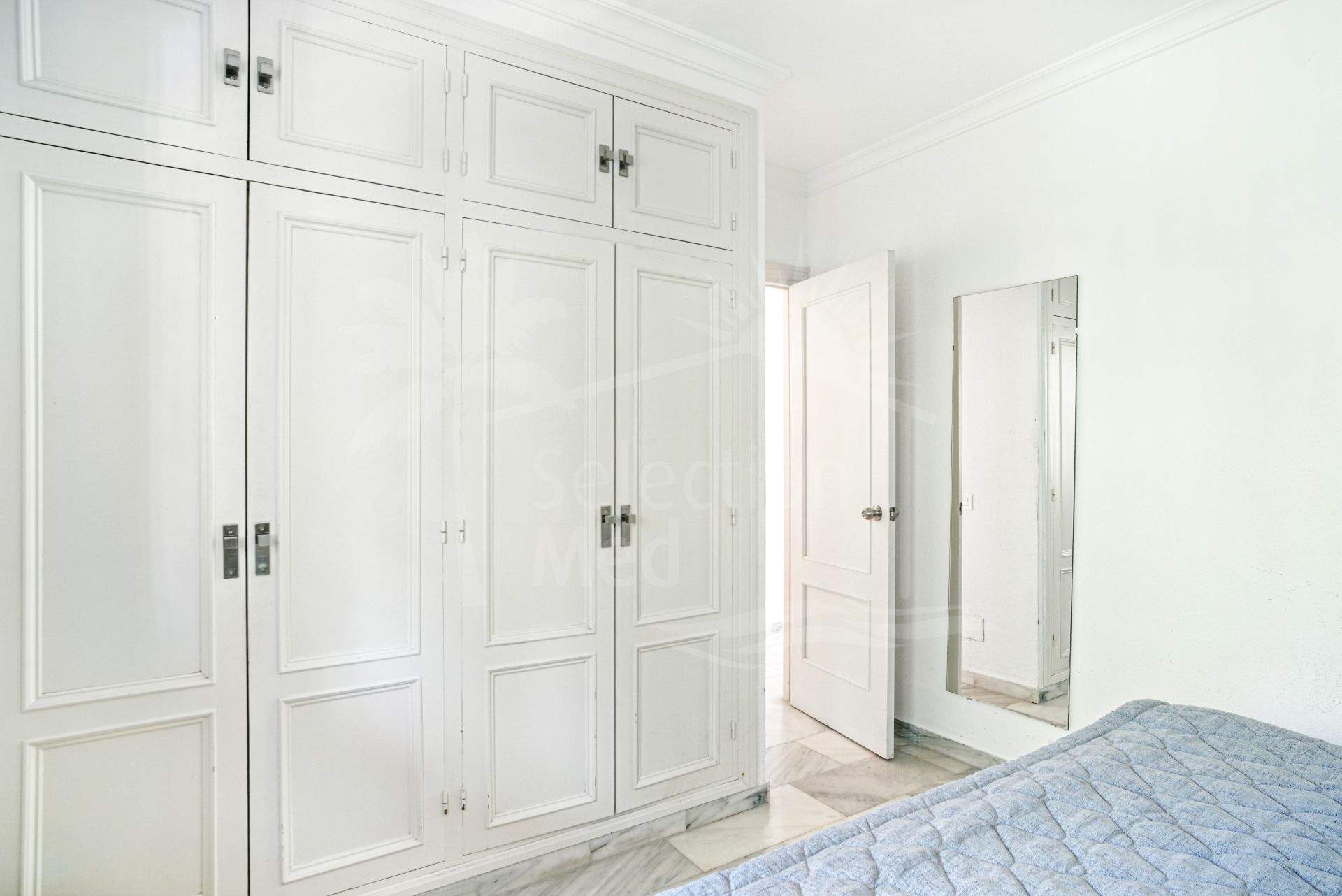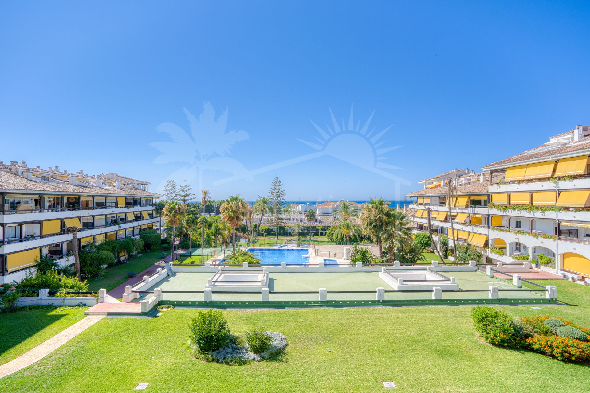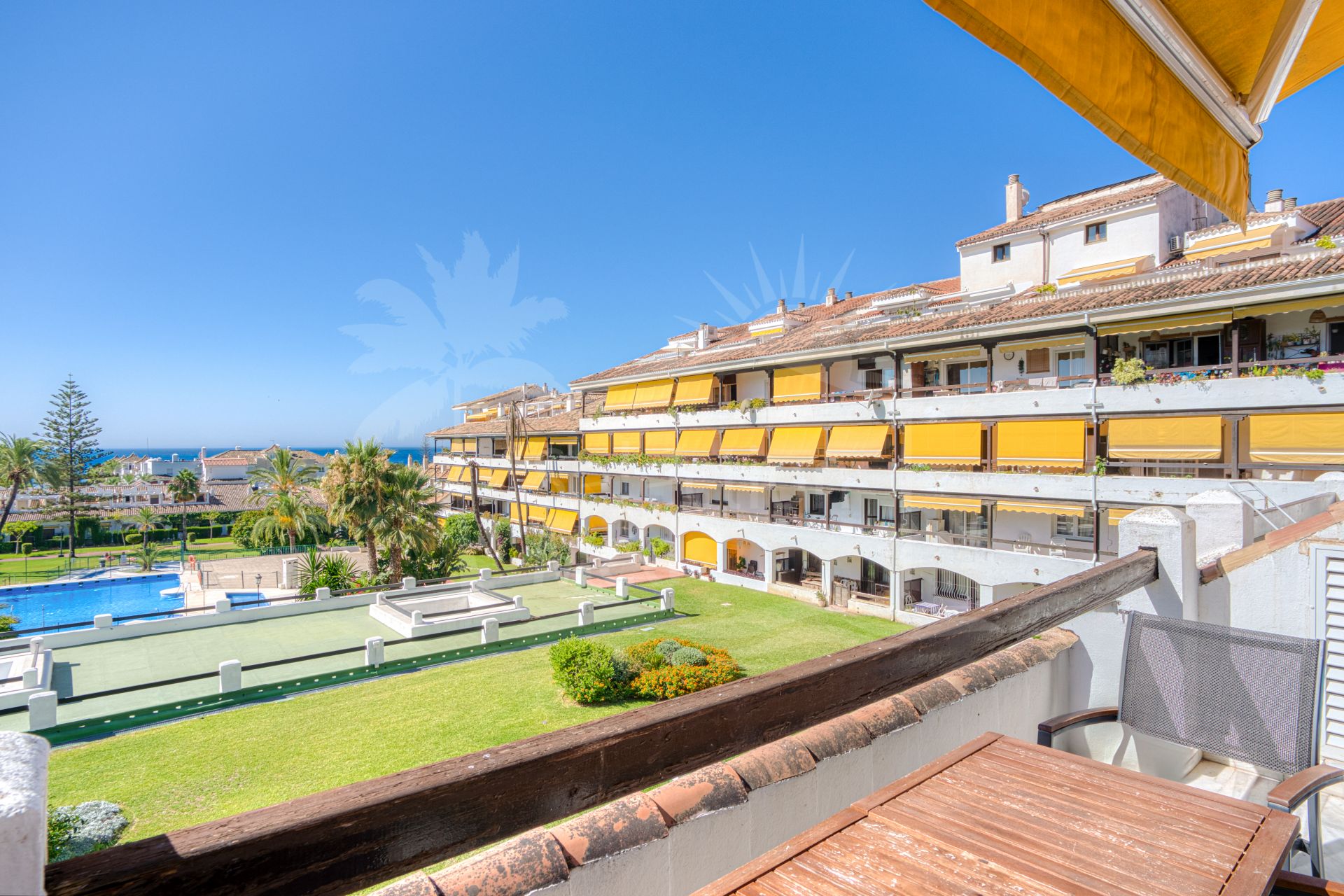 Wonderful south facing. two bedroom duplex penthouse located in the highly sought-after Carolina Park on Marbella’s prestigious Golden Mile, just a short walk from the beach, restaurants, and all amenities. This bright and spacious property features an open-plan living and dining area with a fully fitted kitchen, a guest bedroom with a guest bathroom, and a private terrace overlooking the communal pool, landscaped gardens, and offering fantastic sea views. Upstairs, the master bedroom enjoys an en-suite bathroom and ample natural light. Additional features include marble floors, fitted wardrobes, air conditioning in the living room, communal parking, and access to the complex’s swimming pools and tennis court. With its prime location and desirable layout, this penthouse offers excellent potential for both short- and long-term rentals.