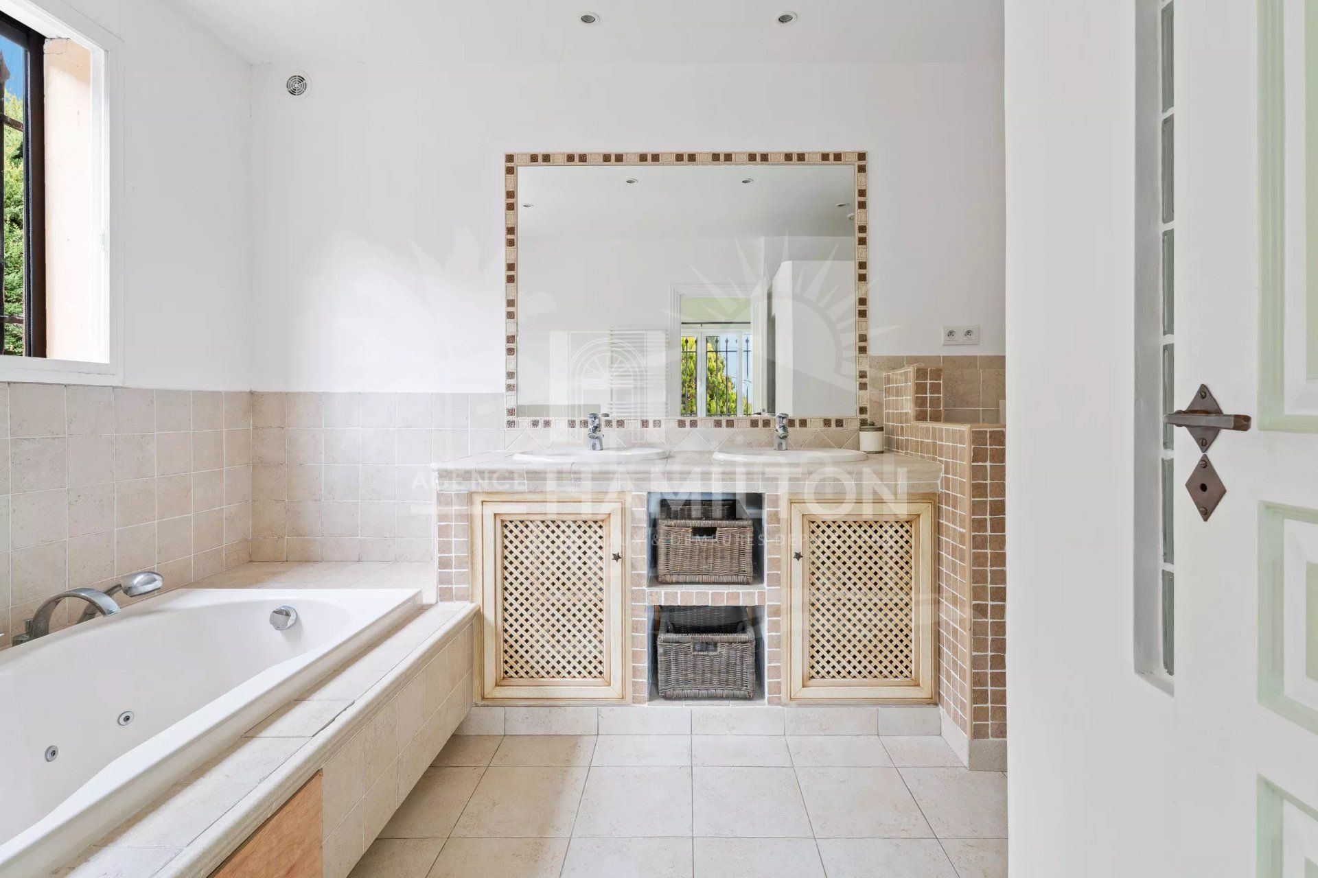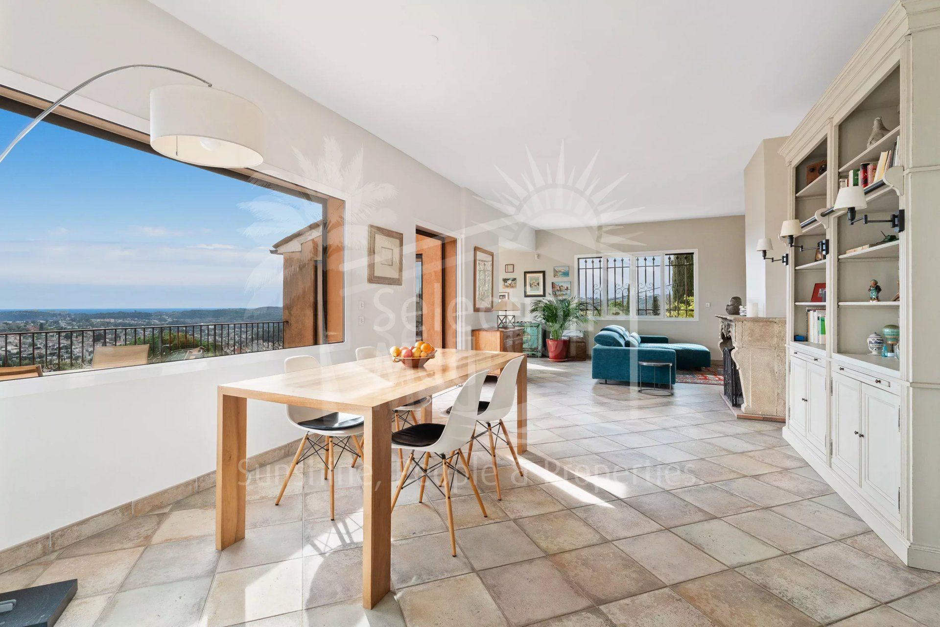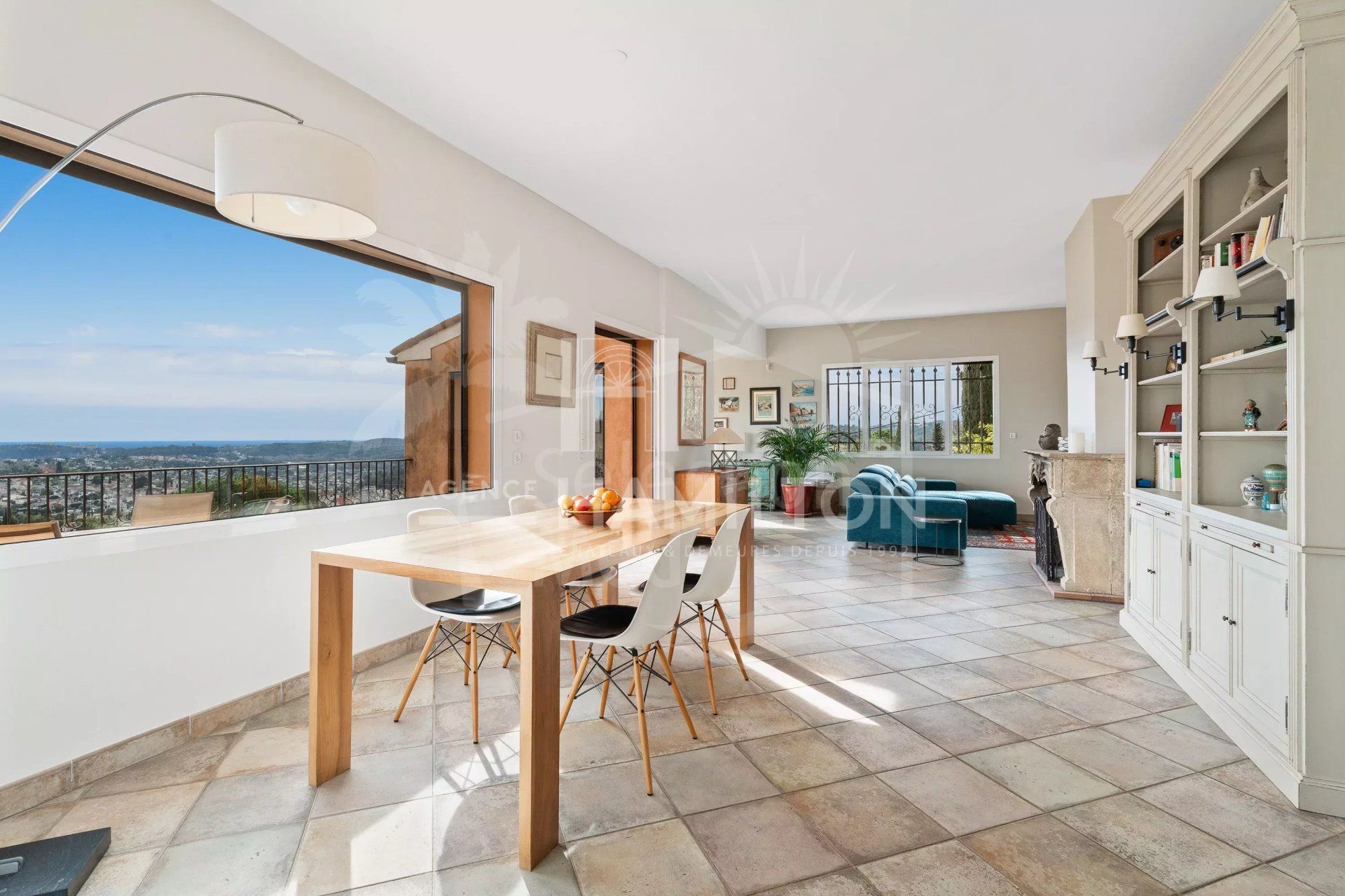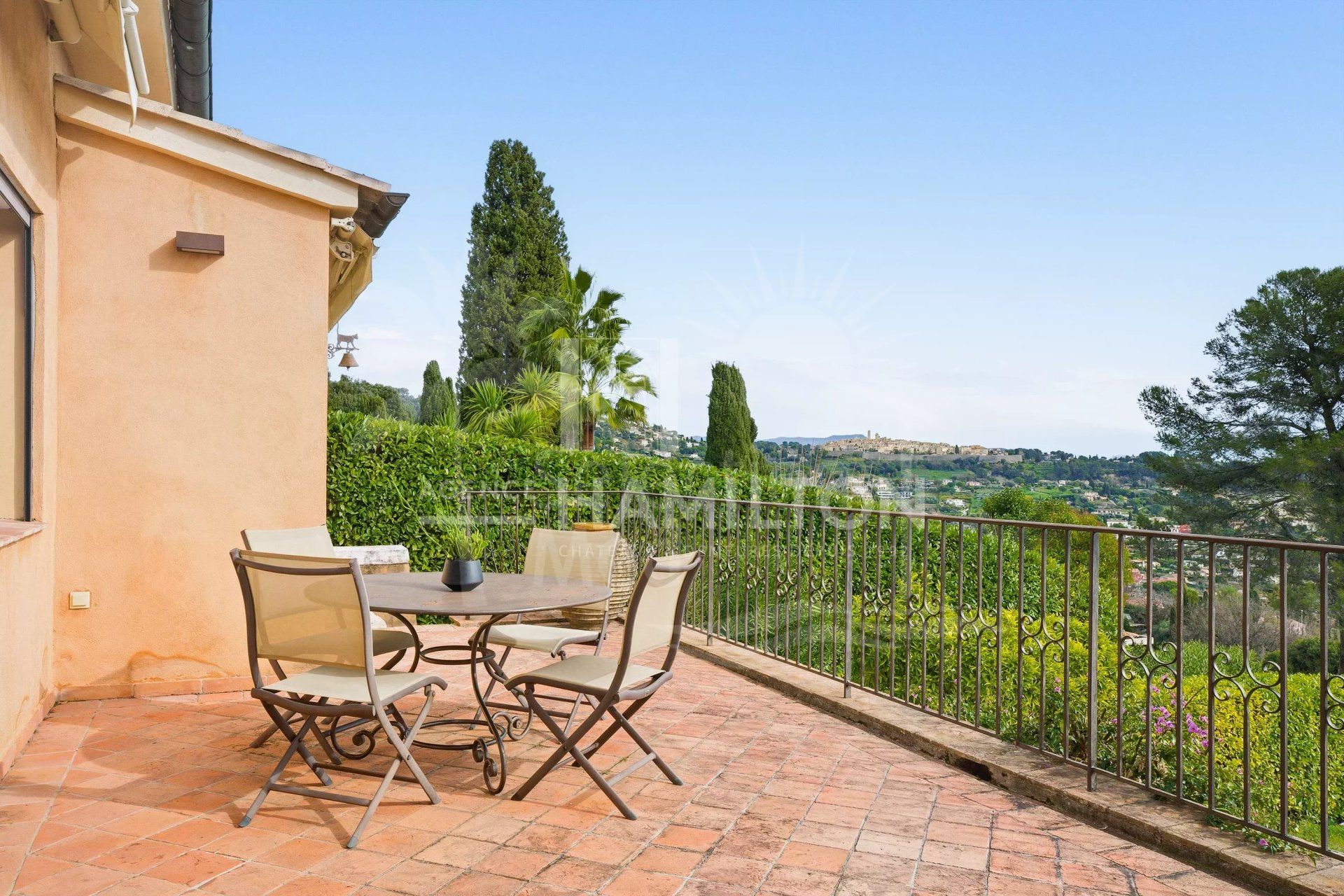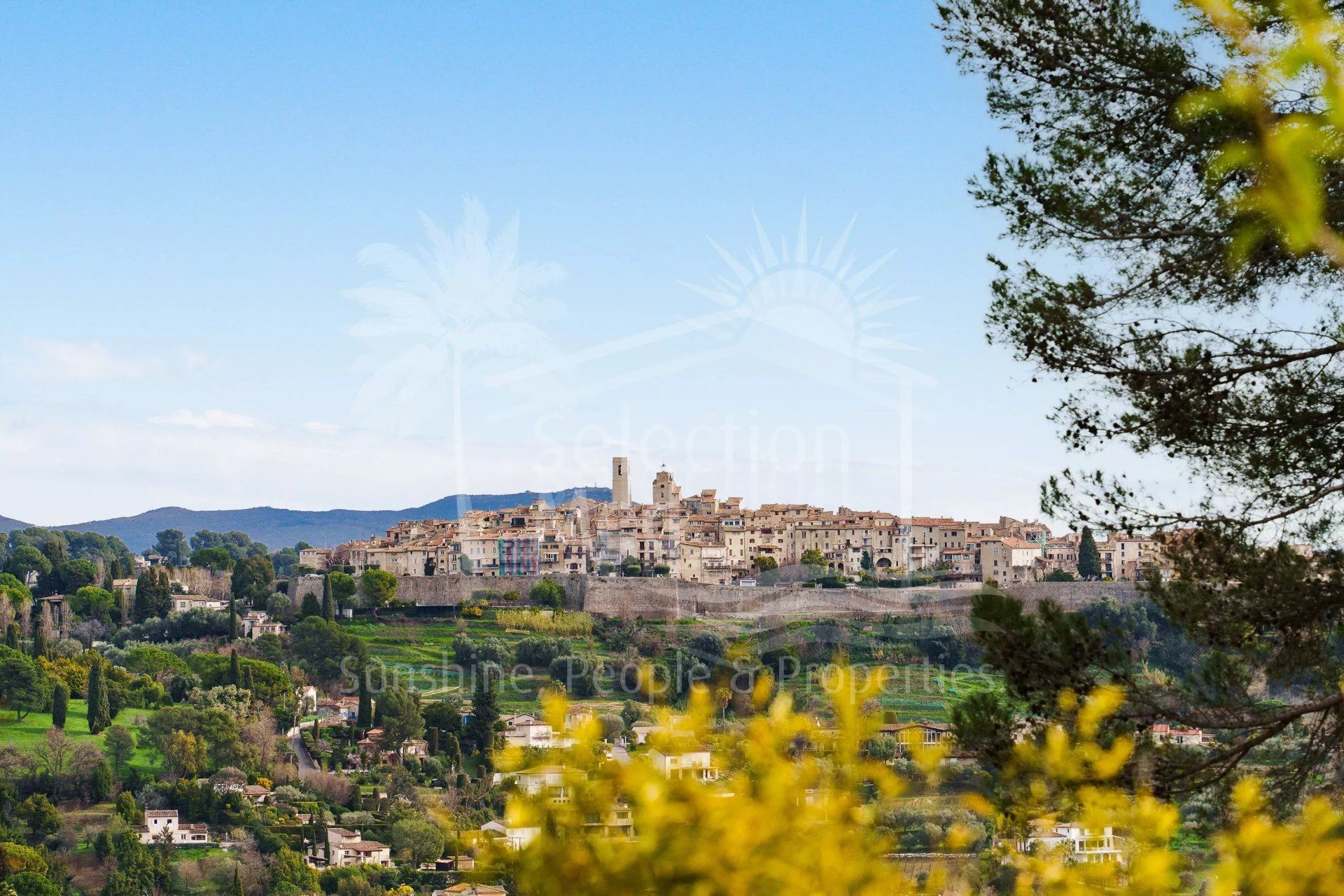 The property sits on 1,850 sqm of beautifully landscaped grounds, thoughtfully planted with fruit trees and intimate relaxation areas. The garden, with its swimming pool, pool house, and views over Saint-Paul-de-Vence, is ideal for enjoying long summer days on the French Riviera.