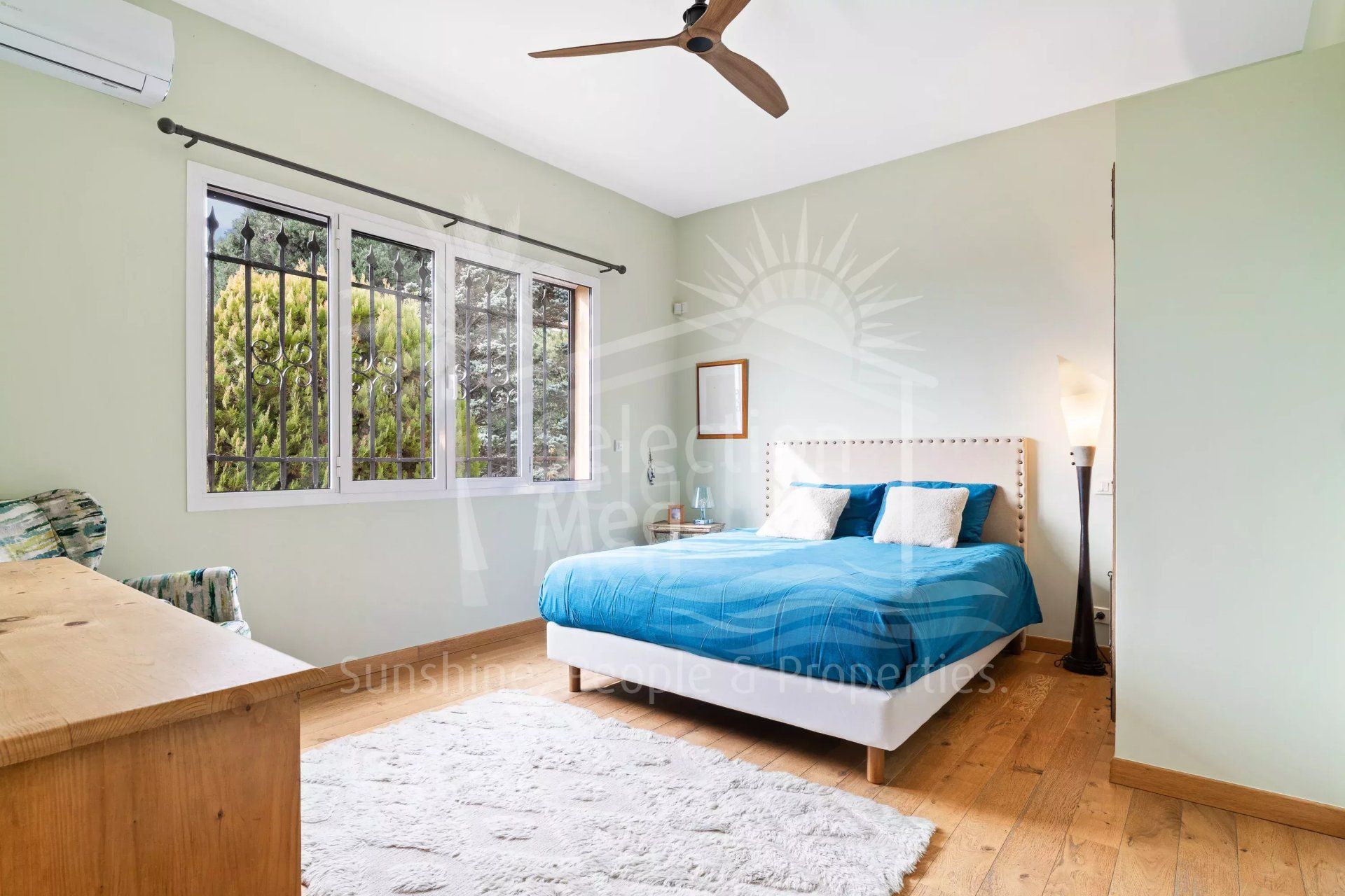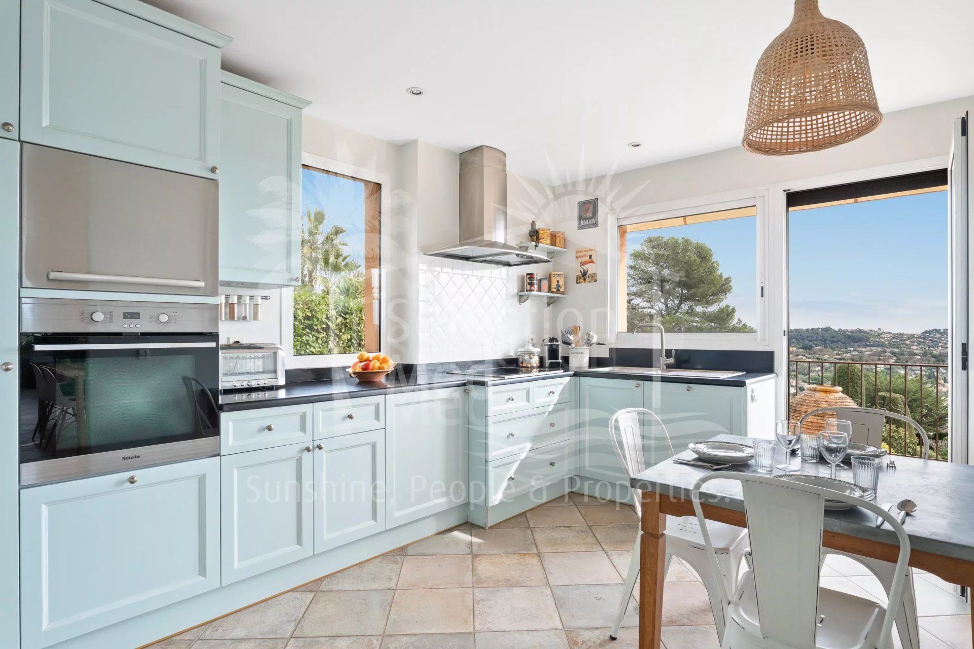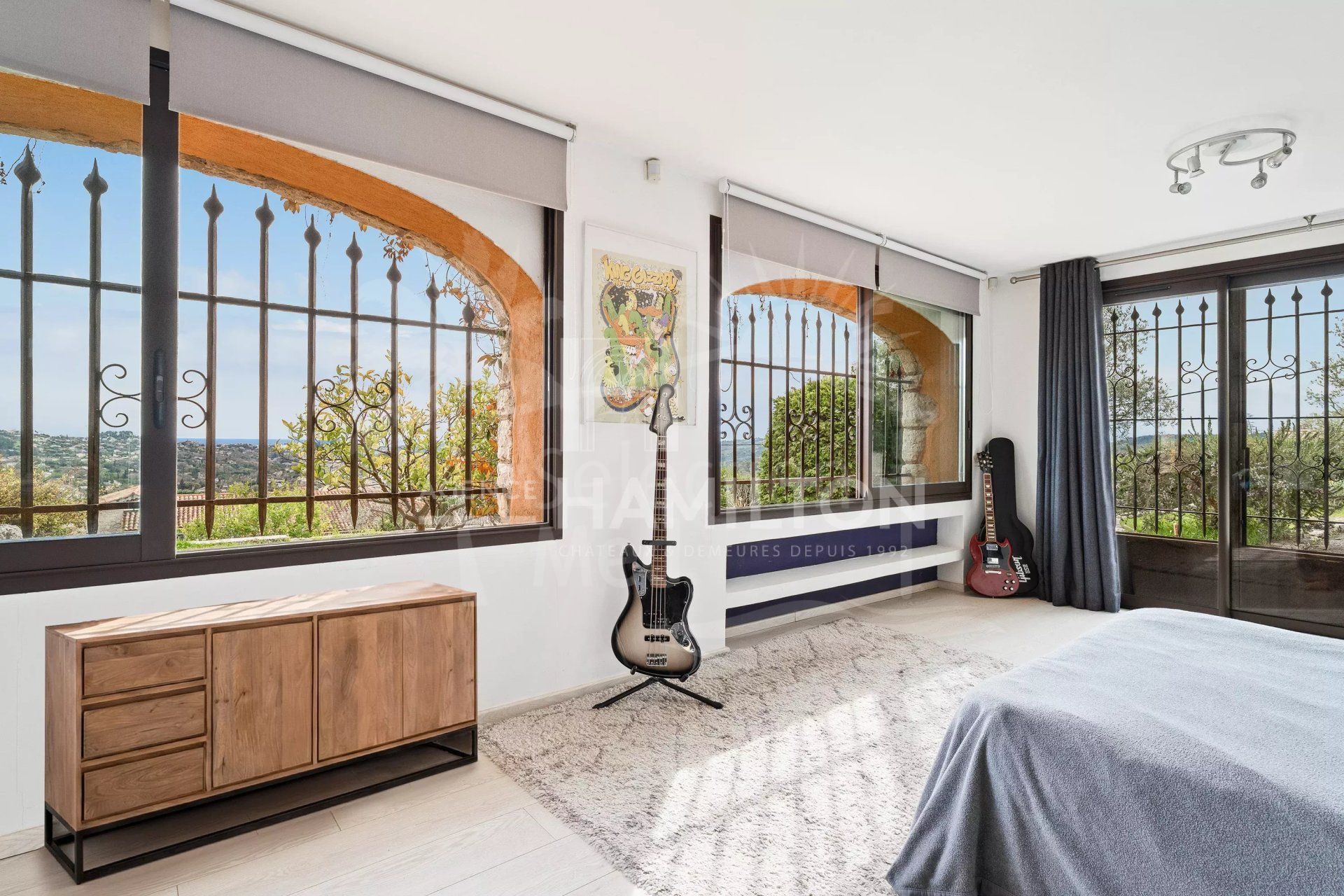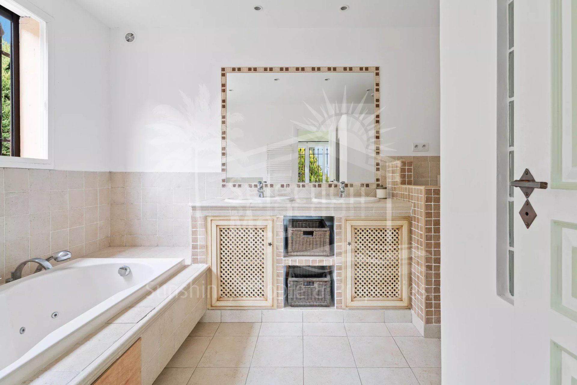 The property sits on 1,850 sqm of beautifully landscaped grounds, thoughtfully planted with fruit trees and intimate relaxation areas. The garden, with its swimming pool, pool house, and views over Saint-Paul-de-Vence, is ideal for enjoying long summer days on the French Riviera.