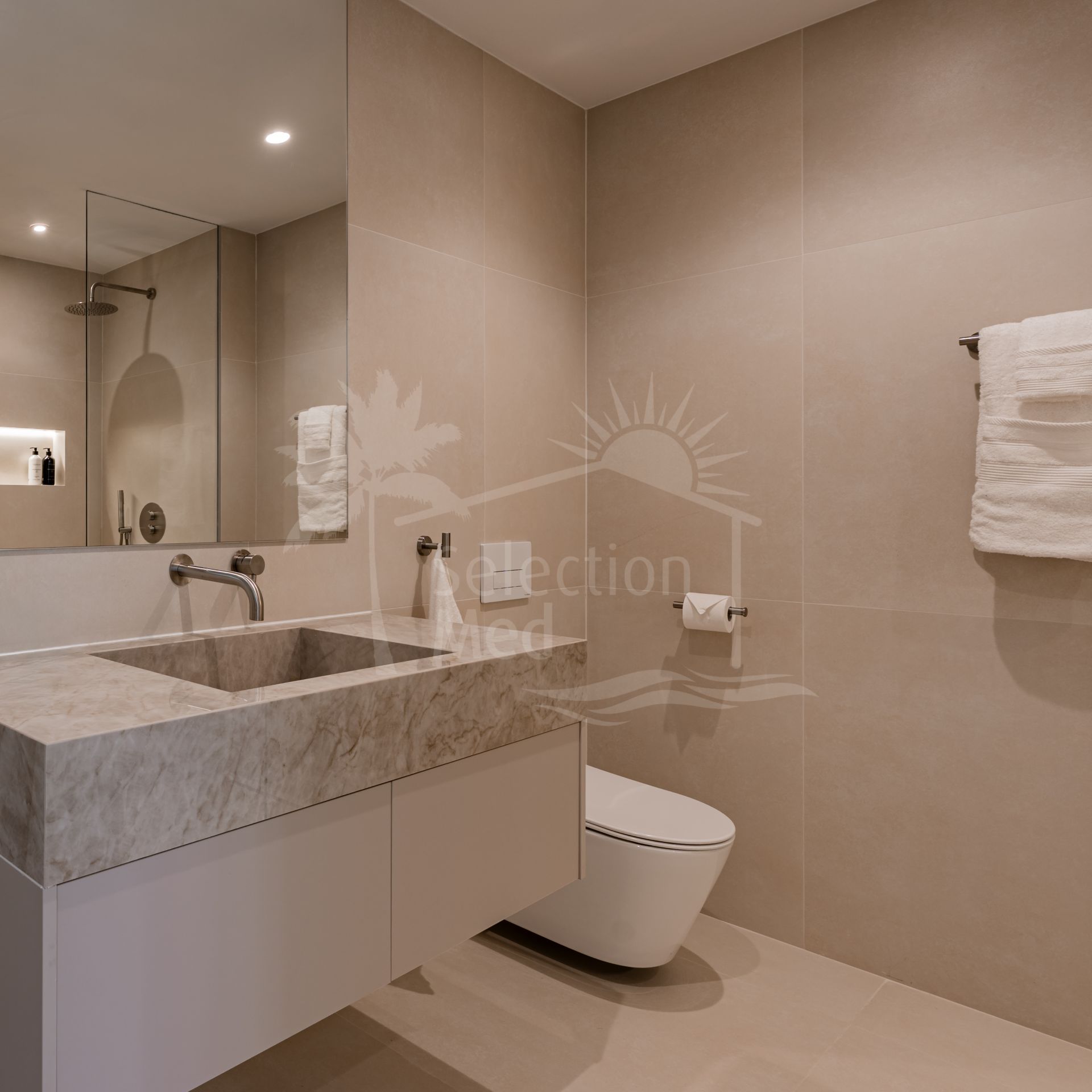 Inside, you’ll find 3 generously sized bedrooms and 3 contemporary bathrooms, two of which are en-suite. The open-plan kitchen and living area are designed for modern living and effortless entertaining, flowing directly onto the outdoor terrace.