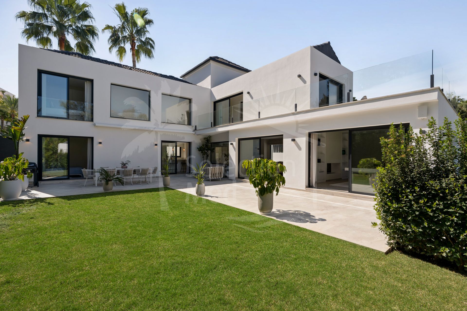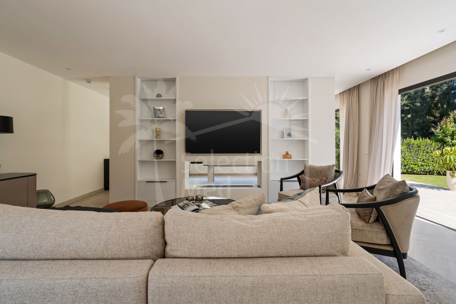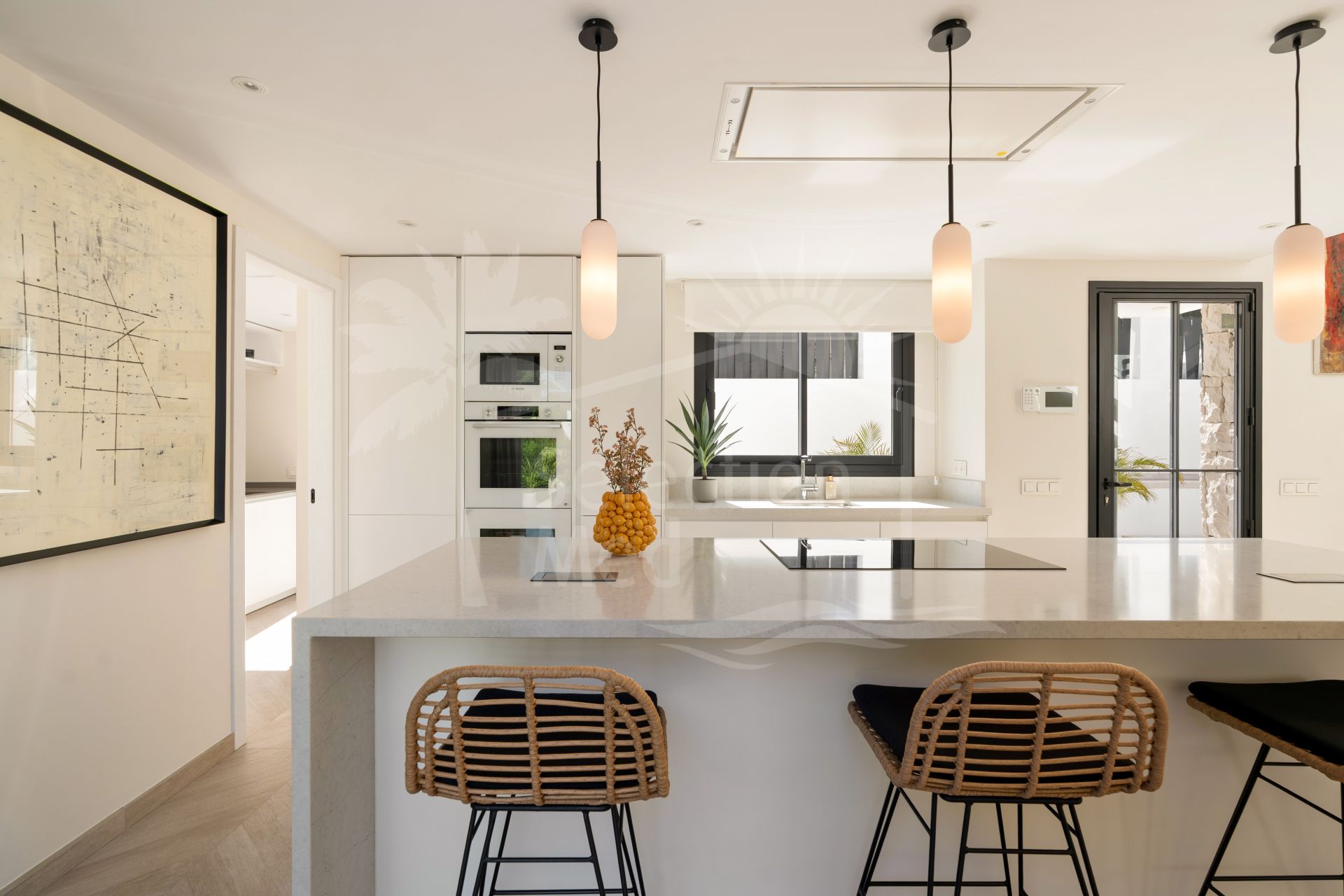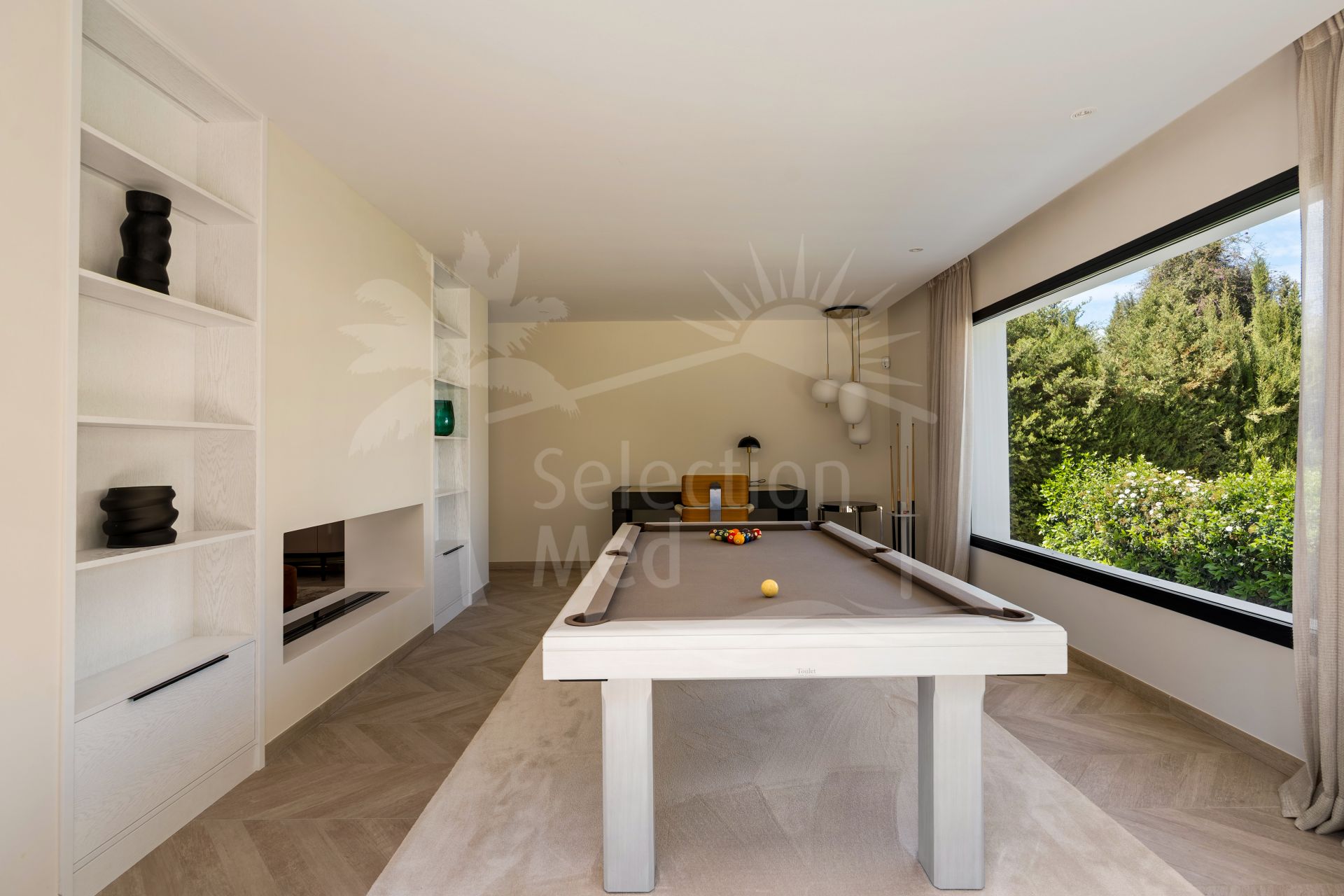 Upon arrival, the property immediately impresses with its clean architectural lines and sense of scale, framed by the iconic La Concha Mountain as a breath taking backdrop. Inside, the villa welcomes you with beautifully curated light-filled interiors, neutral spaces where expansive windows flood the home with natural light from every angle.