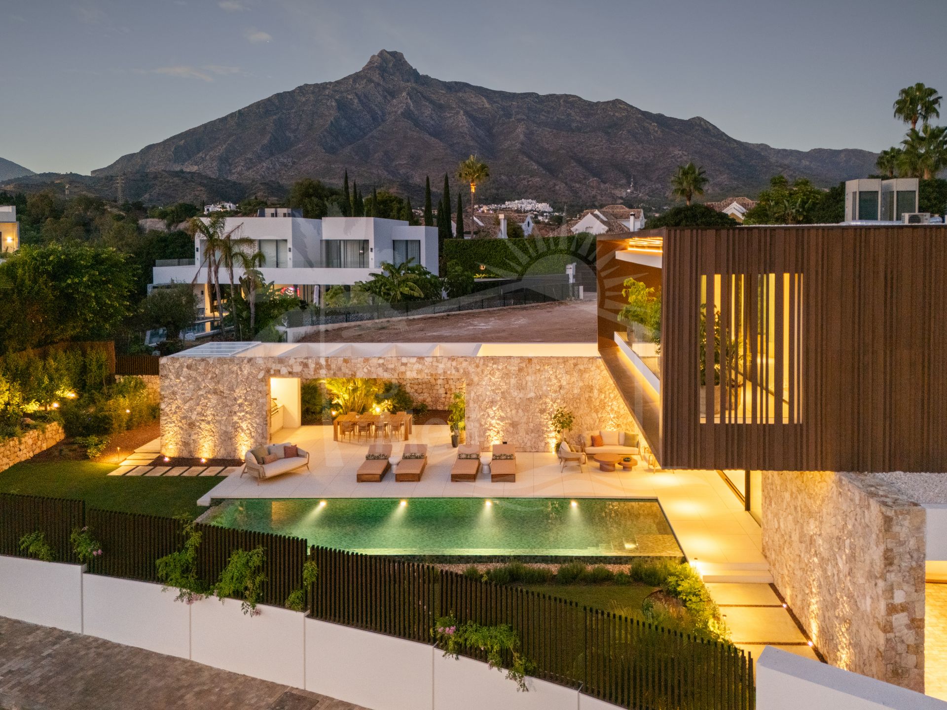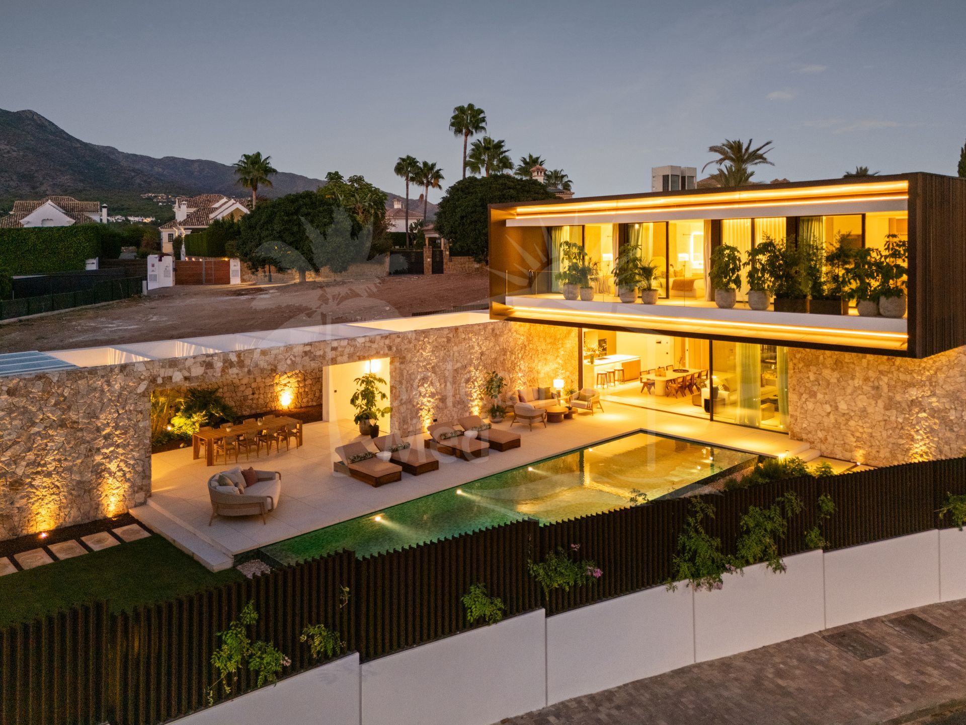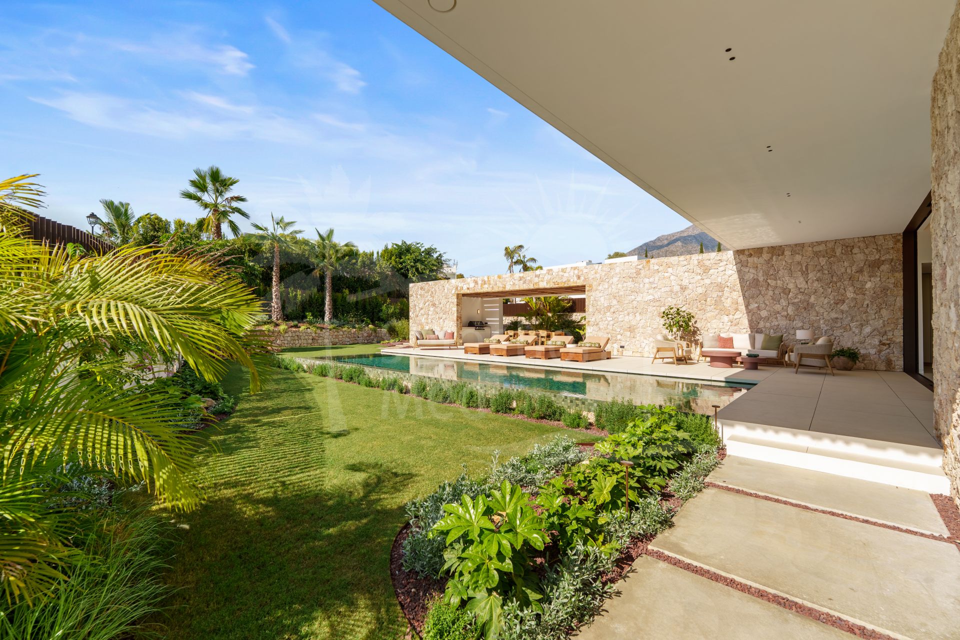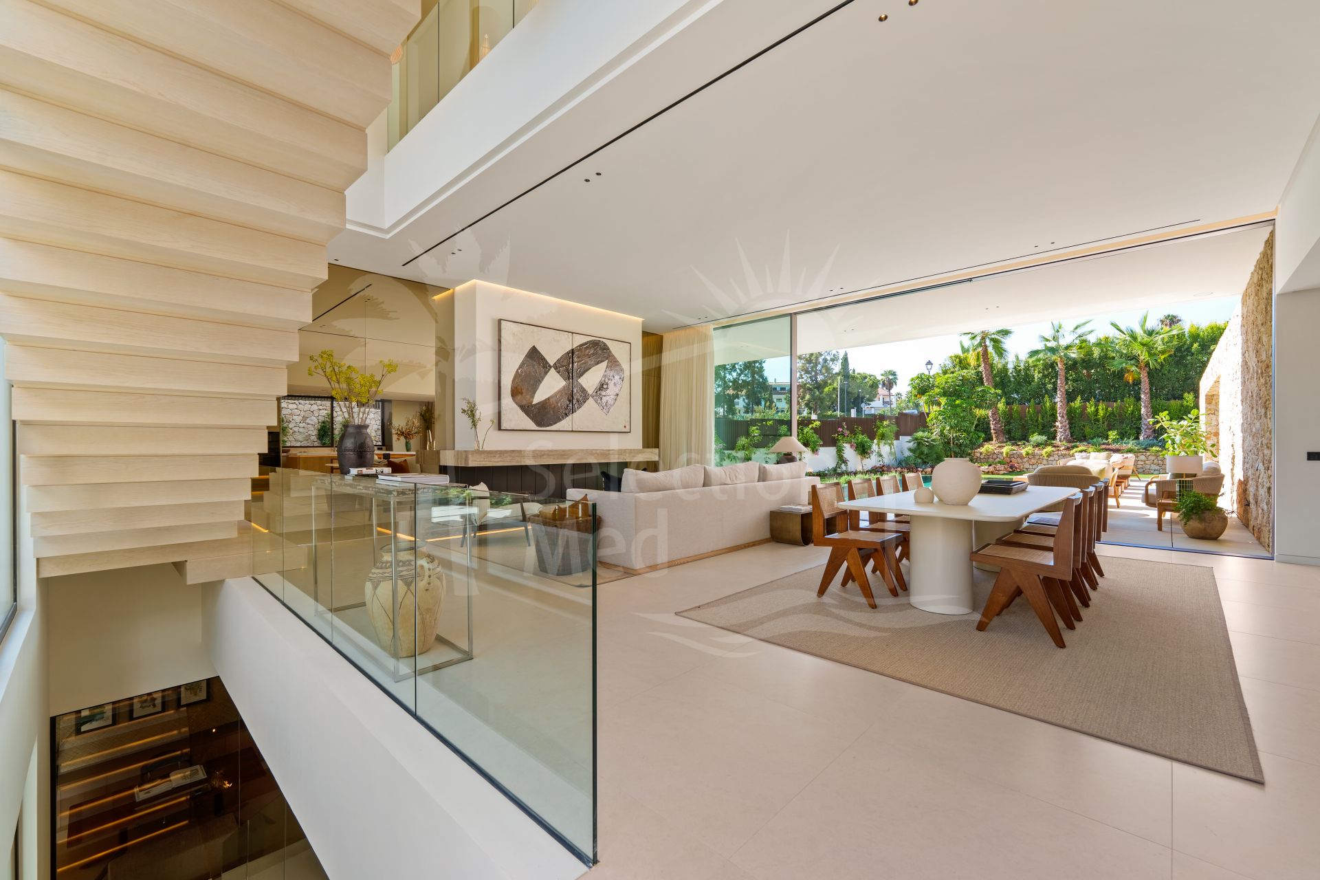 Set within the lush green hills of Marbella, this villa seamlessly integrates into its natural surroundings while showcasing exceptional design.