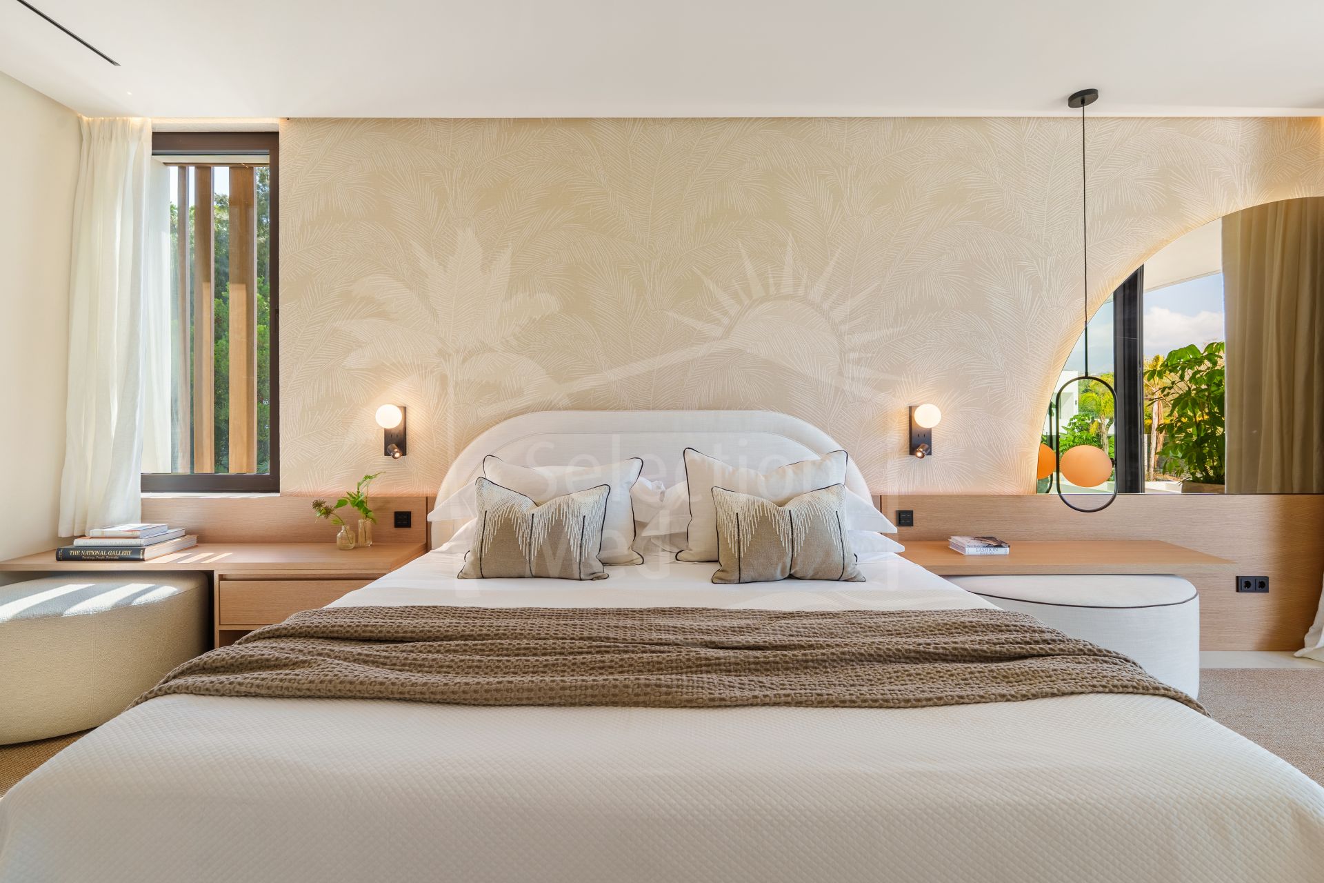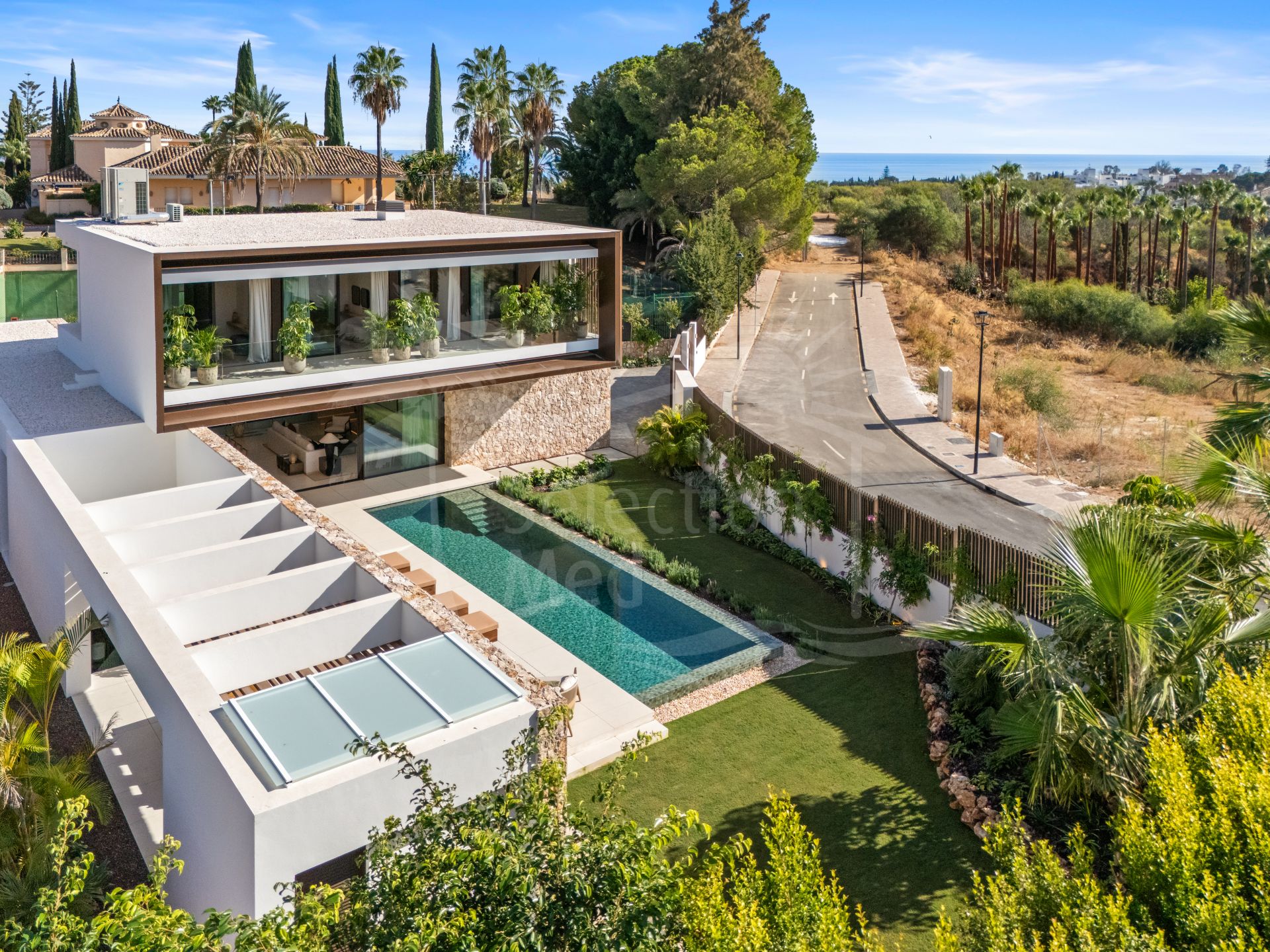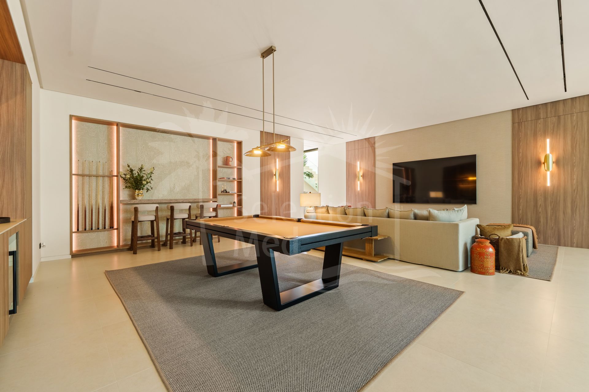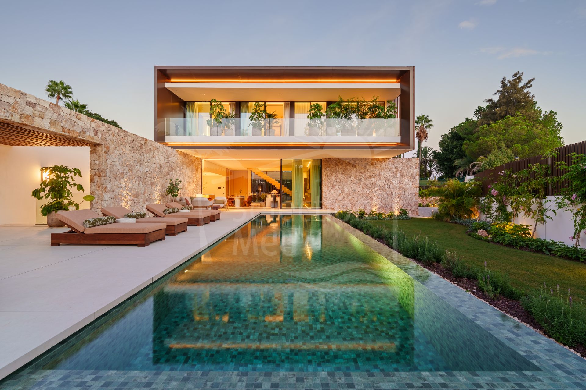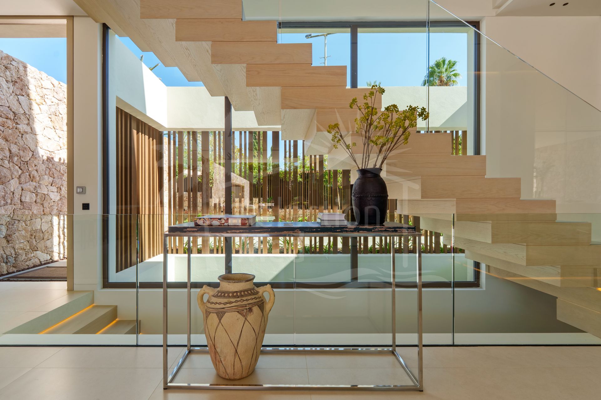 Set within the lush green hills of Marbella, this villa seamlessly integrates into its natural surroundings while showcasing exceptional design.