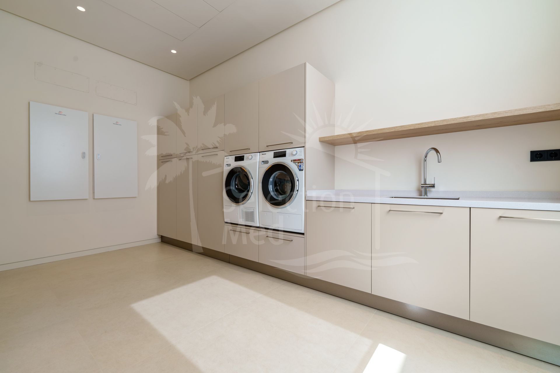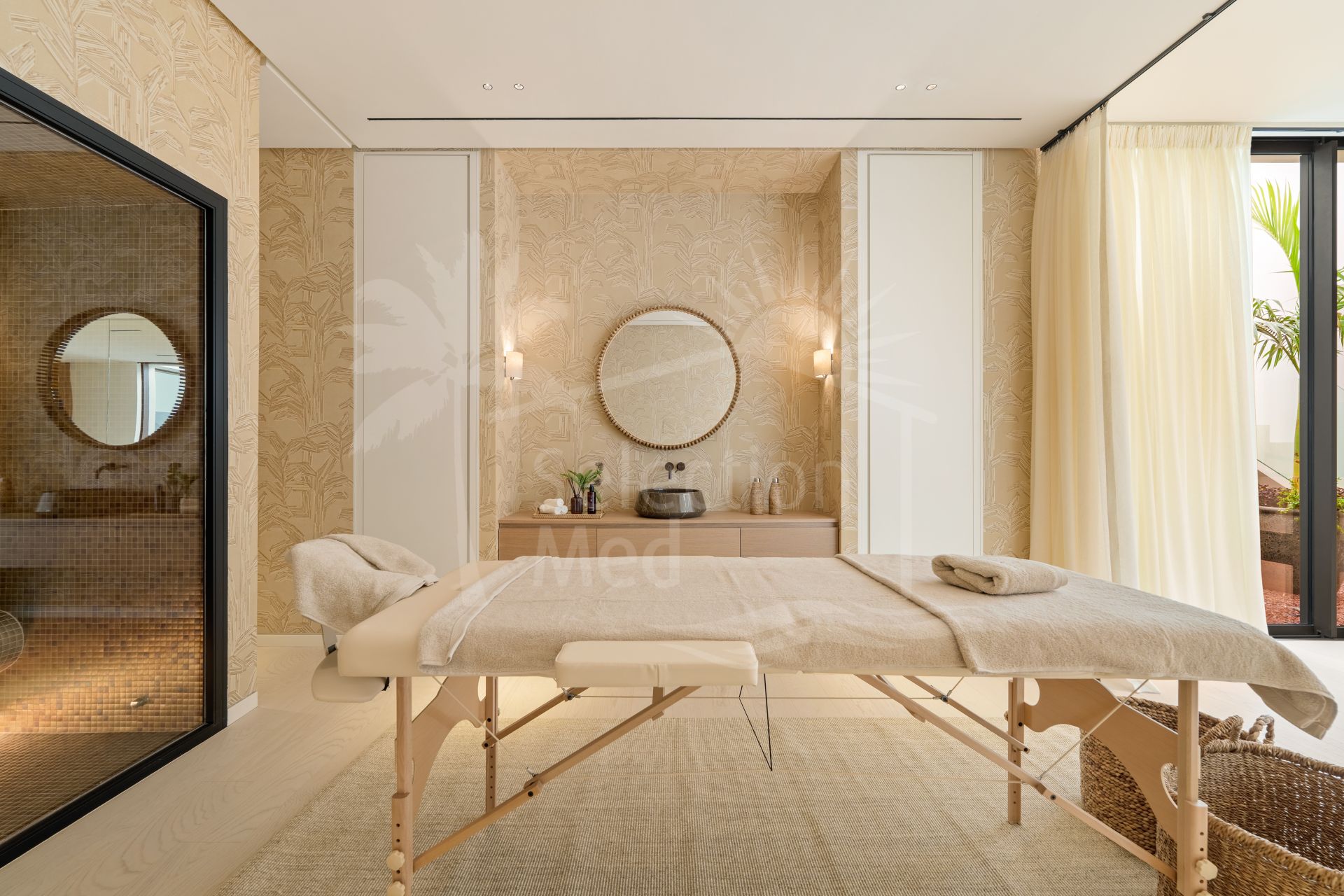 The basement has been generously designed to promote self-care and tranquility. Should you wish to indulge, the spa area is at your disposal, and there is a gym for those who prefer to exercise. For those who prefer a glass of wine, there is a wine room.