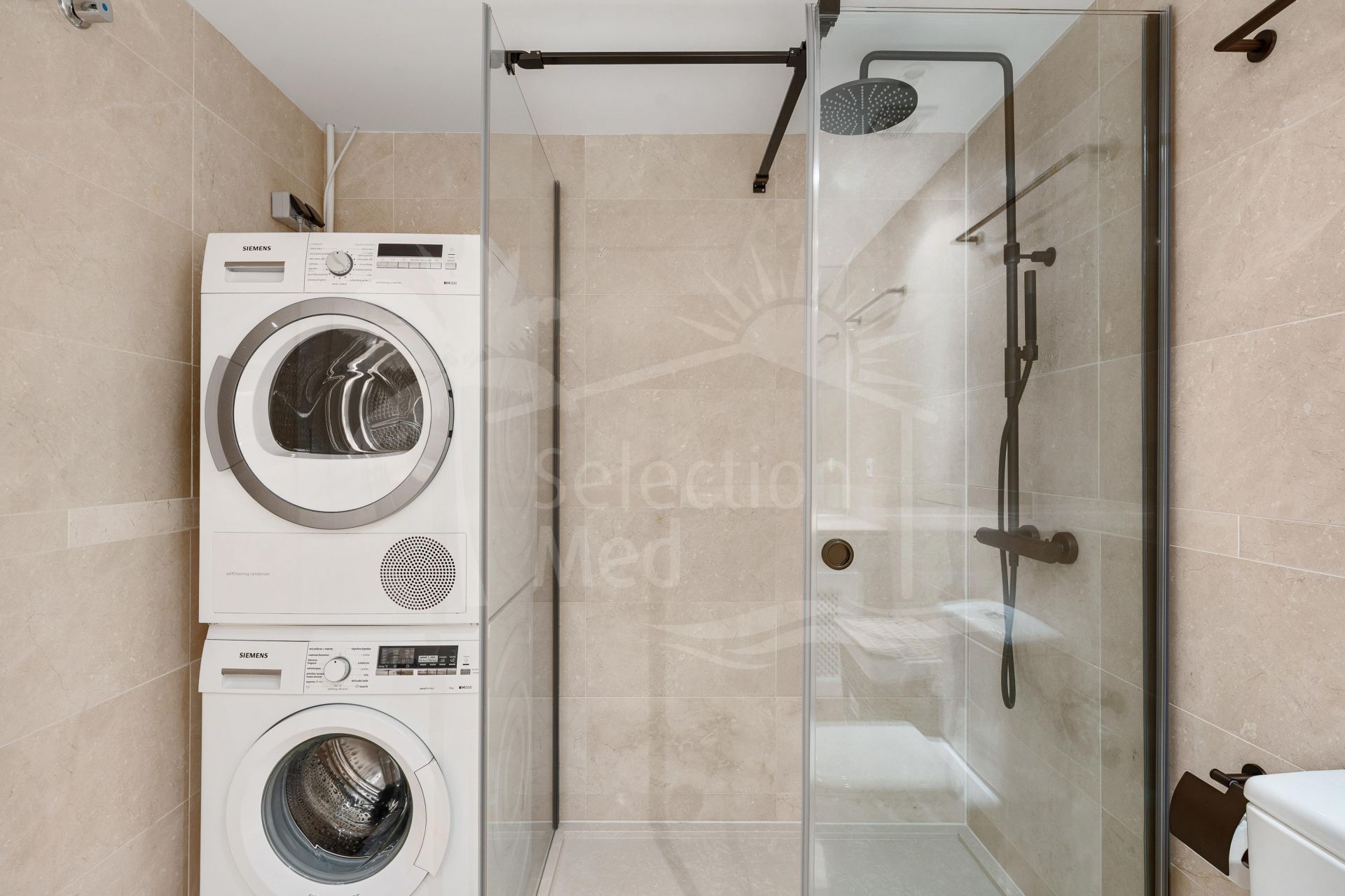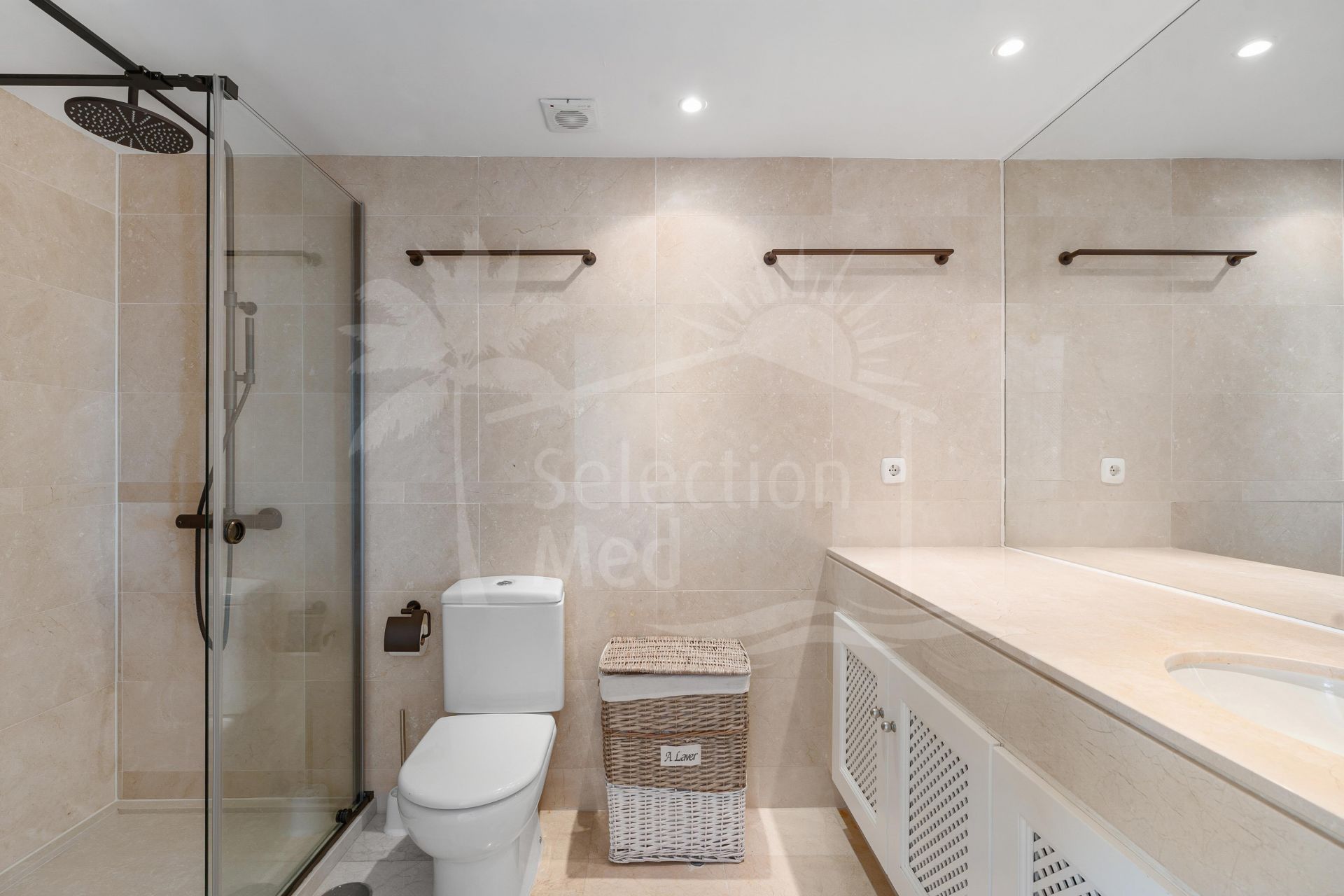 The highlight of this property is its expansive terrace areas, including a spectacular rooftop terrace with the option to install a plunge pool or create your own outdoor gym. From here, enjoy breathtaking panoramic views over Nueva Andalucía, the iconic La Concha Mountain, and the glittering Mediterranean Sea. With its southwest orientation, the penthouse is bathed in natural light throughout the day, capturing the best of Marbella’s golden sunsets.