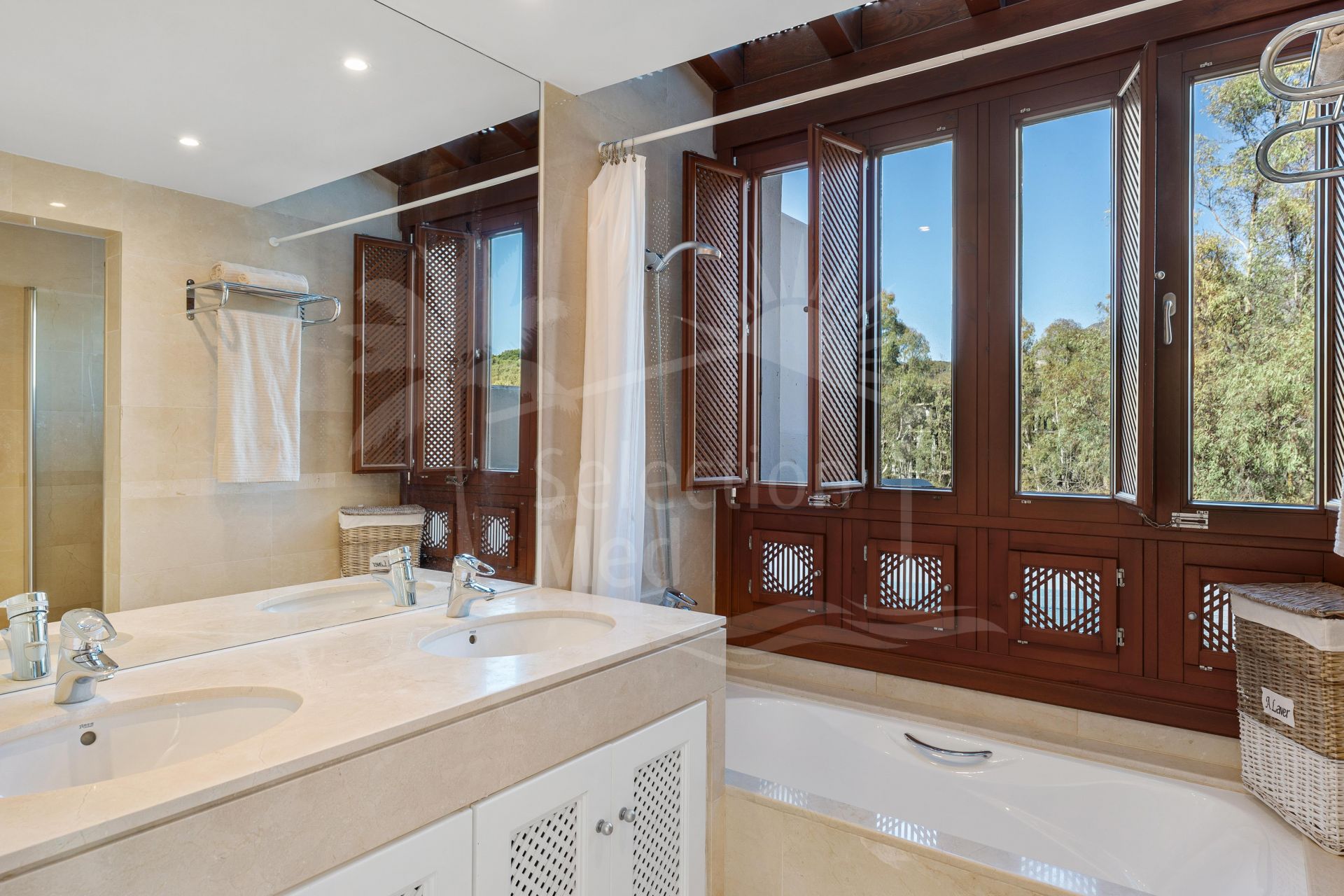 Additional features include a private elevator with direct access from the garage, two underground parking spaces, and a large storage room. The location is truly unbeatable — within walking distance to Aloha’s renowned restaurants, golf courses, shops, and just minutes from Puerto Banús. This property perfectly combines luxury, convenience, and spectacular views — an ideal choice for those seeking the ultimate Marbella lifestyle.