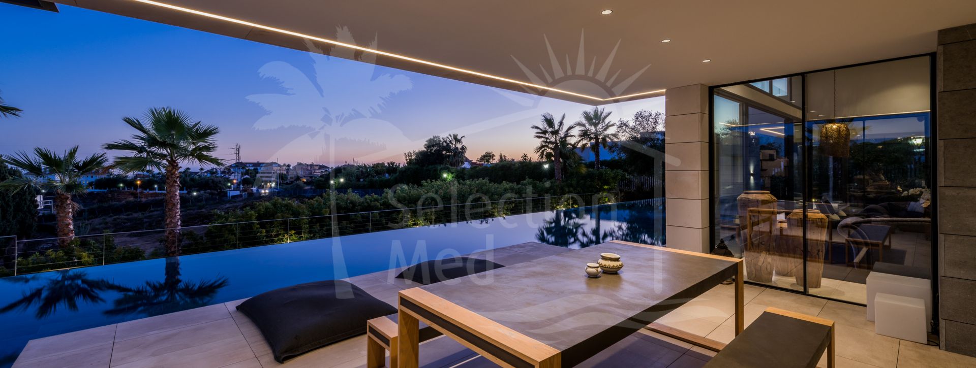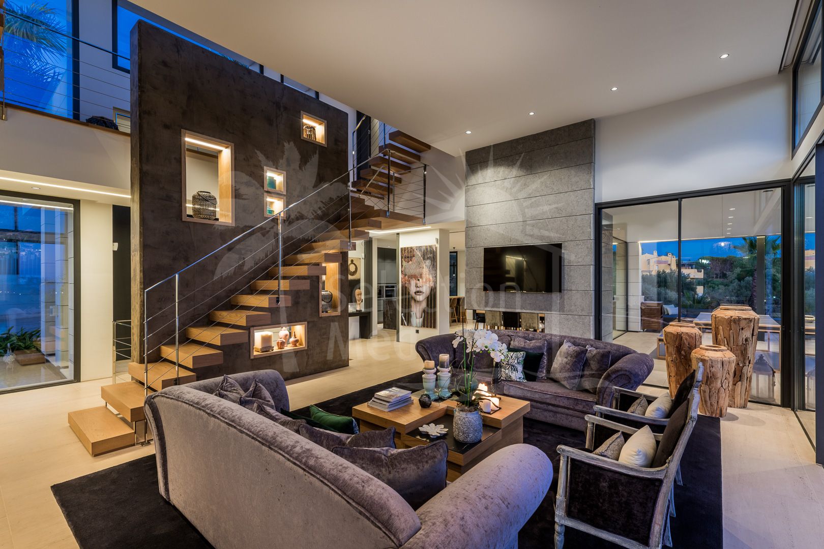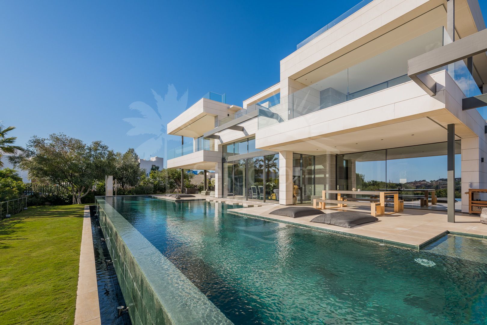 Situated on a sun-filled, south-facing plot of 1,625 m², this spectacular residence spans 943 m² across three meticulously designed levels. The villa exudes style and refinement, with expansive open-plan interiors bathed in natural Mediterranean light through floor-to-ceiling windows.