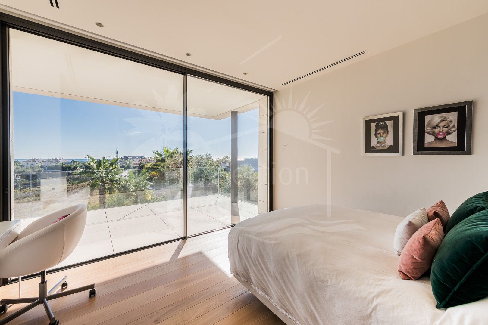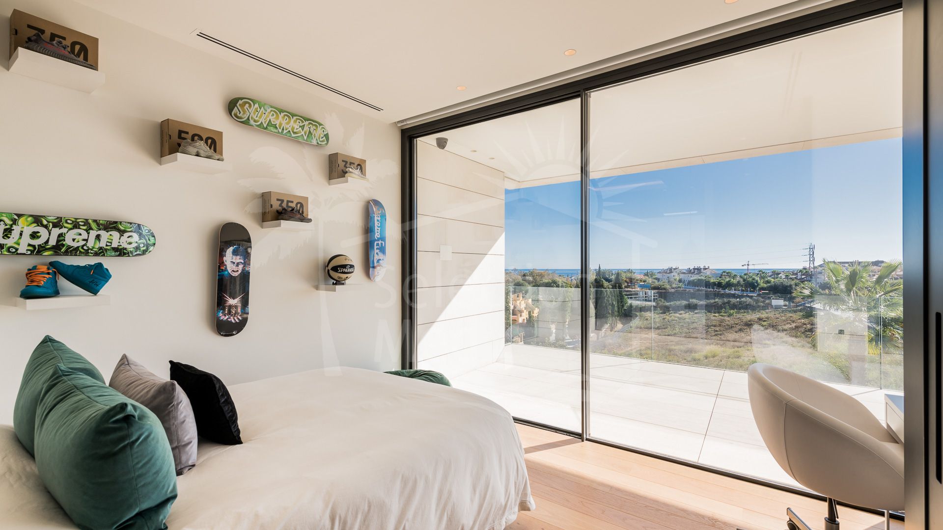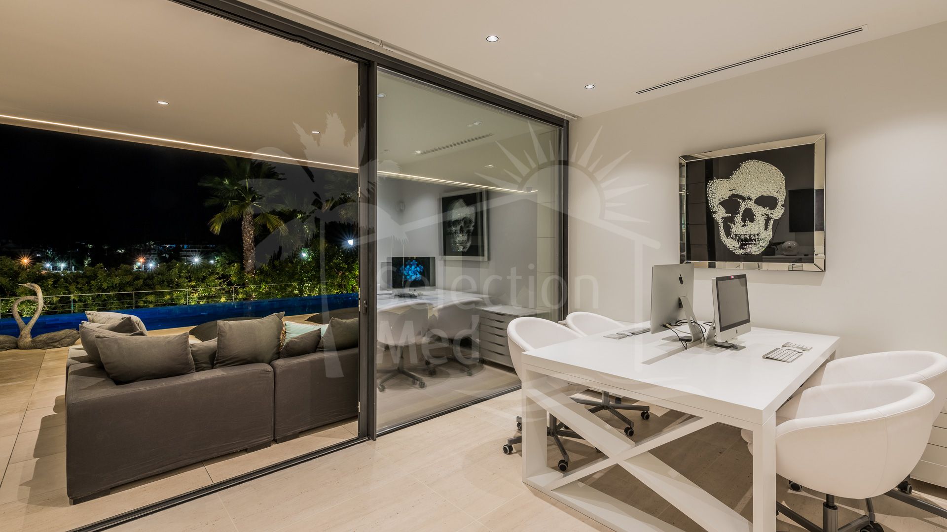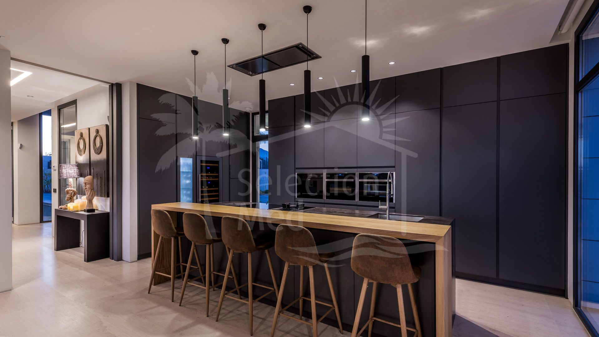 Situated on a sun-filled, south-facing plot of 1,625 m², this spectacular residence spans 943 m² across three meticulously designed levels. The villa exudes style and refinement, with expansive open-plan interiors bathed in natural Mediterranean light through floor-to-ceiling windows.