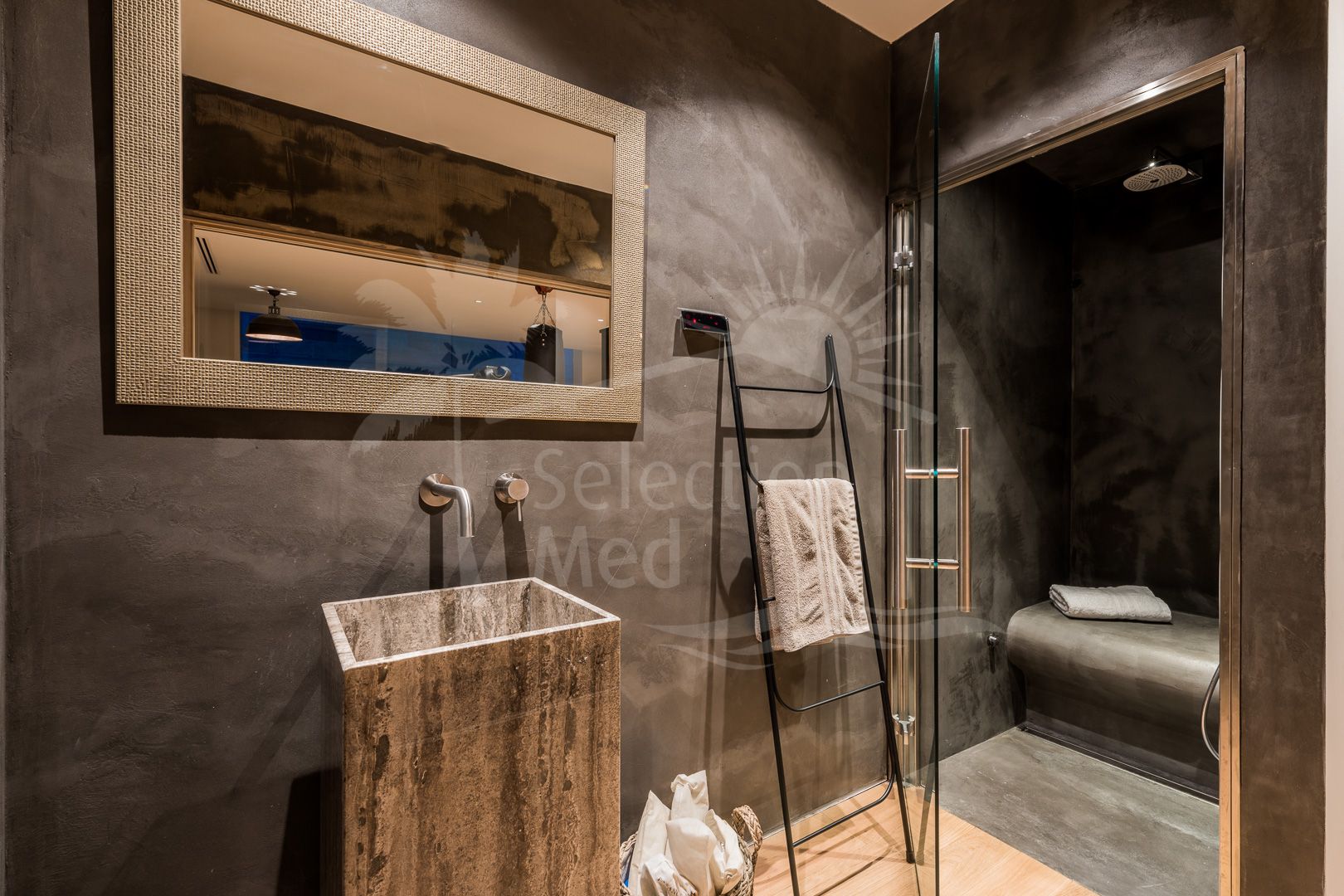 The villa’s lower level is a haven for leisure and wellness, featuring a private cinema, bespoke wine cellar, games room, sauna, expansive fitness center, and a dedicated boxing ring — a unique feature for those who demand more from their training space.