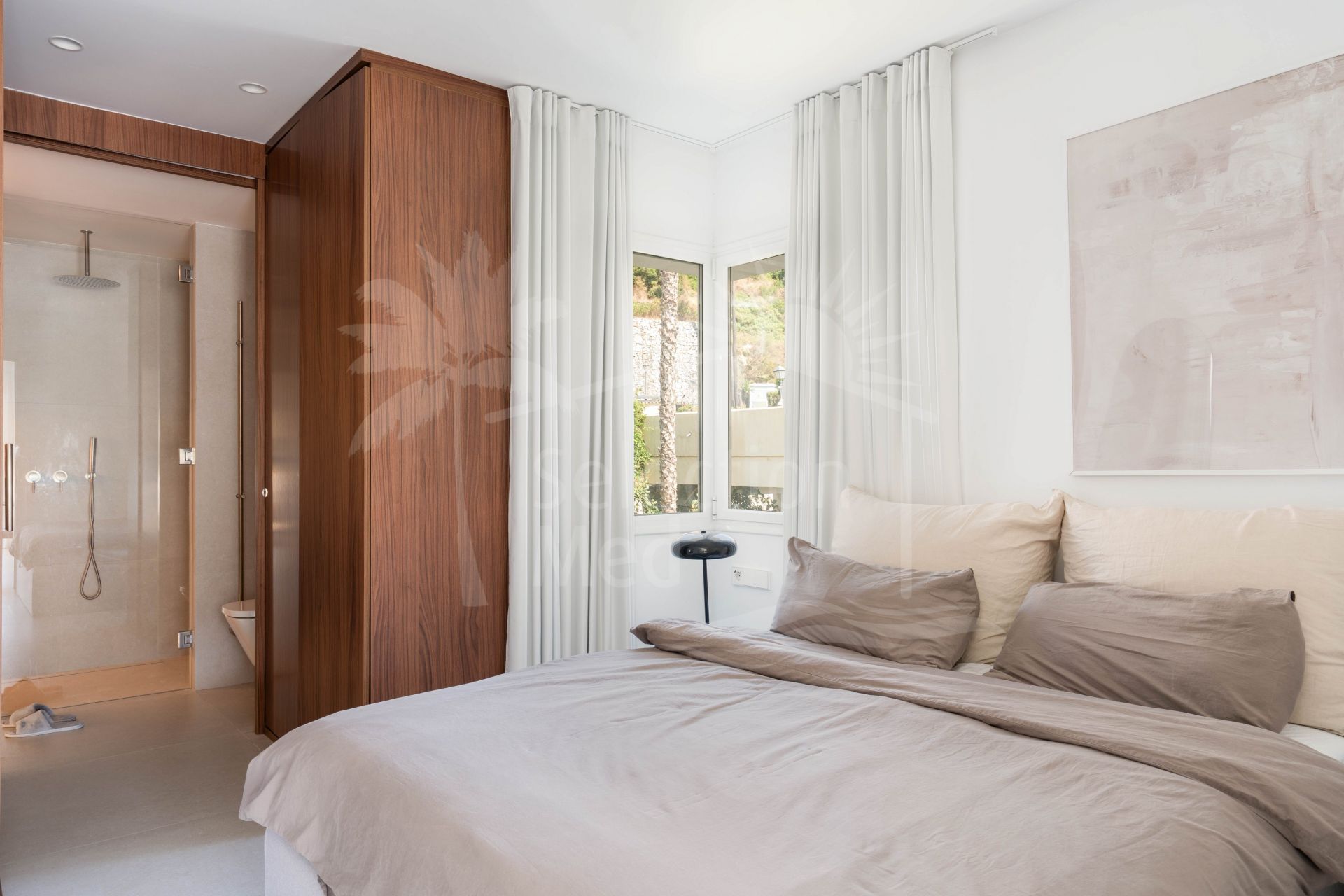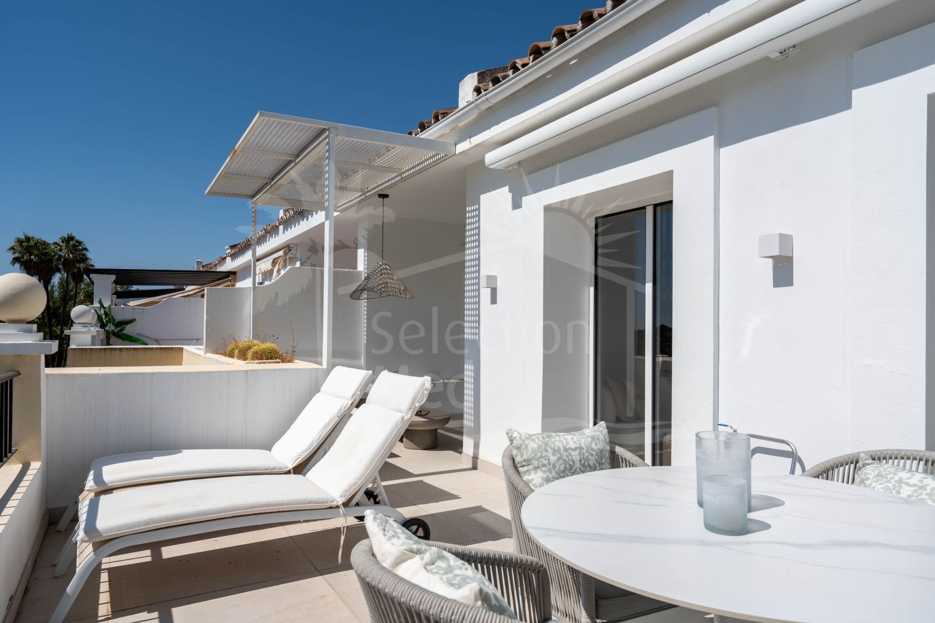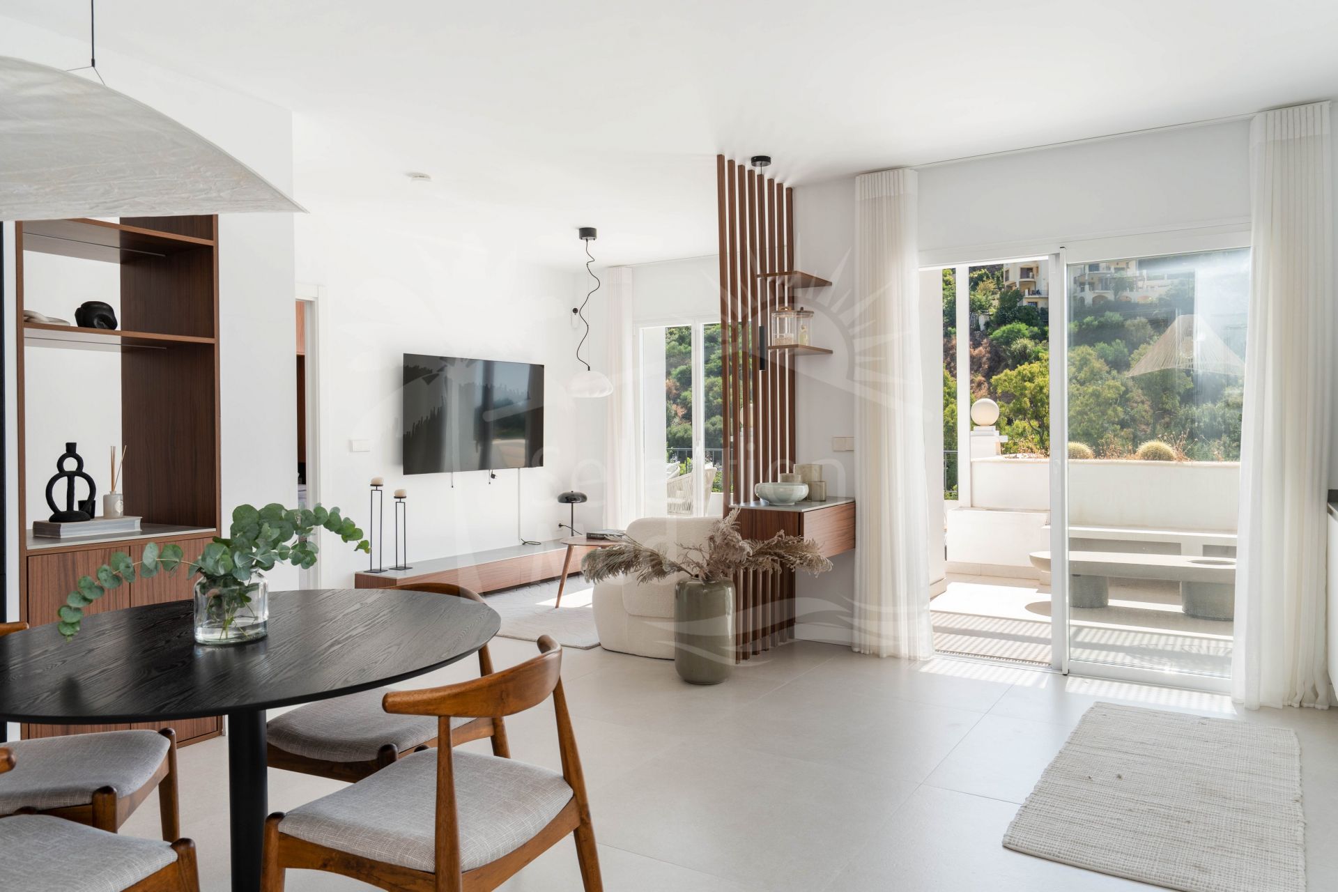 The interior includes two serene bedrooms and three stylish bathrooms, while the expansive terrace—facing south and east—provides breathtaking views of lush landscapes and the Sierra de las Nieves mountains. Ideal for relaxing or entertaining, the terrace seamlessly extends the living space outdoors.