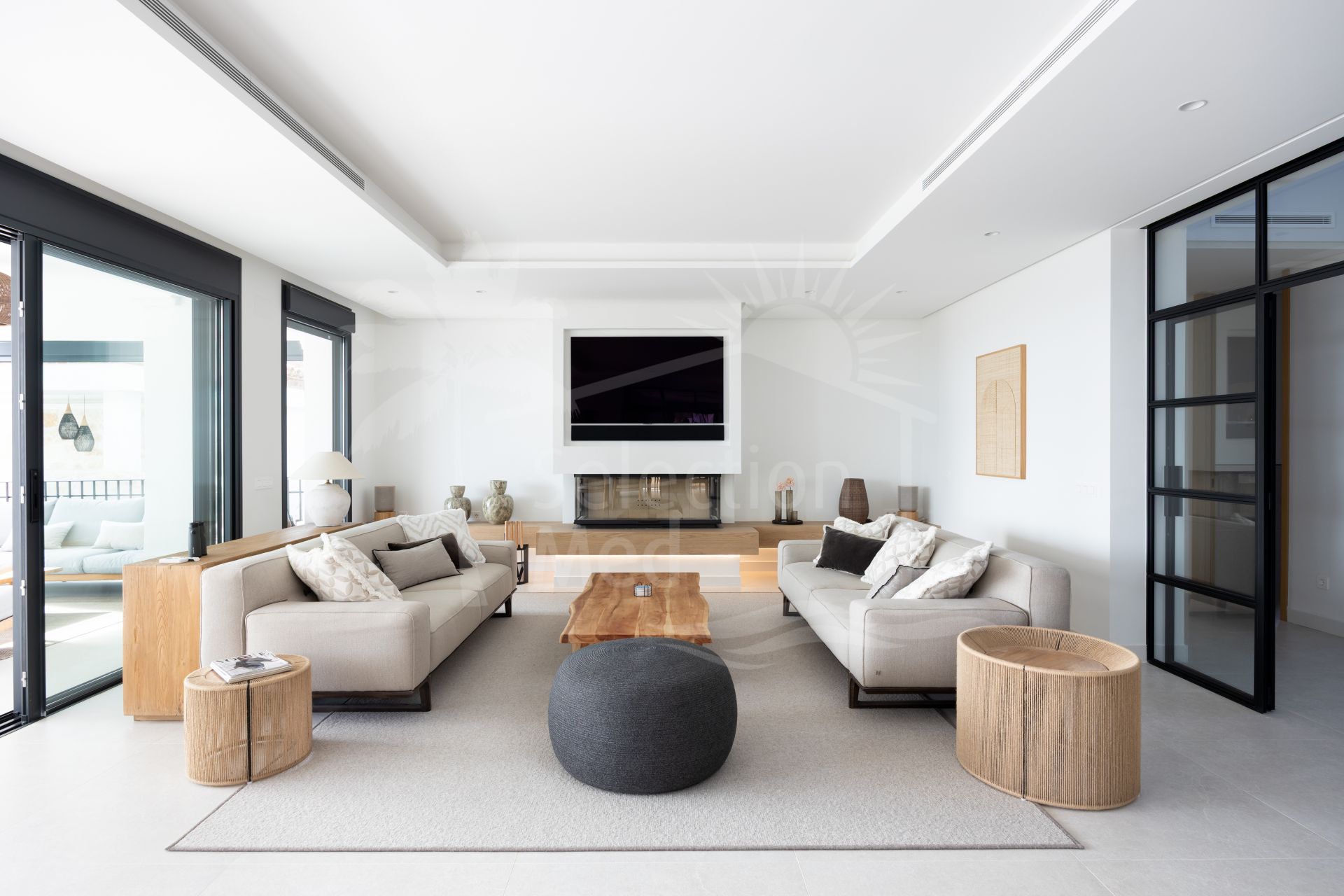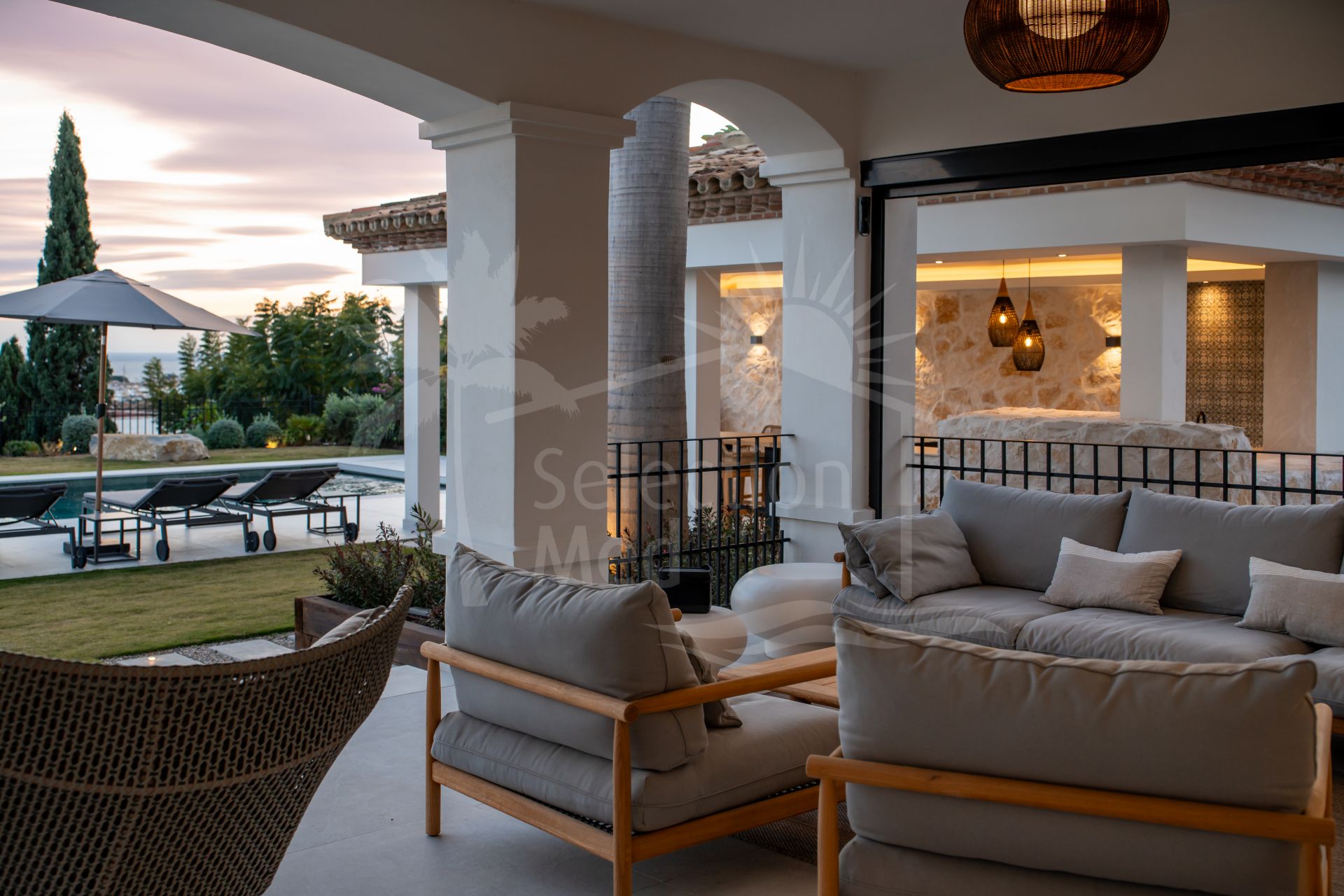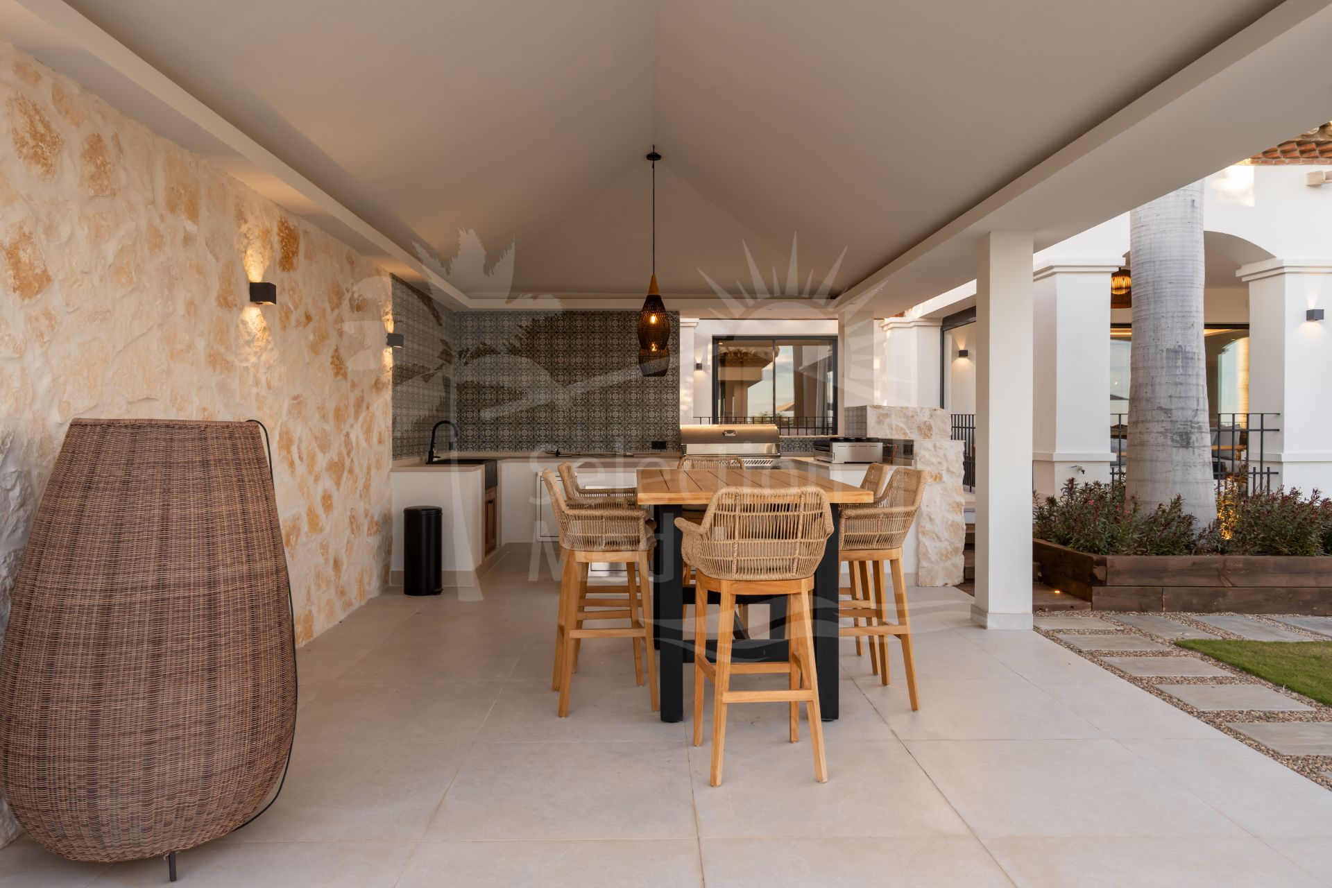 Set within the prestigious 24-hour gated community, moments from the iconic Anantara Villa Padierna Palace, this exceptional south-facing villa embodies the very best of contemporary Mediterranean luxury. Recently completed after a total high-end renovation, the residence seamlessly combines refined Andalusian architecture with cutting-edge technology and impeccable craftsmanship.