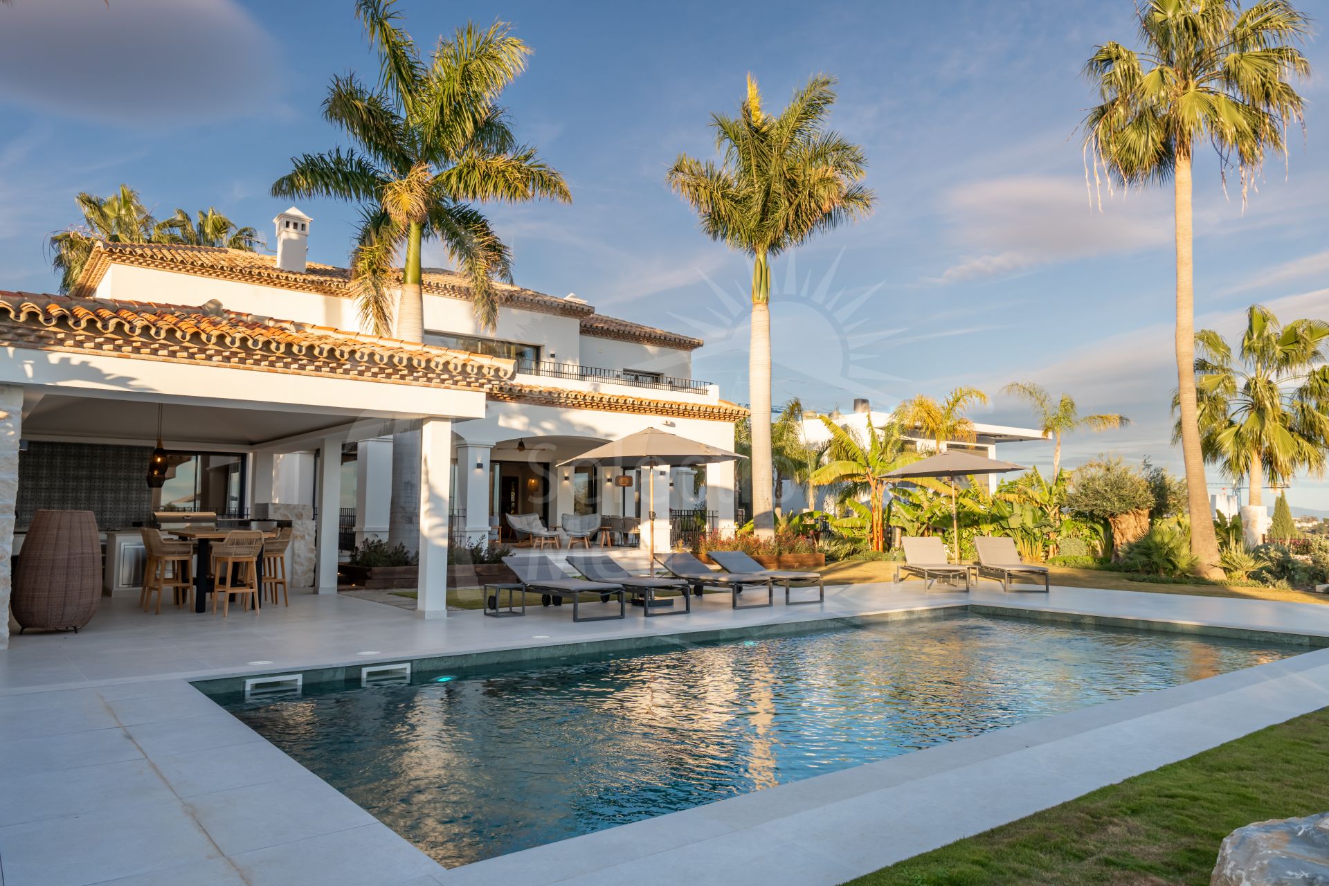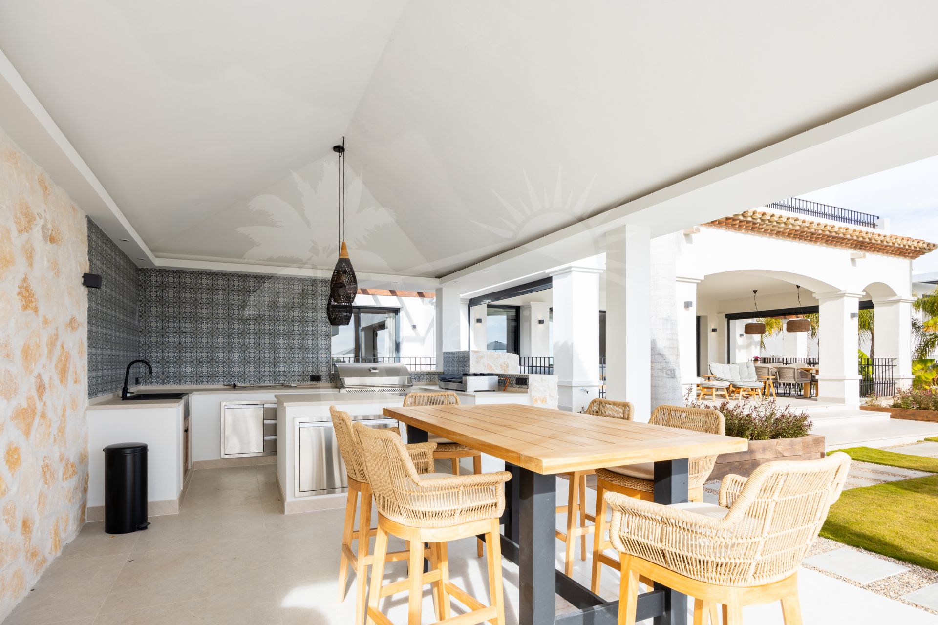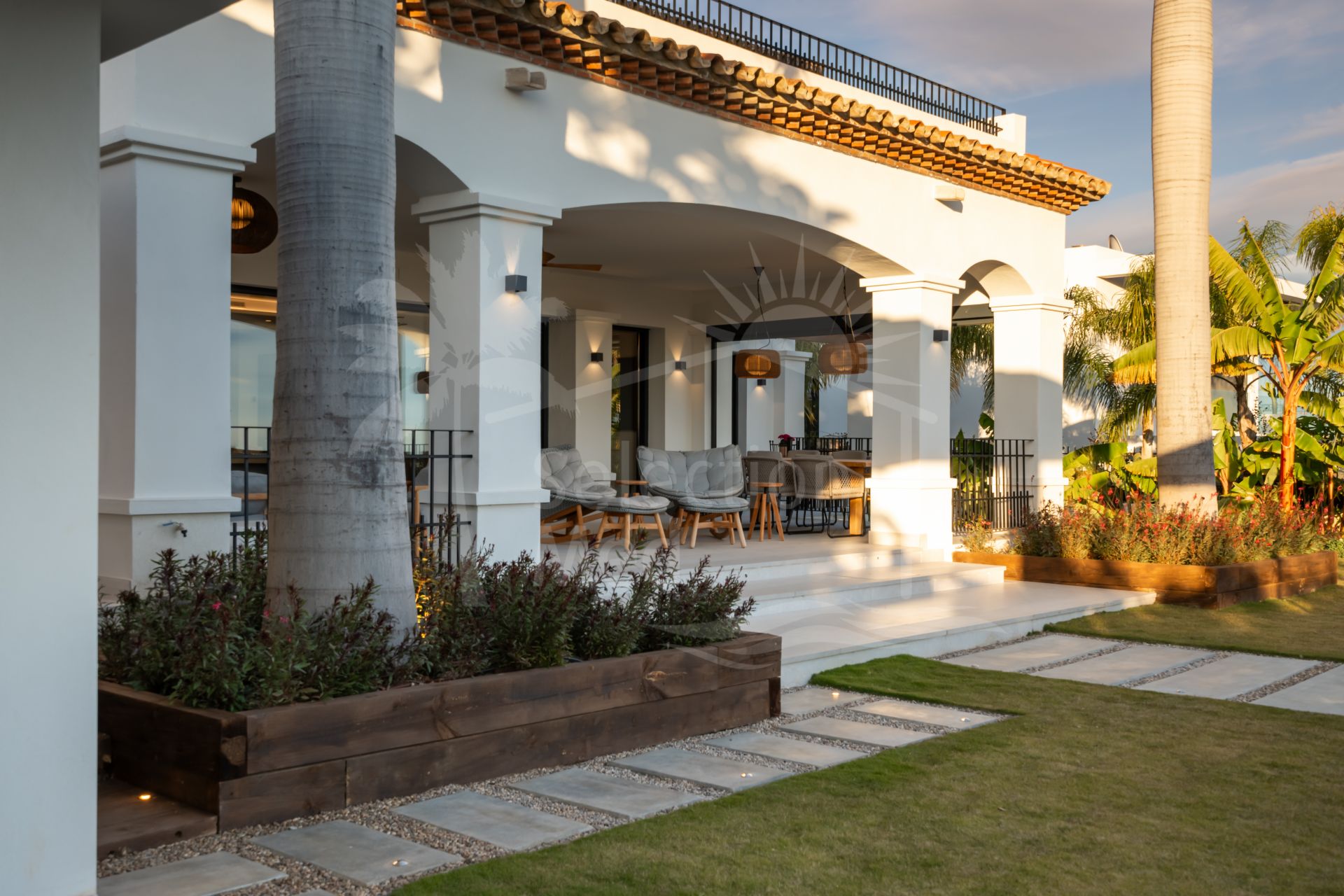 Set within the prestigious 24-hour gated community, moments from the iconic Anantara Villa Padierna Palace, this exceptional south-facing villa embodies the very best of contemporary Mediterranean luxury. Recently completed after a total high-end renovation, the residence seamlessly combines refined Andalusian architecture with cutting-edge technology and impeccable craftsmanship.