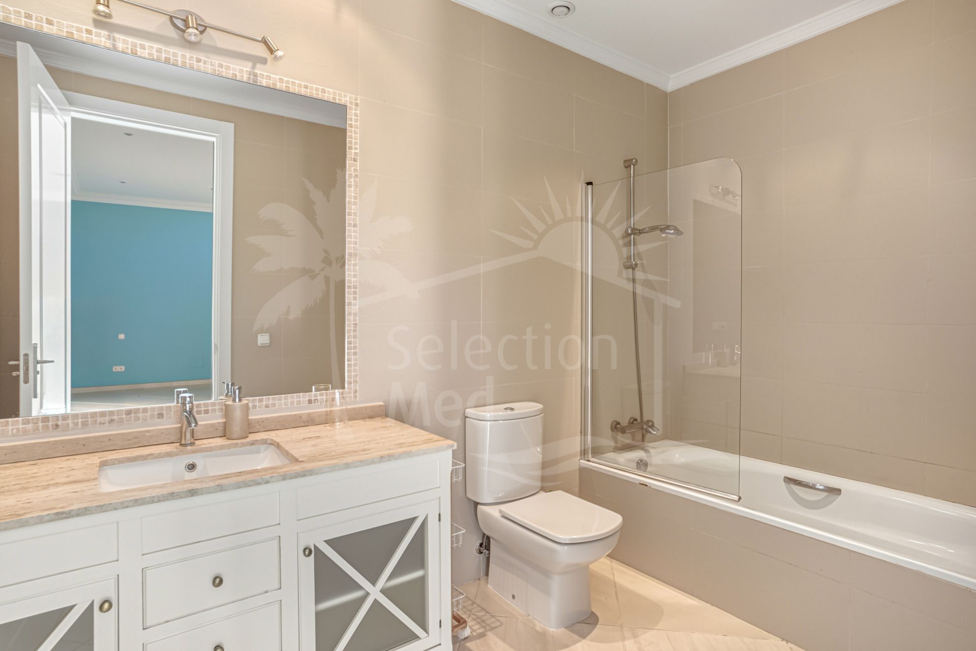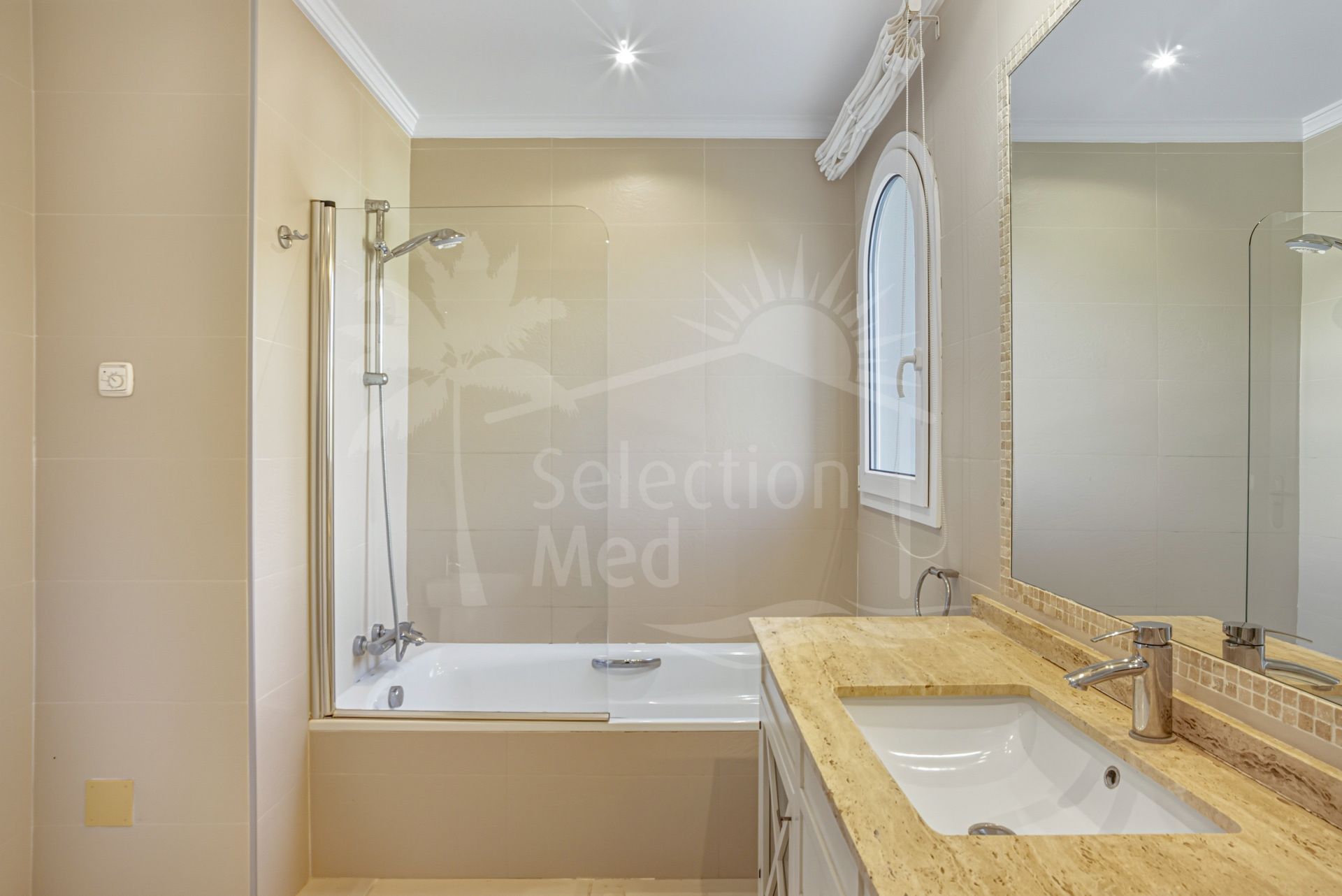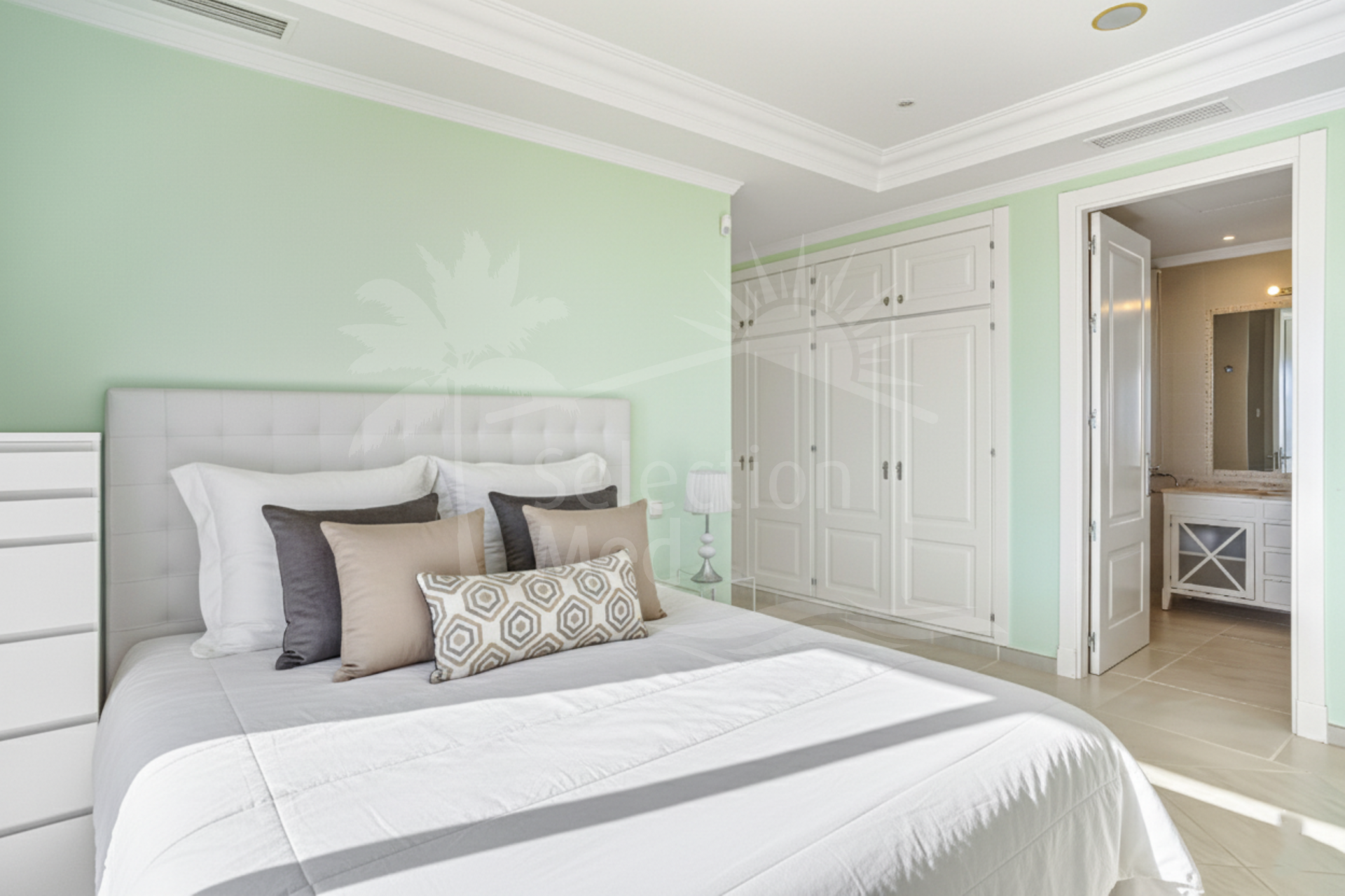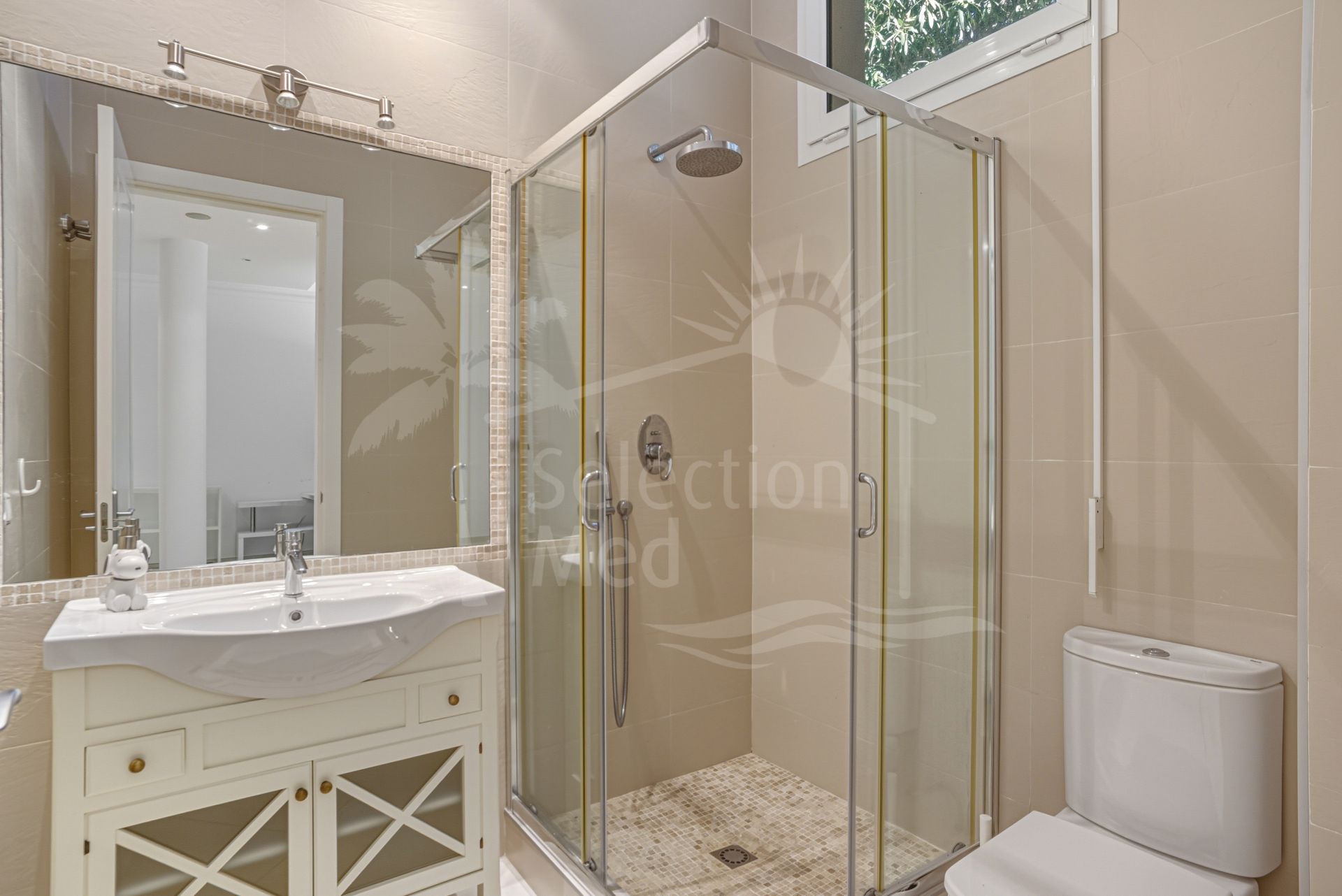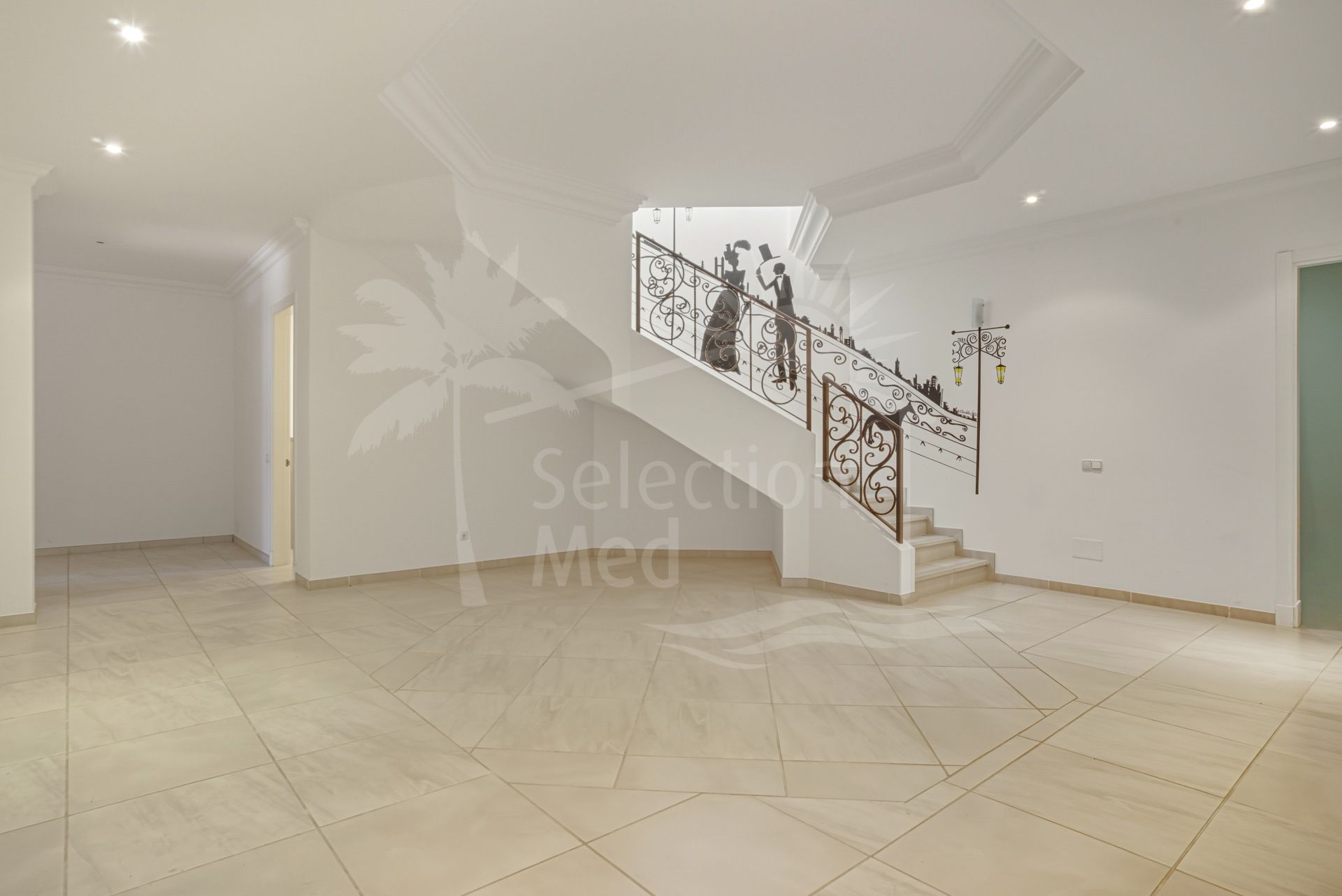 Exceptional eight-bedroom, south-facing villa located in the prestigious gated community of Los Flamingos, Benahavis, offering 24-hour security, a private garden, and a private pool, all within close proximity to amenities. Spanning four impressive levels, including a vast solarium with breathtaking panoramic sea views, this remarkable residence welcomes you with a grand entrance showcasing spectacular views. The villa features two elegant living rooms, a large kitchen with utility room, private garage for four cars, large driveway, and lift connecting all floors. The master suite boasts his and hers bathrooms and walk-in closets, while all three bedrooms on the first floor enjoy direct access to a spacious terrace overlooking the sea. Each bedroom is en suite, complemented by three additional guest toilets. The versatile lower level offers immense potential, with numerous adaptable rooms and independent access from the garage, making it ideal for creating a self-contained apartment. This extraordinary property offers a perfect blend of luxury, space, and endless possibilities.