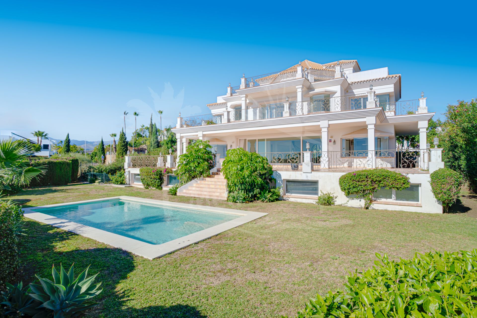 Exceptional eight bedroom, south-facing villa located in the prestigious gated community of Los Flamingos, Benahavis