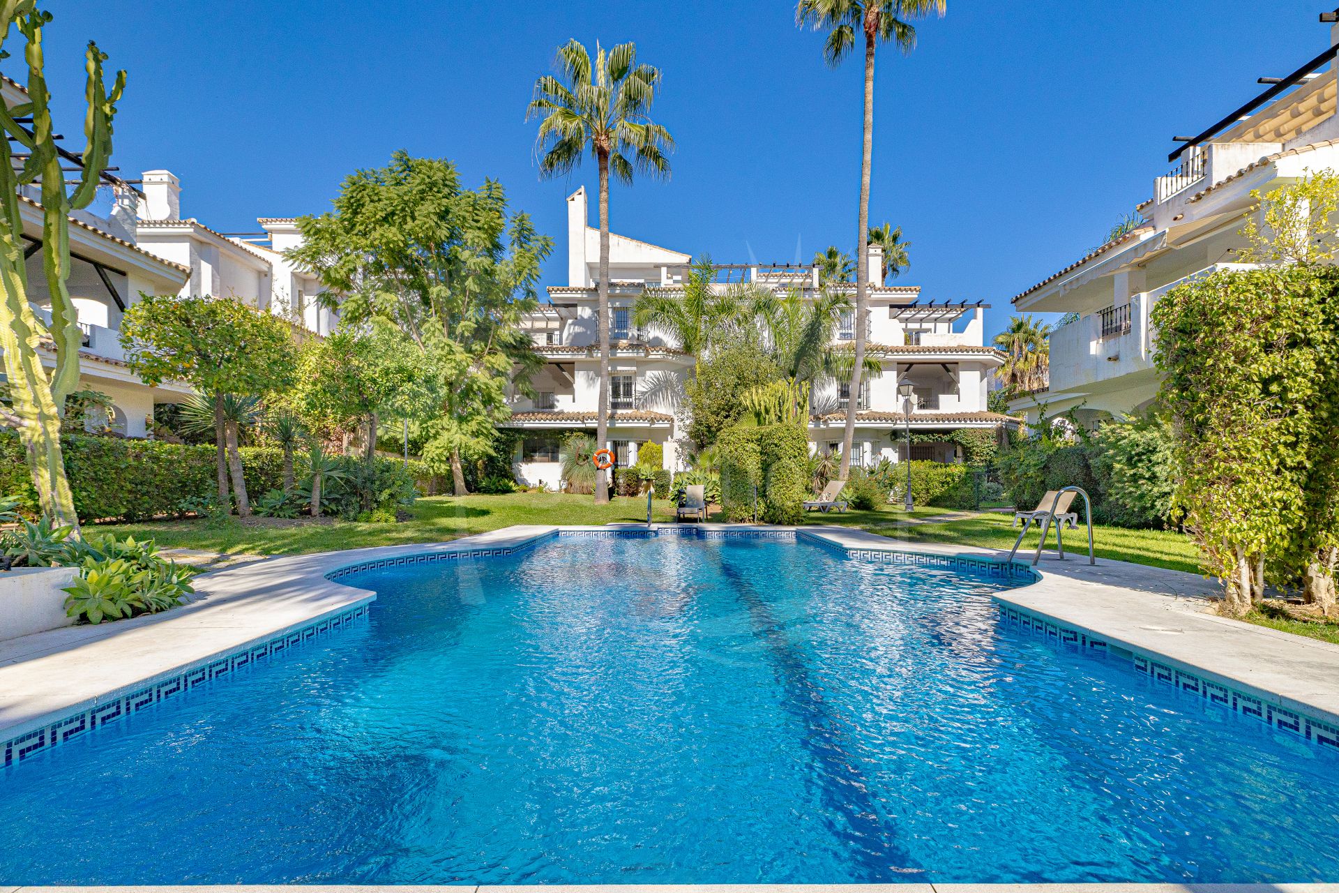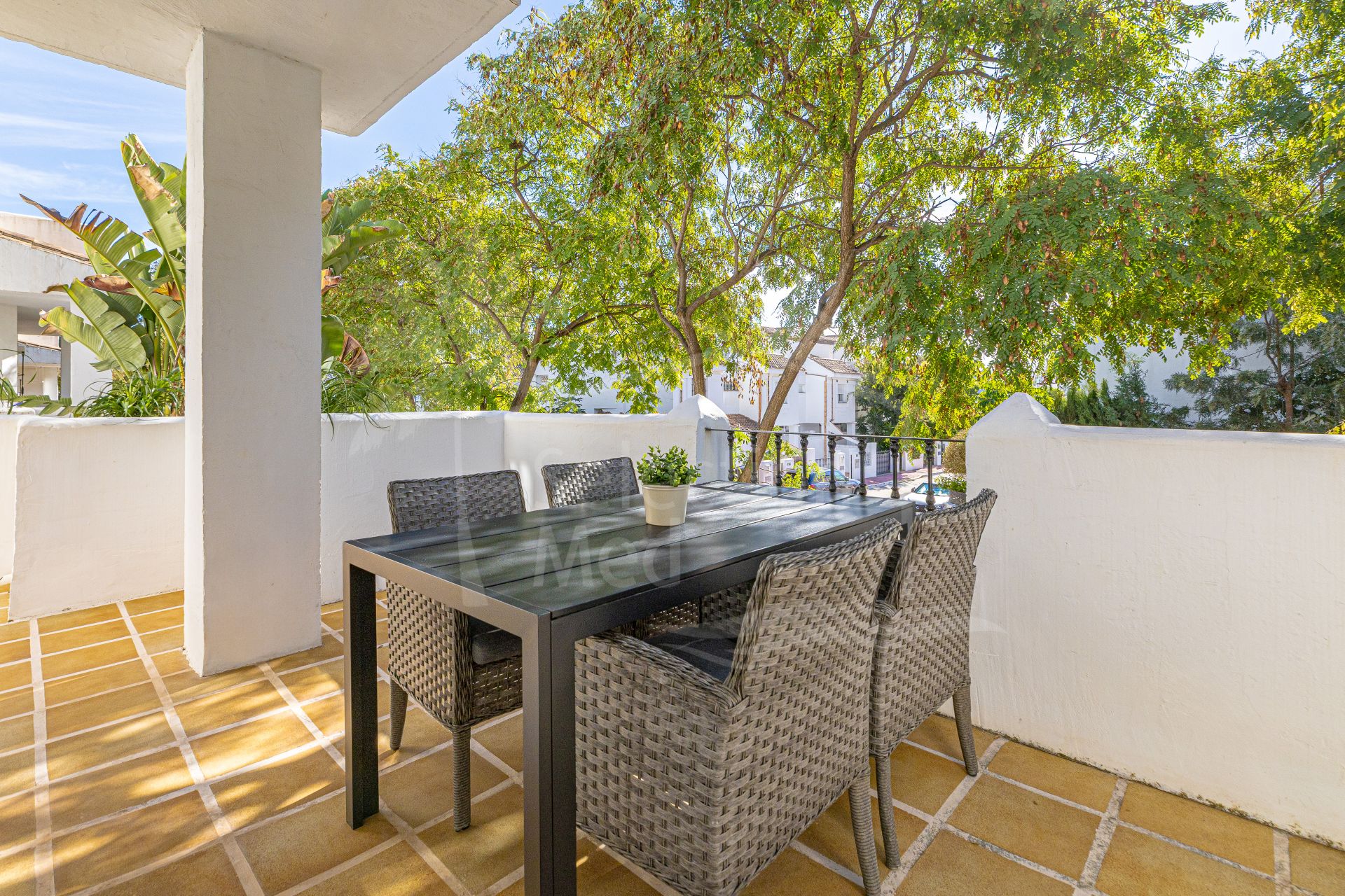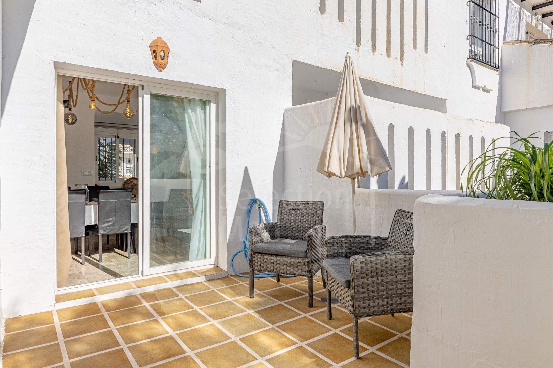 The location is excellent, within walking distance of restaurants, supermarkets, and the beach, and only a short drive from Puerto Banús, Marbella town, and some of the best golf courses on the Costa del Sol. Here you live in the heart of Nueva Andalucía, with everything you need close by, yet in a peaceful and green setting.