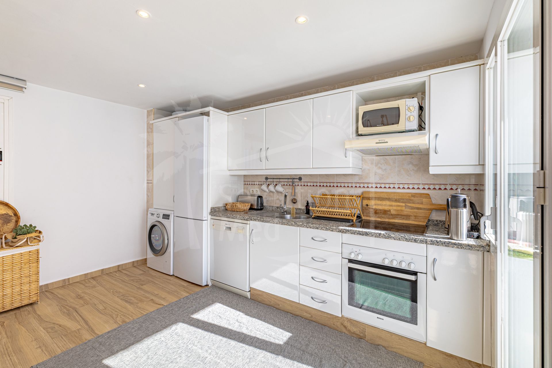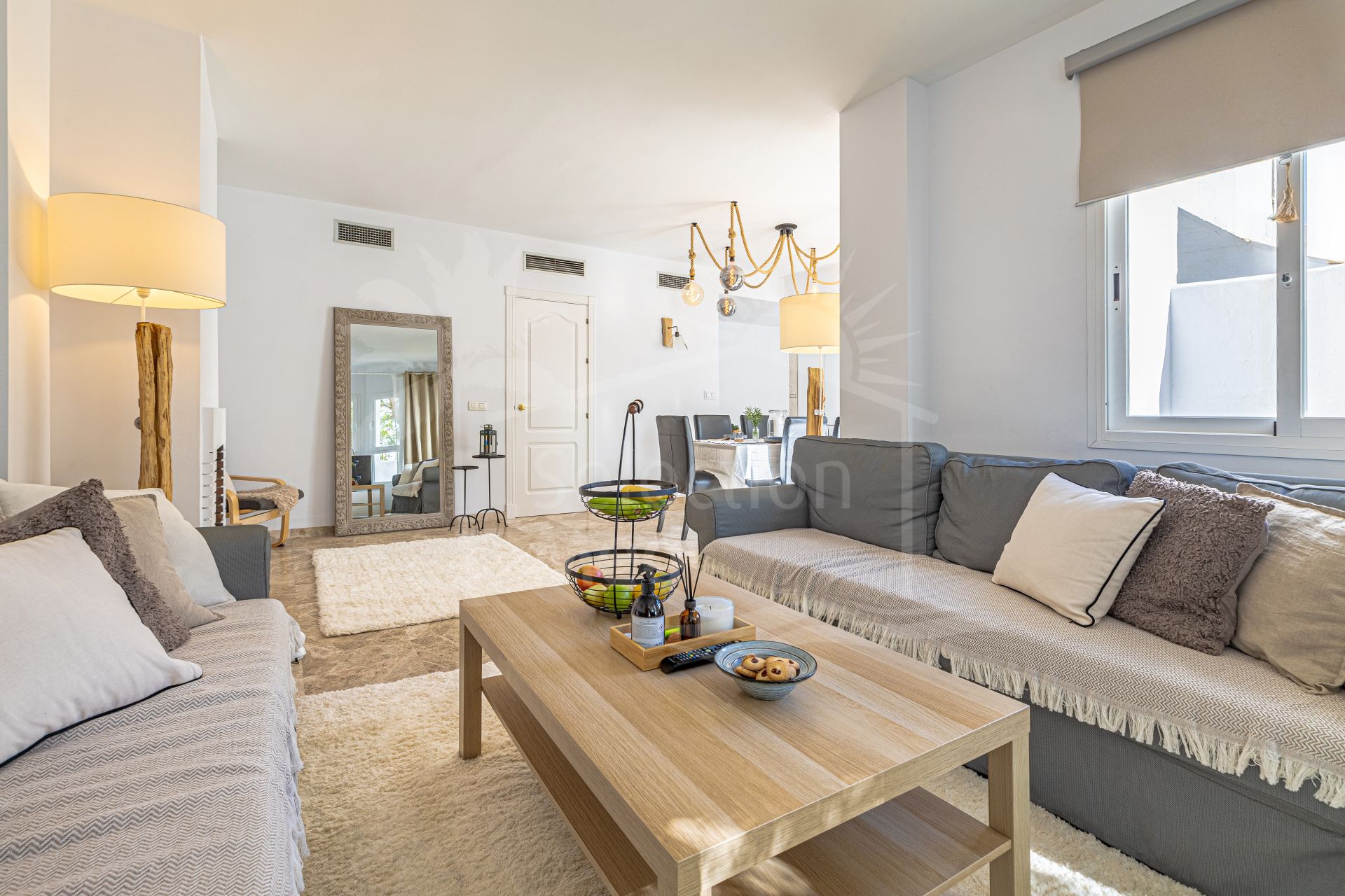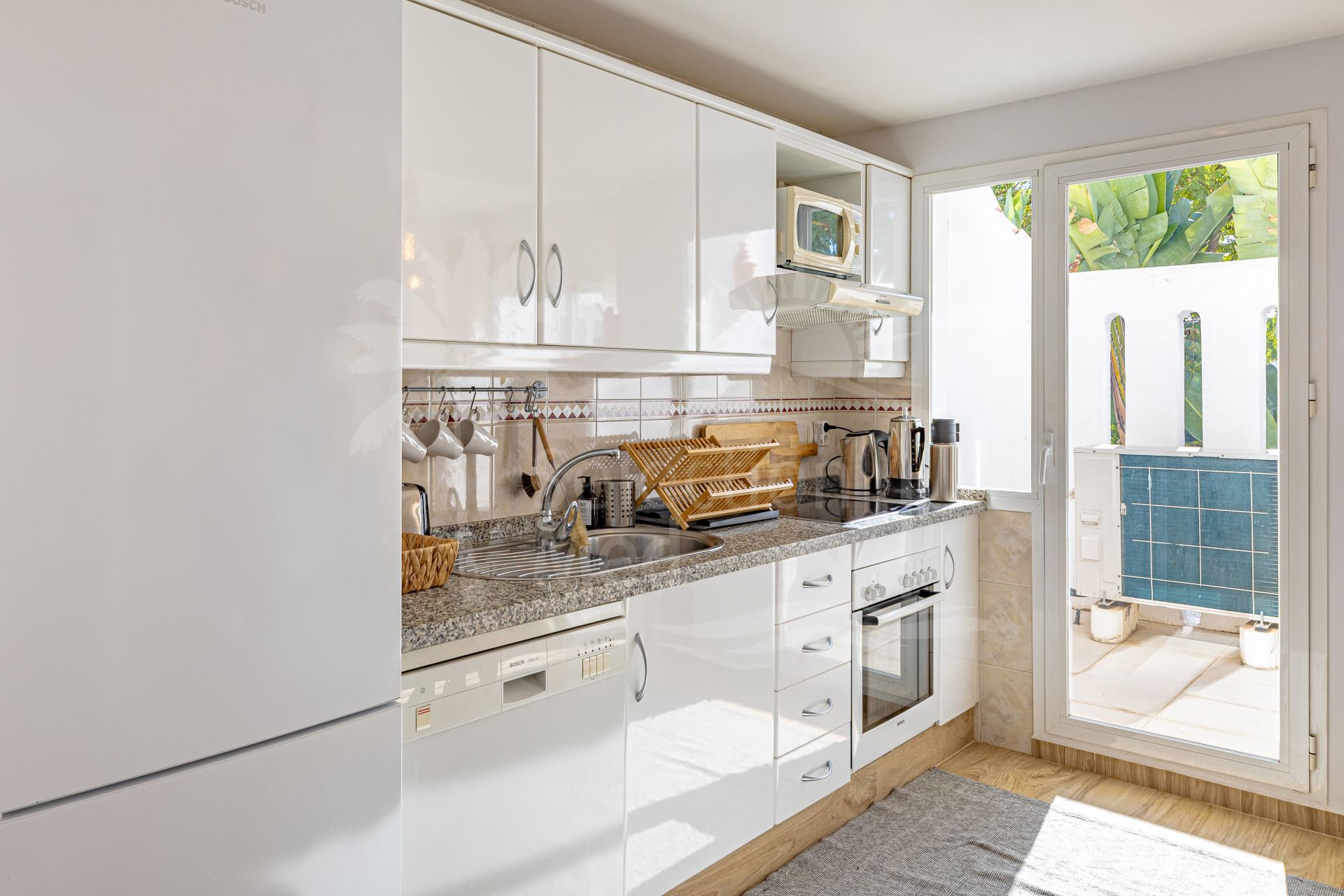 The location is excellent, within walking distance of restaurants, supermarkets, and the beach, and only a short drive from Puerto Banús, Marbella town, and some of the best golf courses on the Costa del Sol. Here you live in the heart of Nueva Andalucía, with everything you need close by, yet in a peaceful and green setting.