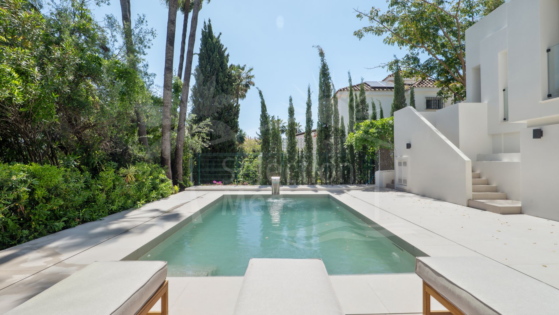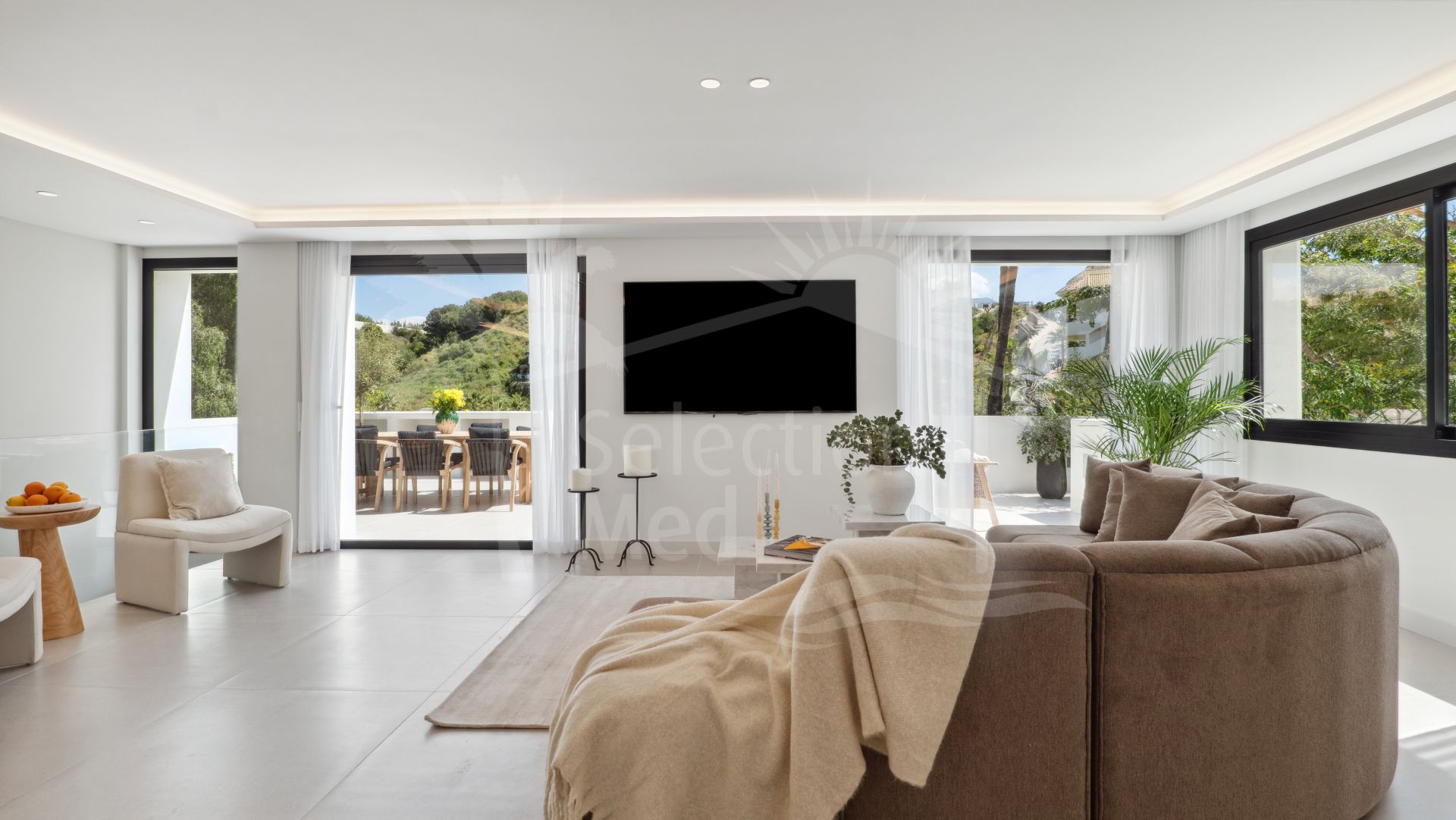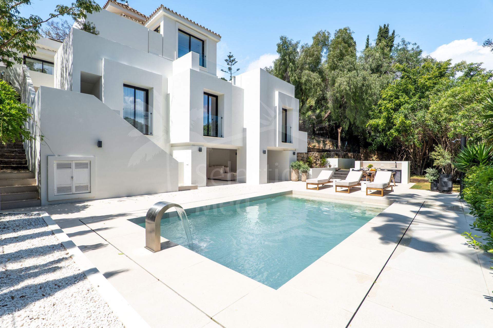 Welcome to Villa Lucalle, a contemporary masterpiece located in the picturesque grounds of Los Naranjos Hill Club in La Cerquilla, Nueva Andalucía.