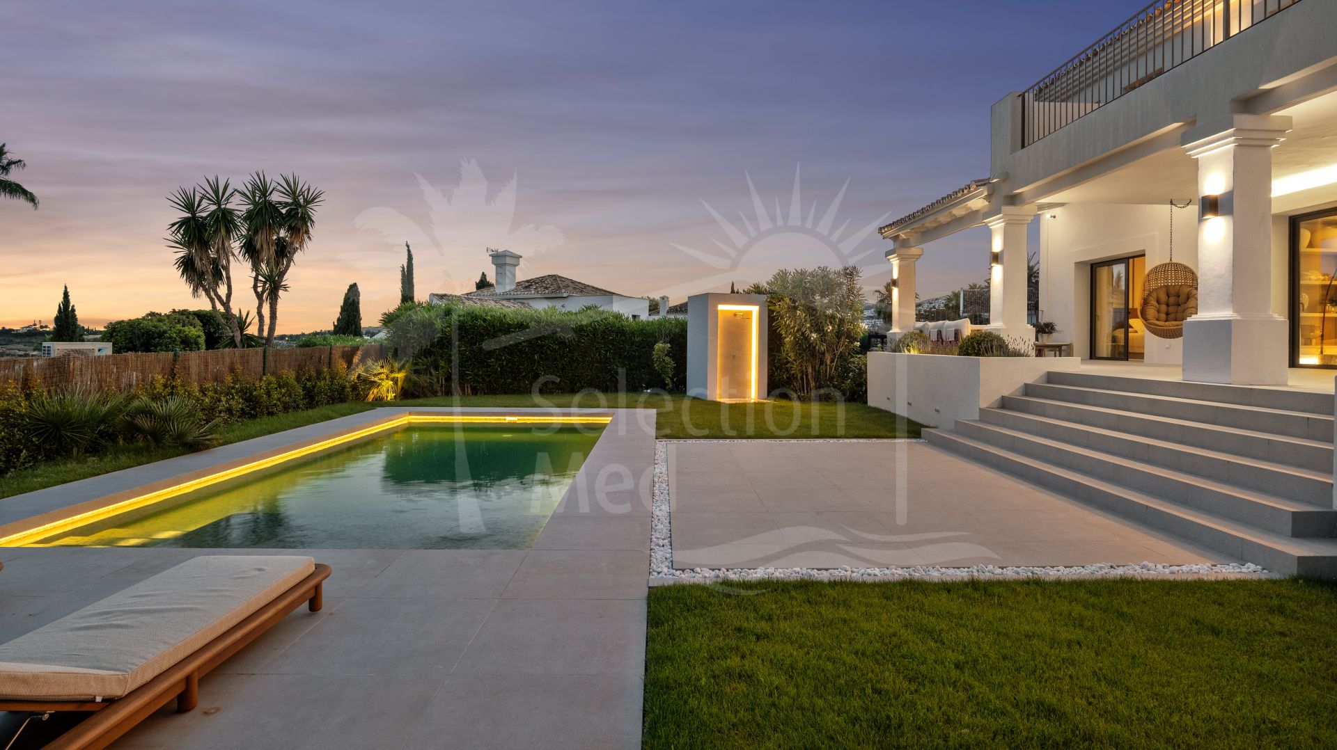 Step into the world of refined Mediterranean living at Villa Rosalia, a stunning luxury residence nestled in the prestigious enclave of Nueva Andalucía, Marbella. Designed to combine contemporary comfort with timeless elegance, this fully furnished and tastefully decorated villa is move-in ready, offering an effortless transition into a life of sophistication.