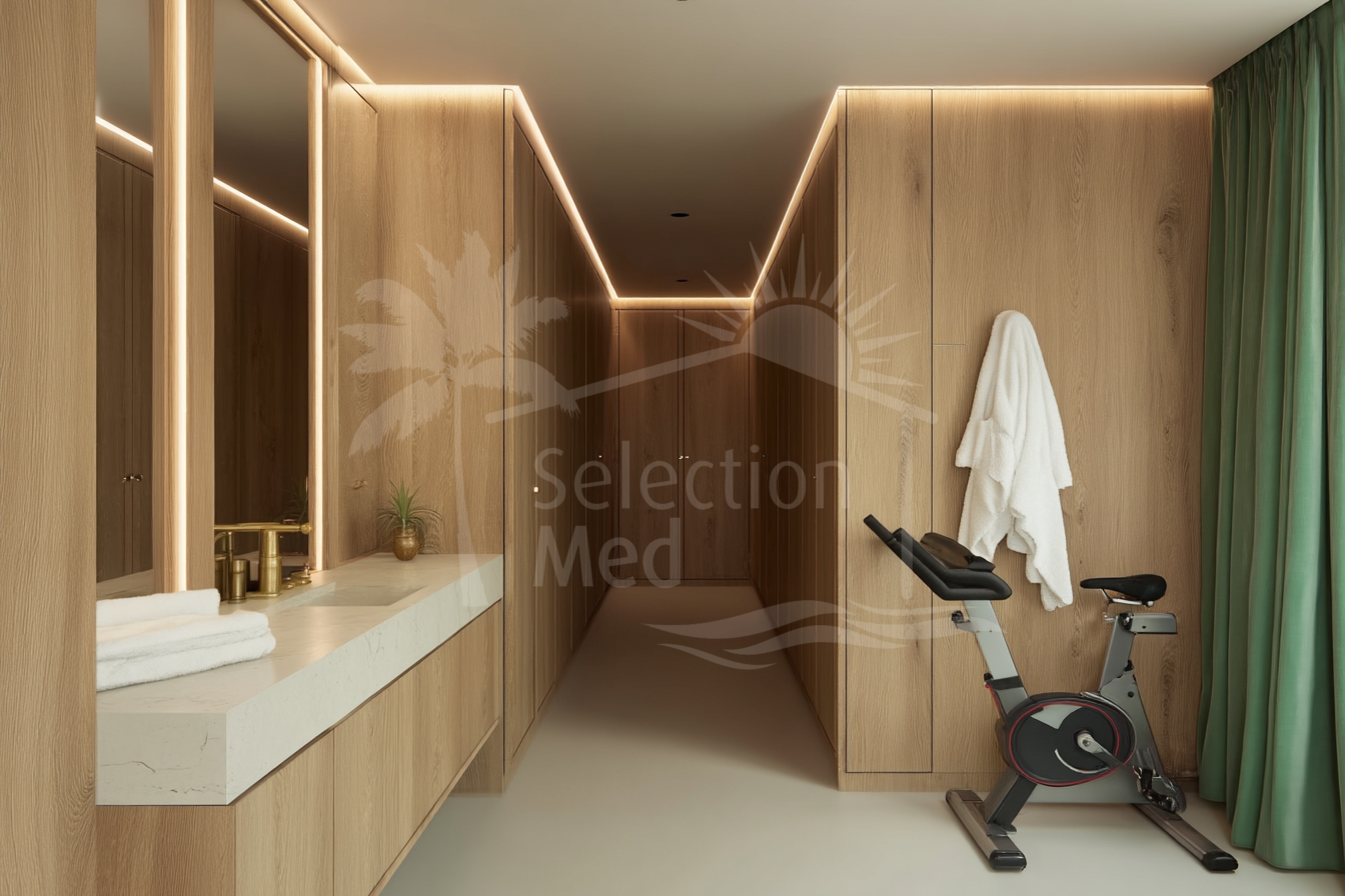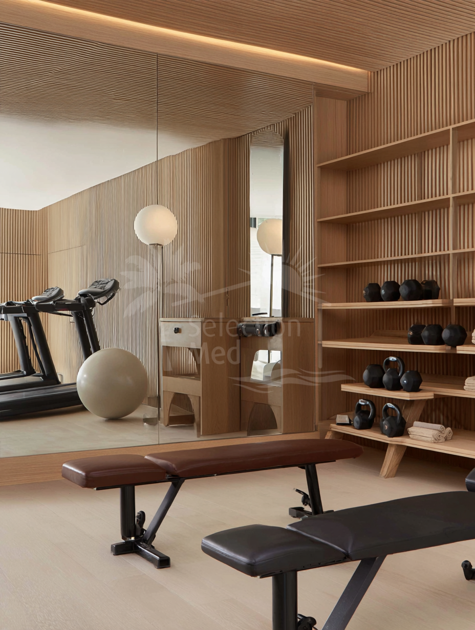 Fully equipped gym and wellness area with sauna