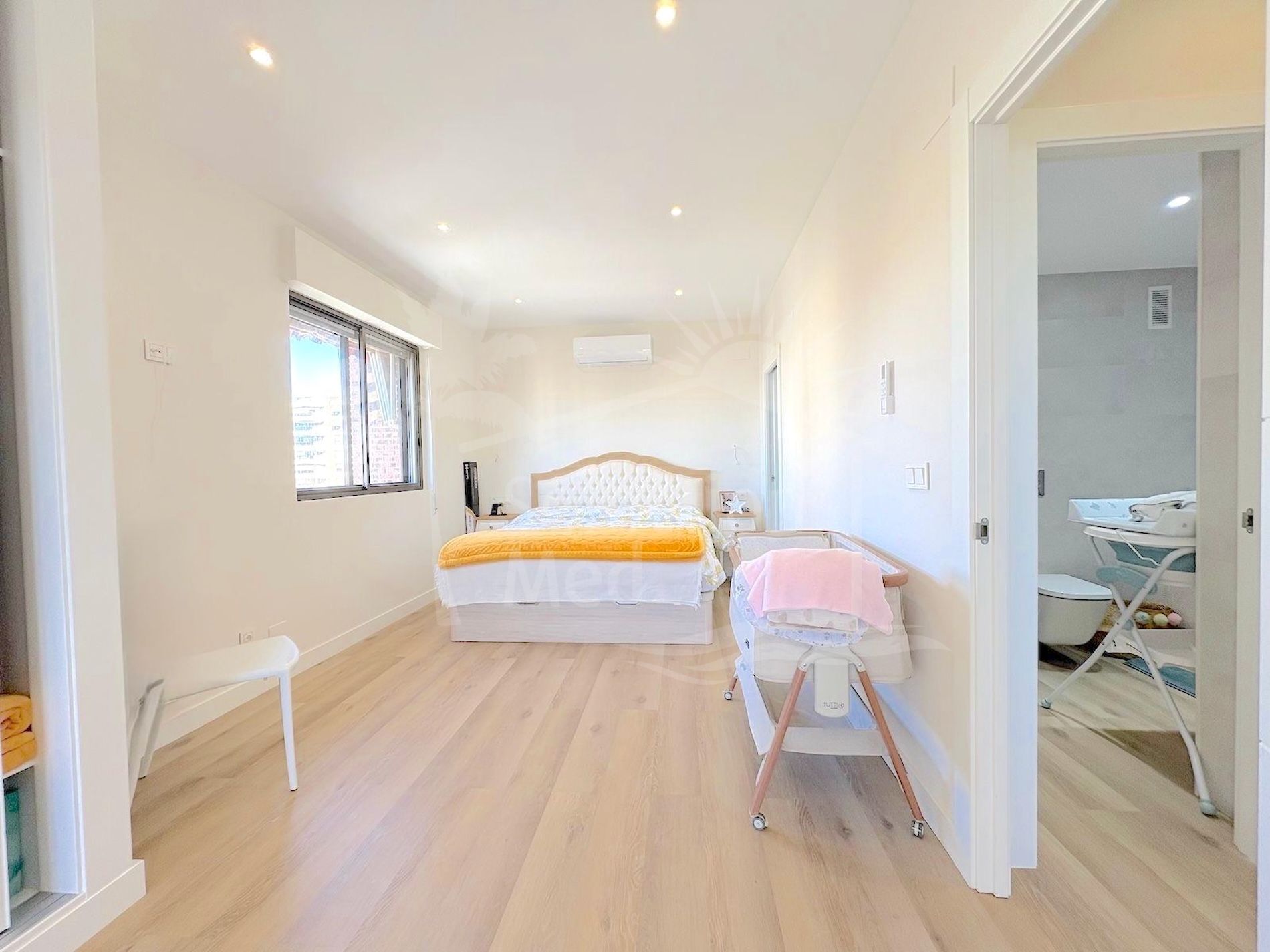 All rooms are exterior-facing and fitted with large windows, ensuring excellent natural light throughout the property. Air conditioning is installed in the main living areas for optimal comfort.