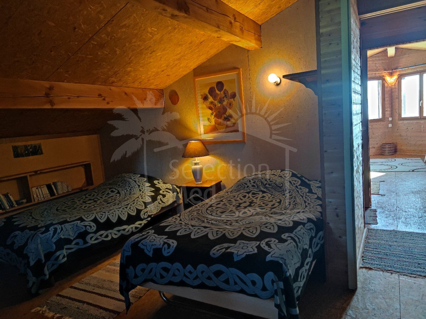 Nature lovers, peace seekers, and fans of authentic charmthis home is for you. Nestled between Carcassonne and Limoux, with breathtaking panoramic views of the Pyrenees, this nearly 190 m² wooden house offers a unique living experience with no overlooking neighbors. A warm and luminous retreat Distinctive architecture with cozy wooden interiors Bright and spacious living room 4 generous bedrooms 1 shower room and 1 bathroom Outdoor living all year round South-facing terrace to soak up the sun throughout the year Shaded clearings perfect for summer afternoons Two wood-burning stoves providing gentle warmth in every room during winter Extra accommodation potential A fully equipped chalet with its own shower offers sleeping space for four additional guests. It previously held the “Accueil Paysan” label, a mark of quality and authenticity appreciated by travelers seeking meaningful, rural stays. A natural haven of 6,300 m² The partially wooded land offers a peaceful, preserved environmentideal for relaxation, nature walks, or eco-tourism and permaculture projects. A rare and timely opportunitycome and discover this truly original property. Information about potential risks related to this property is available on the Géorisques website: www.georisques.gouv.fr