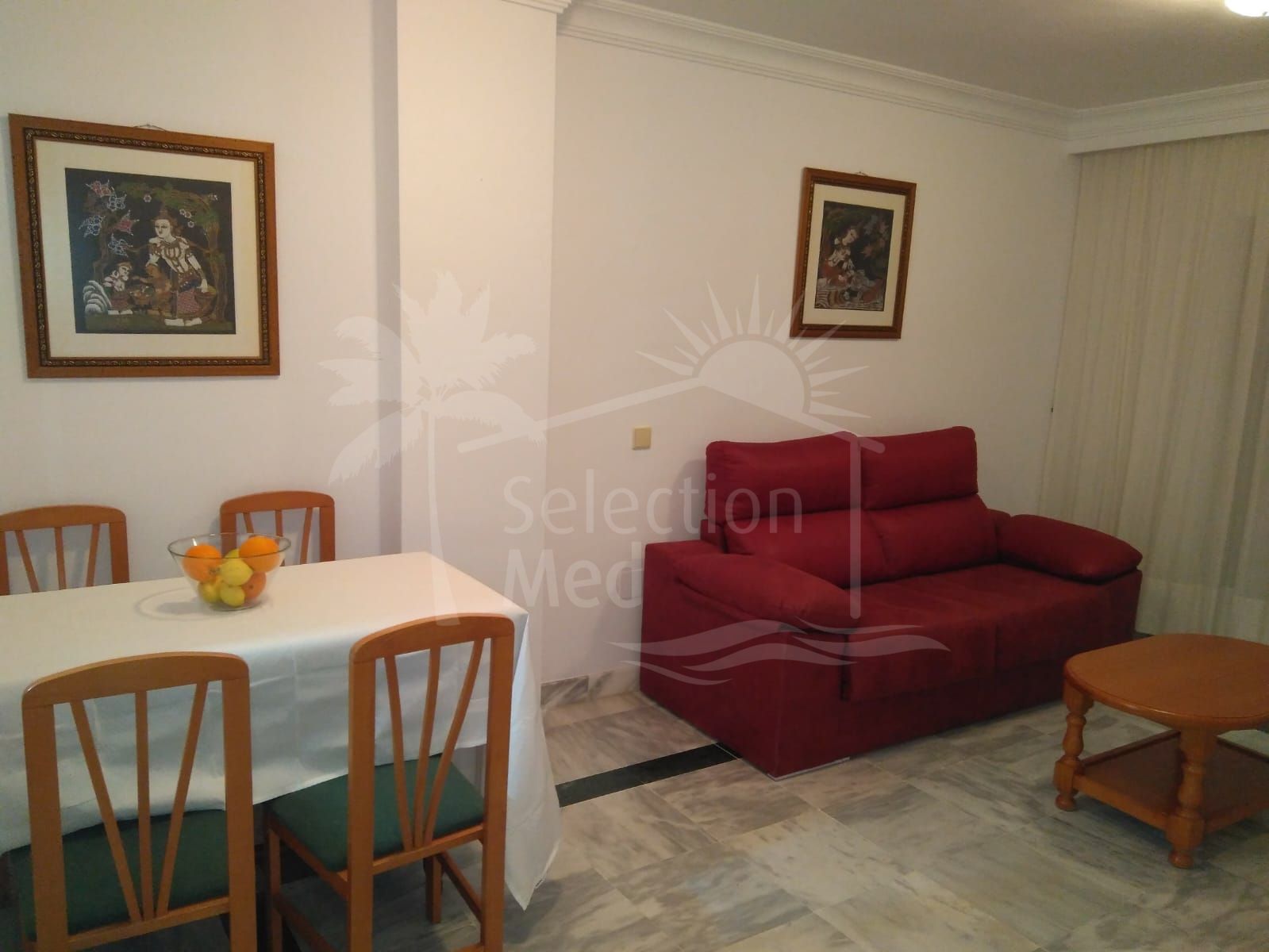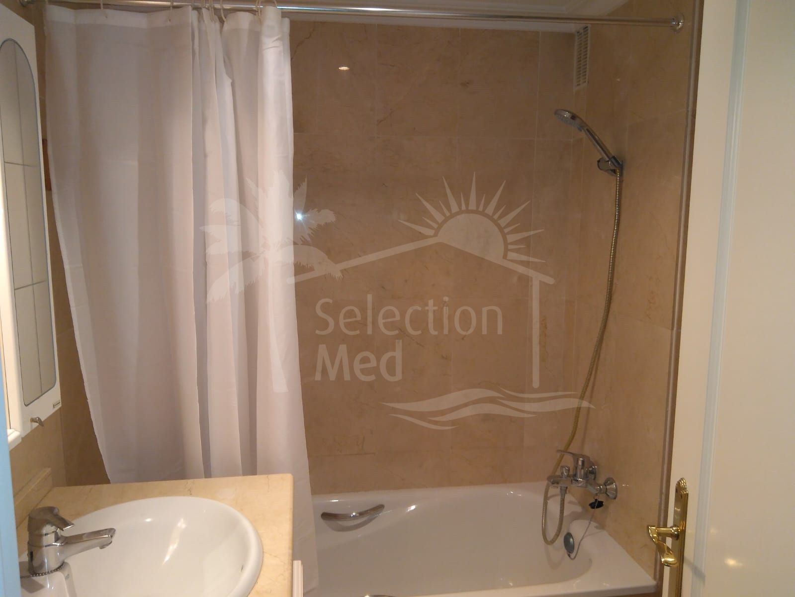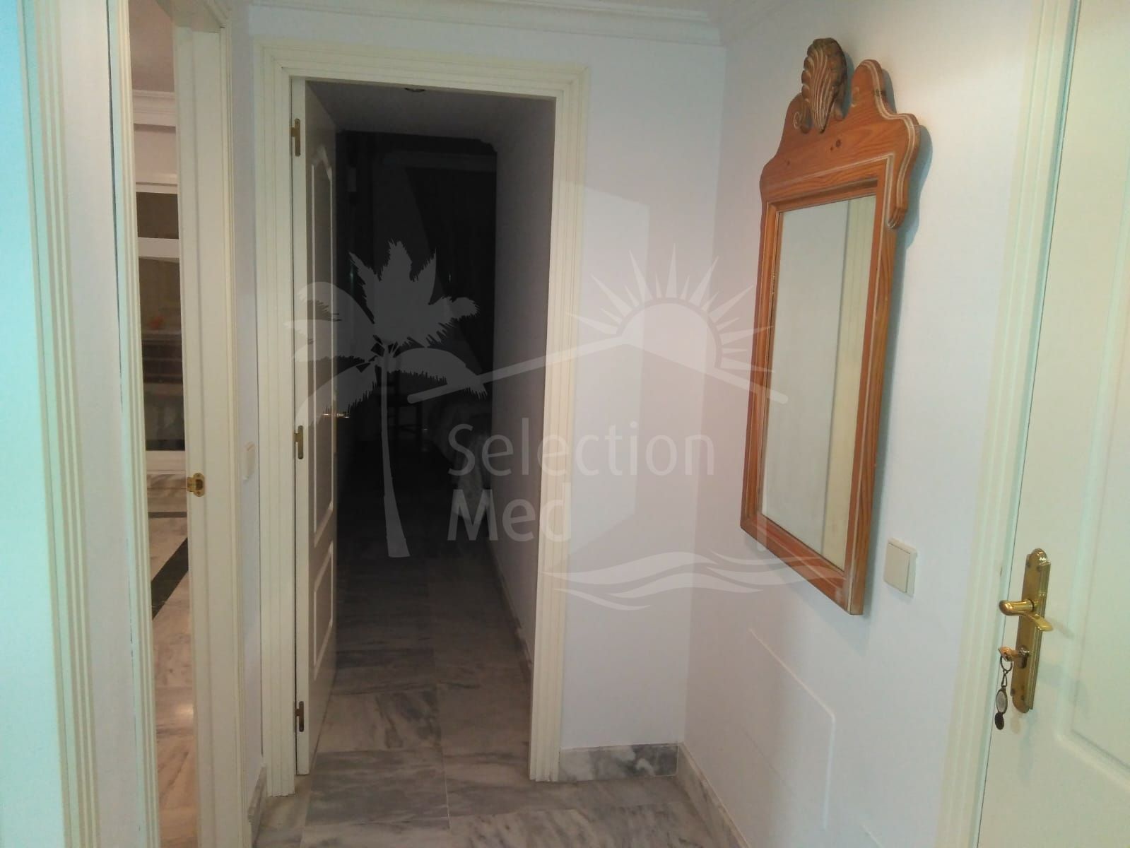In excellent condition and fully furnished, the apartment features elegant white Macael marble floors throughout, ensuring a bright and luxurious feel. The building offers an elevator and adapted access for added convenience.
