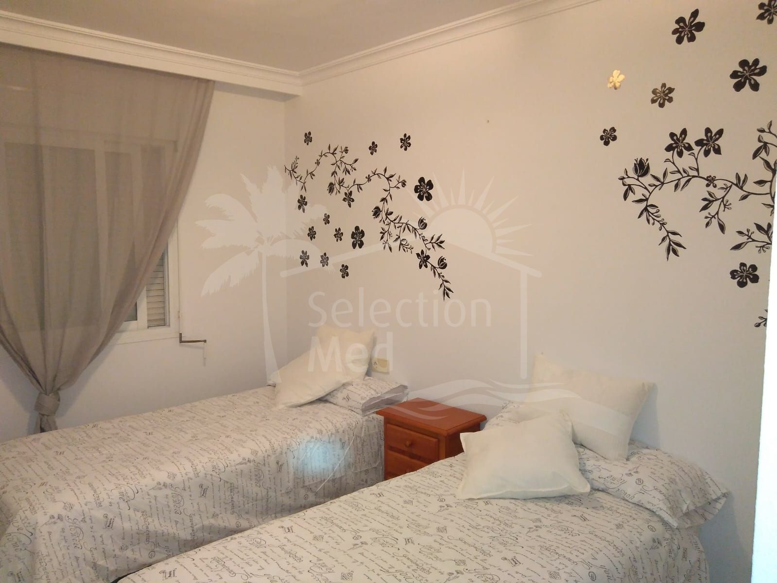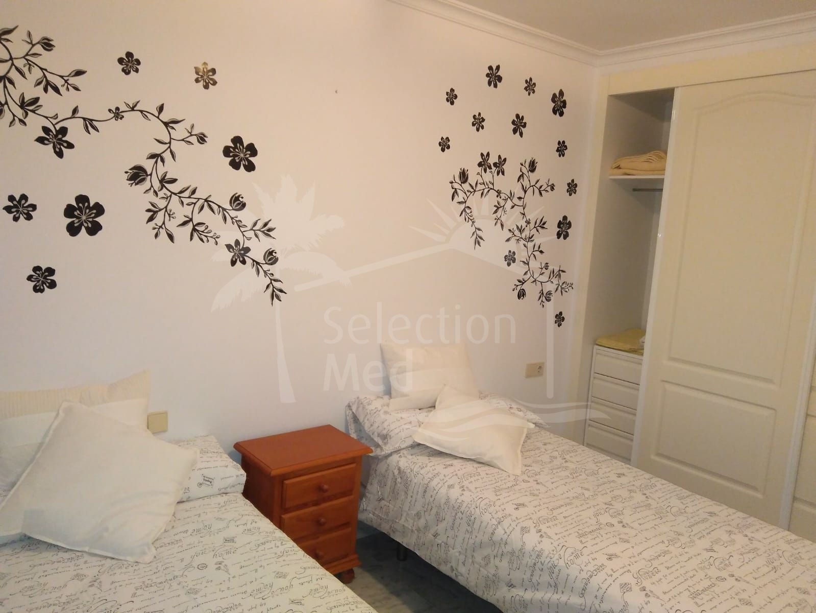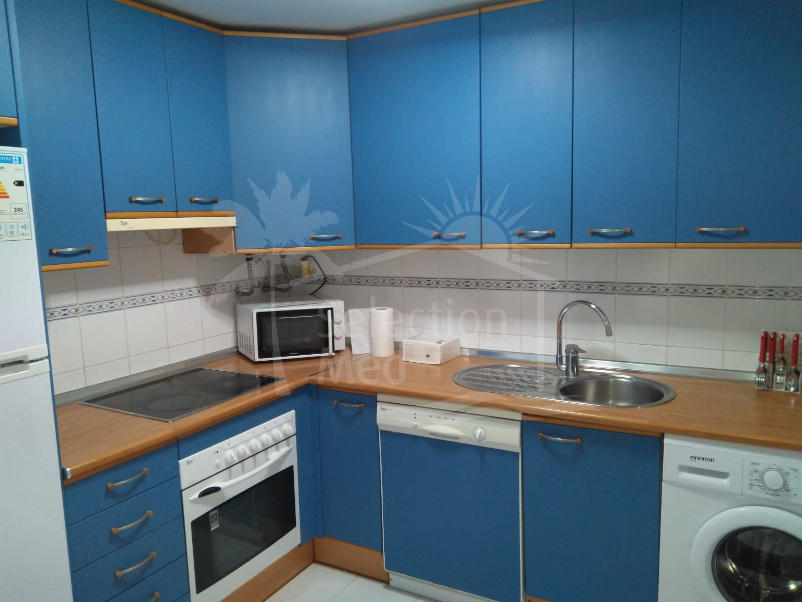 In excellent condition and fully furnished, the apartment features elegant white Macael marble floors throughout, ensuring a bright and luxurious feel. The building offers an elevator and adapted access for added convenience.