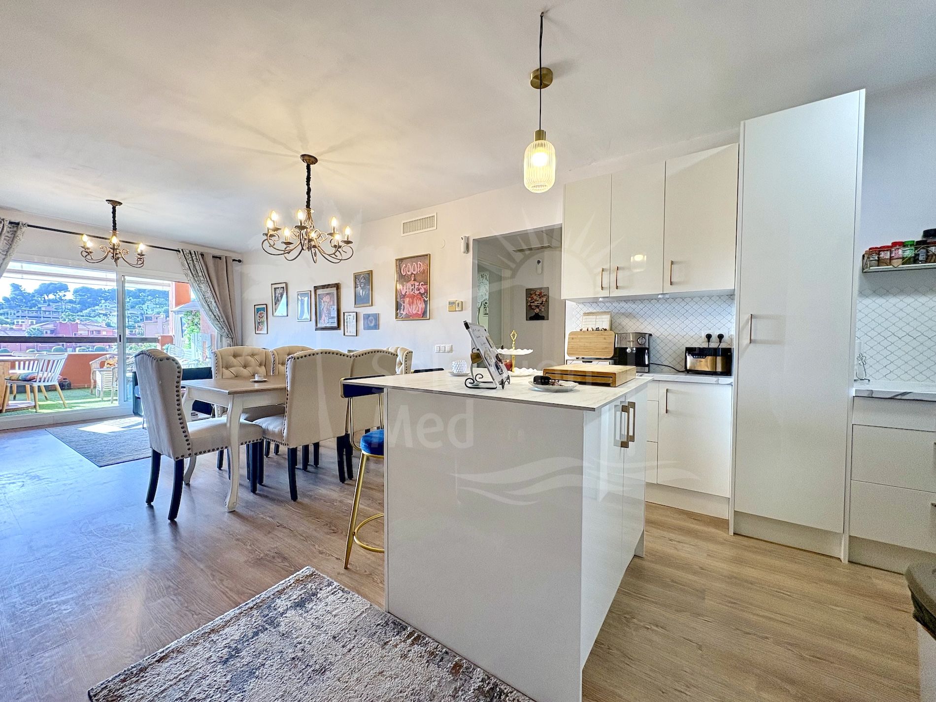 Beautifully renovated apartment set within a peaceful and secure urbanisation, offering quick access to all amenities. The property features two bedrooms and two bathrooms. The main bedroom includes a spacious walk‑in closet/dressing room and an ensuite bathroom, while the second bedroom has built‑in cupboards.