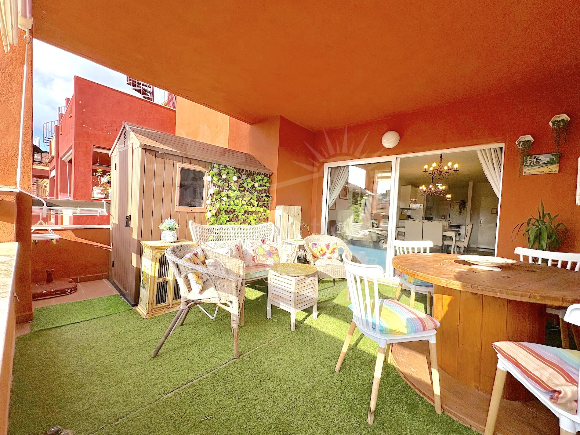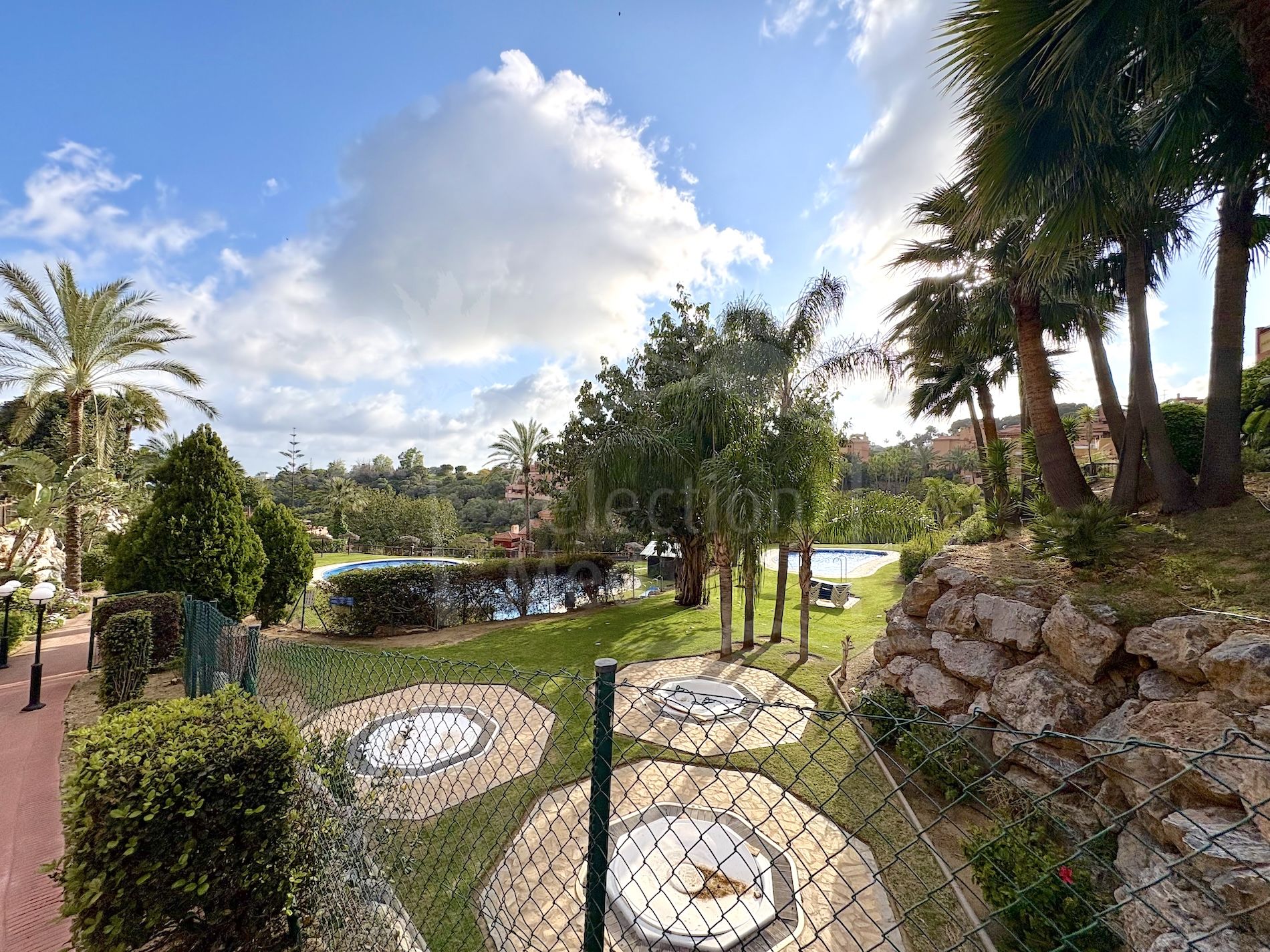 The urbanisation offers a communal swimming pool surrounded by well‑kept gardens, adding to the overall sense of comfort and leisure. Additional features include a private garage space, a private storeroom, and a reverse osmosis system in the kitchen.