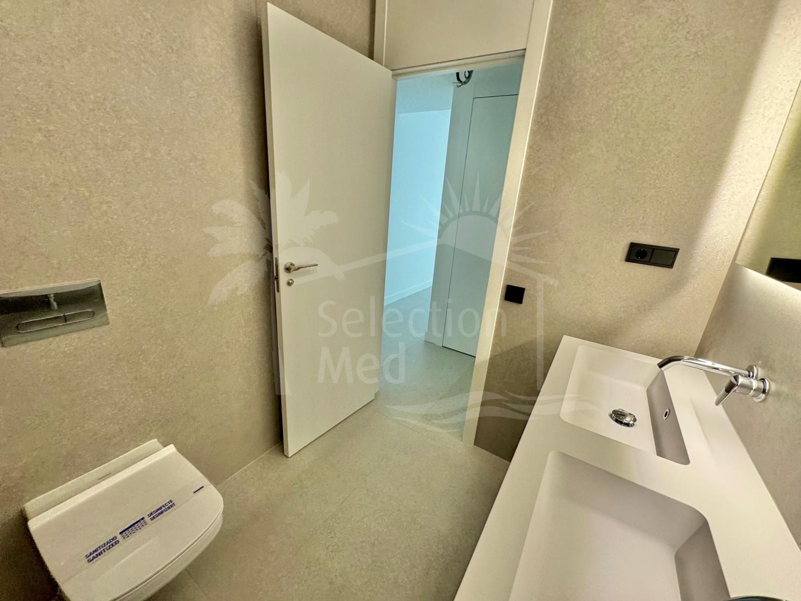 On the left side of the apartment, you will find three bedrooms and two full bathrooms, as well as a rear terrace. Every space stands out for its brightness and excellent quality finishes.
