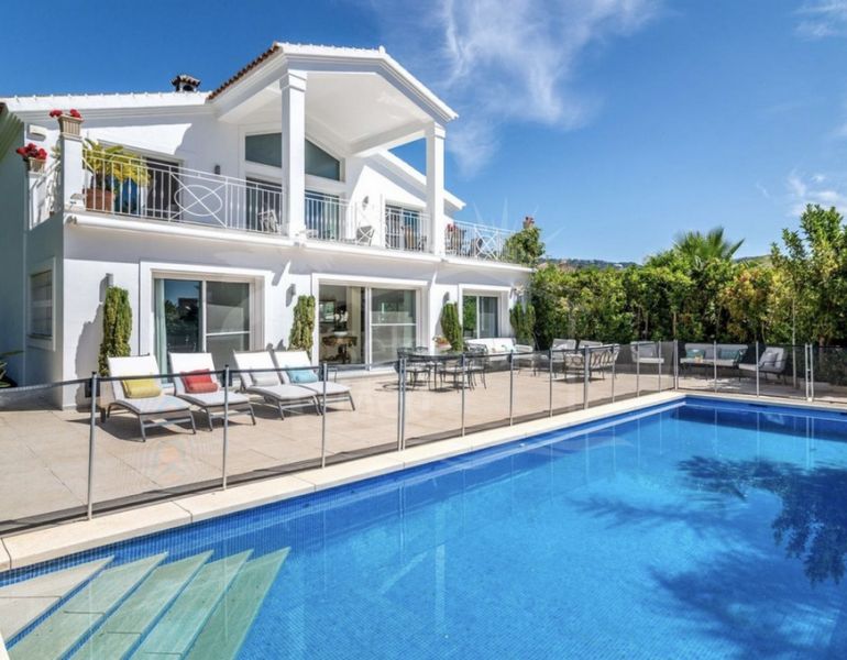 Elegant detached villa located in second line golf, just a short walk from the prestigious Santa María Golf Club, in one of the most established and sought-after residential areas of East Marbella. The property offers a total built area of 539...