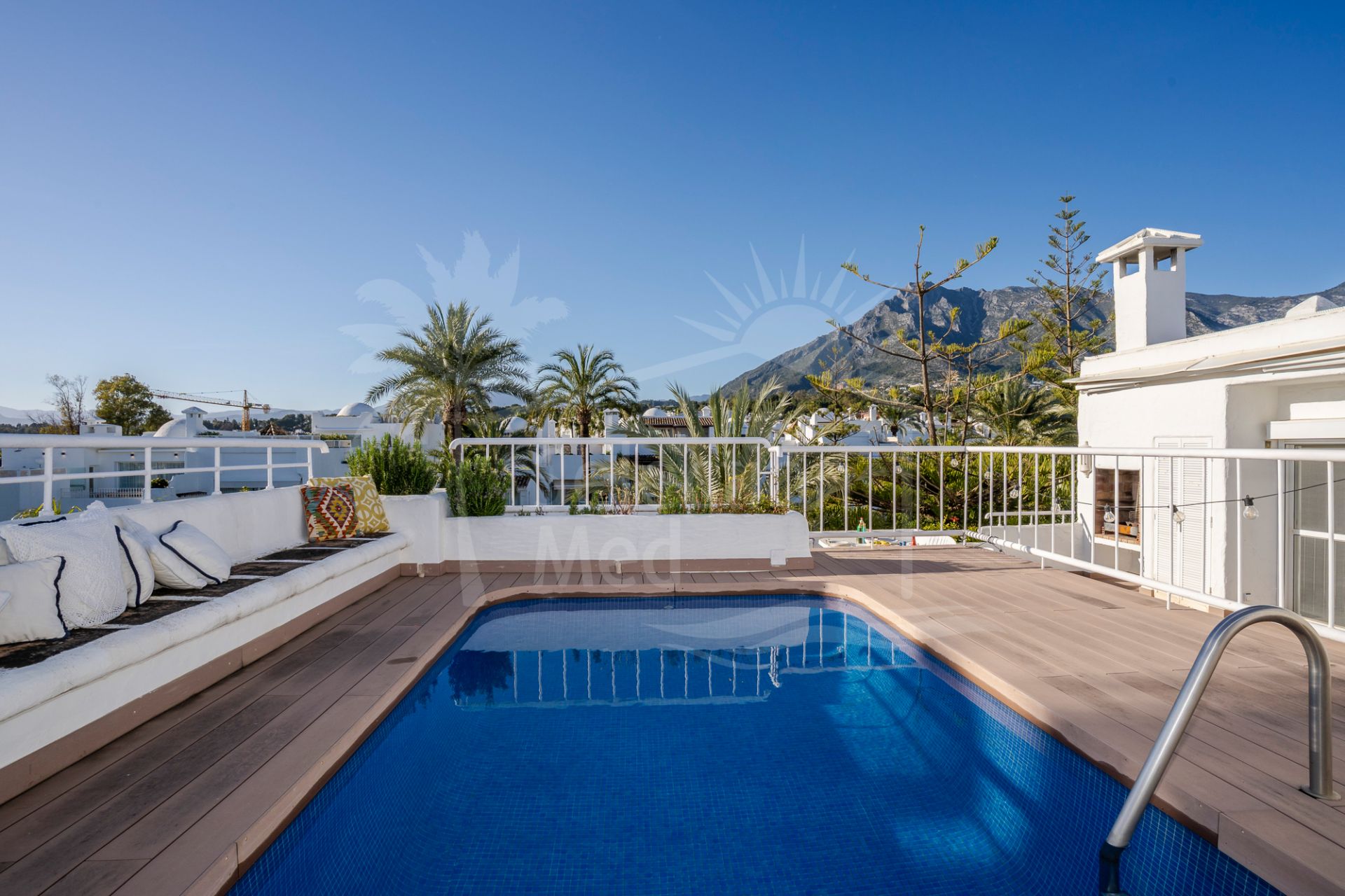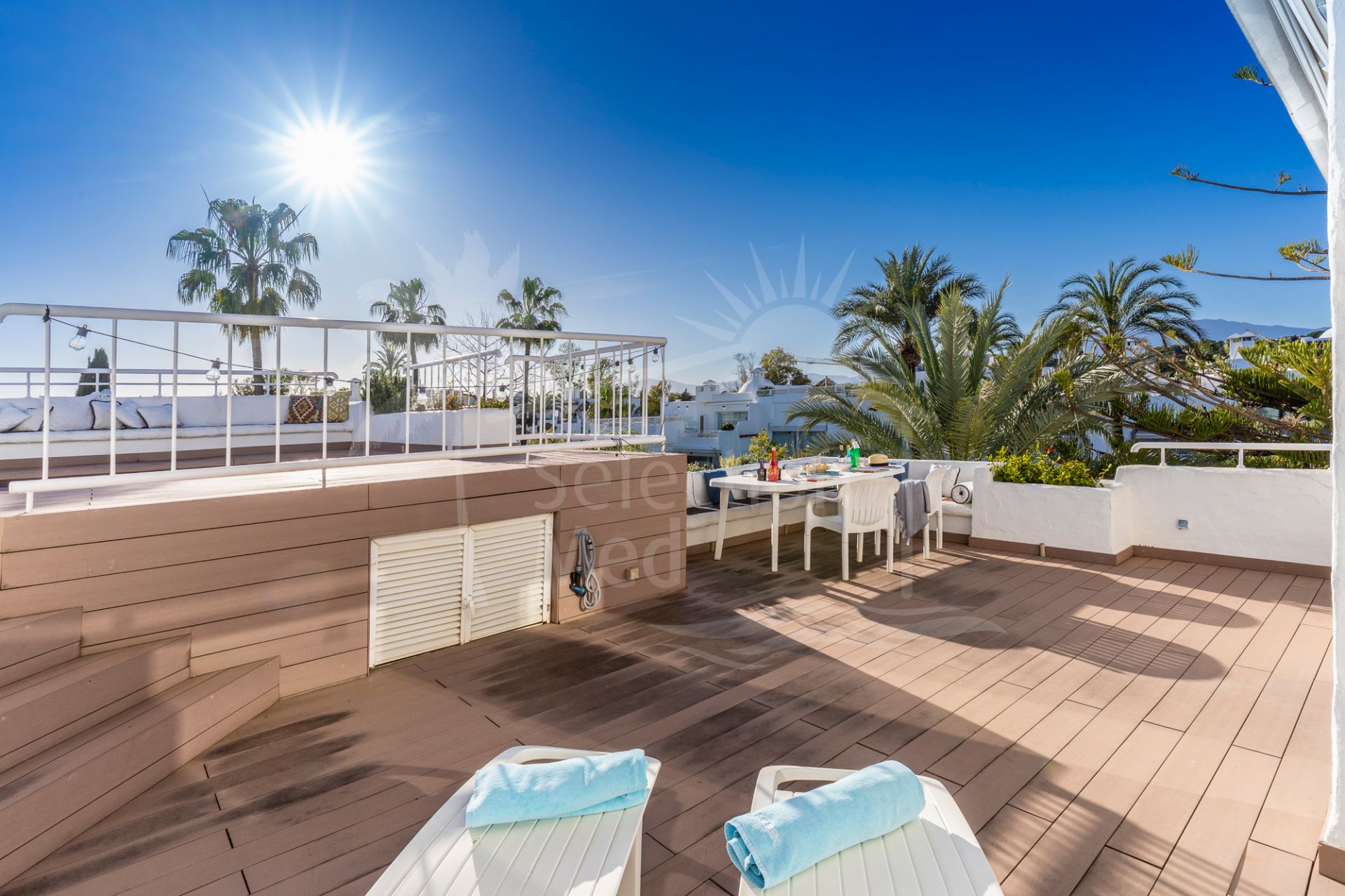 It has an uncovered parking inside the gated and guarded urbanization; it includes another underground parking space in the adjacent building. This penthouse is perfect for enjoying the sun by the sea of Marbella all year round.