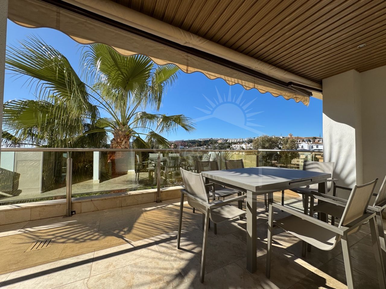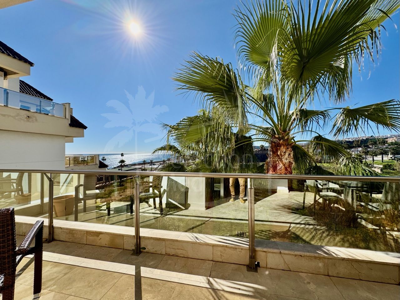 This quality apartment is located in Marina del Castillo, an exclusive beachfront development only a short walk from Puerto de la Duquesa. Set just above the promenade, the property enjoys direct sea views, a generous terrace surrounded by palm trees, and immediate access to the beach.