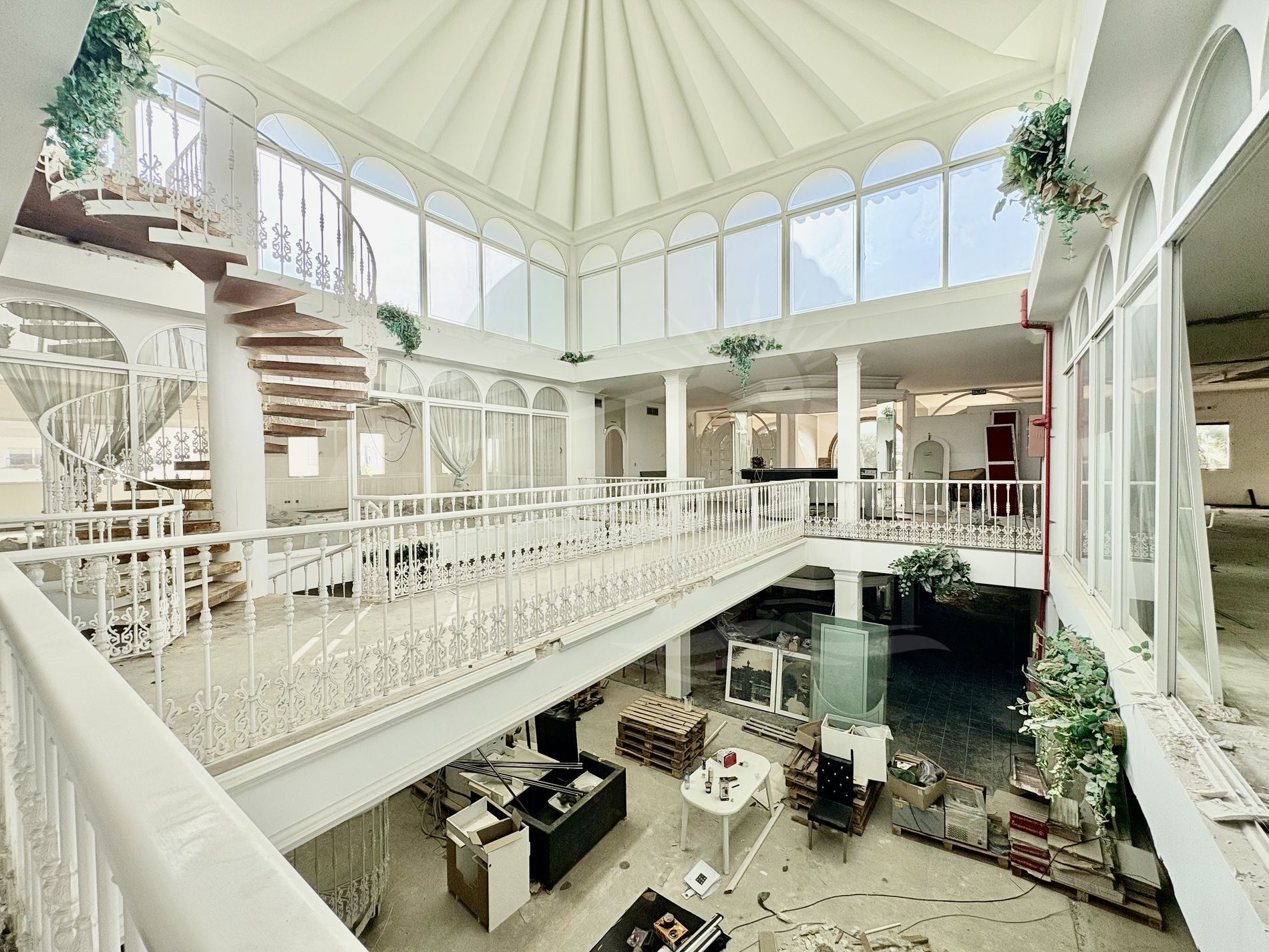 The building, spread across two main floors, offers generous open spaces with high ceilings and plenty of natural charm. It also features several private terraces: street-level terraces for easy access and visibility, additional terraces behind the property, and a rooftop terrace—perfect for a sky bar or lounge.