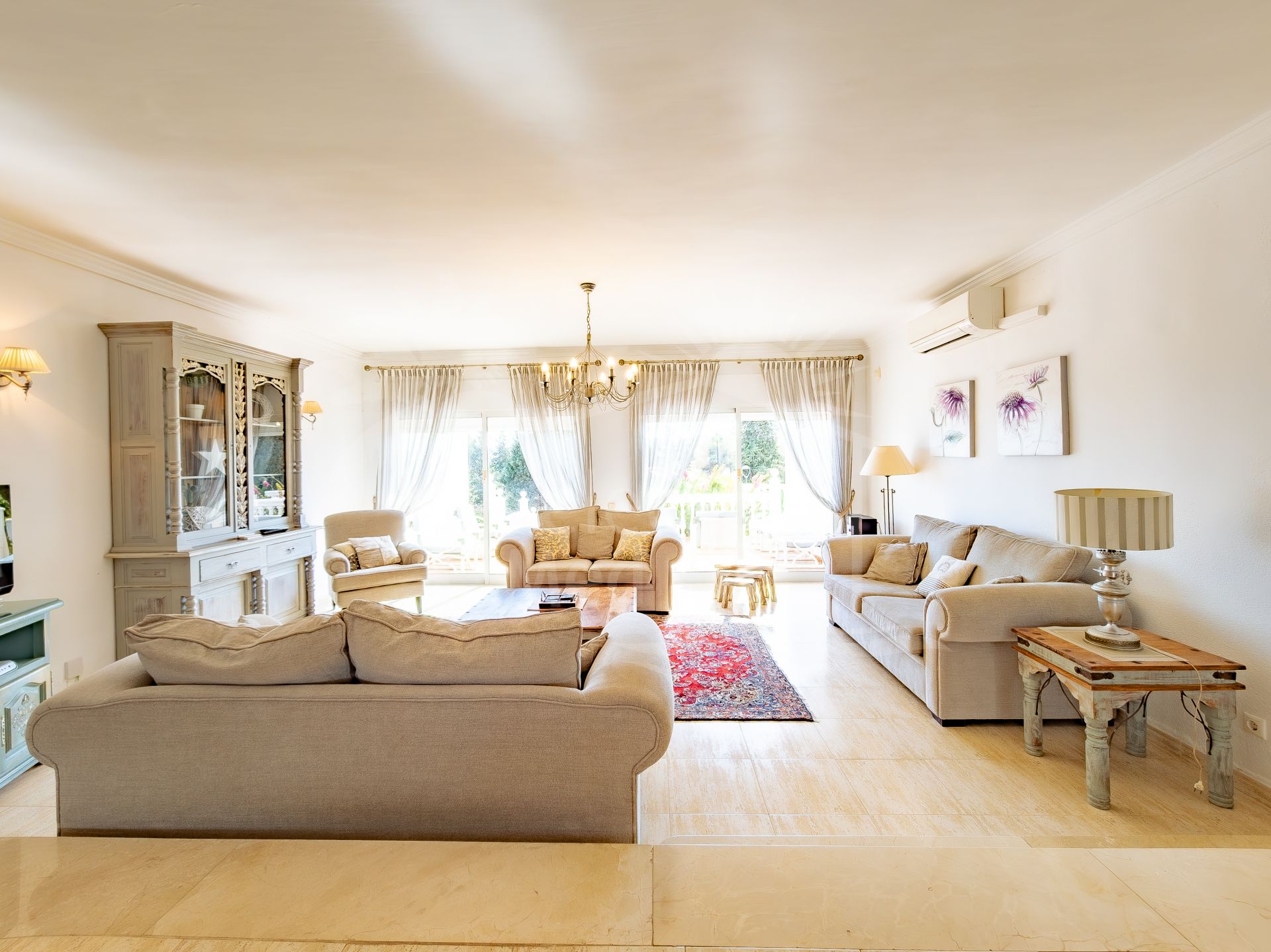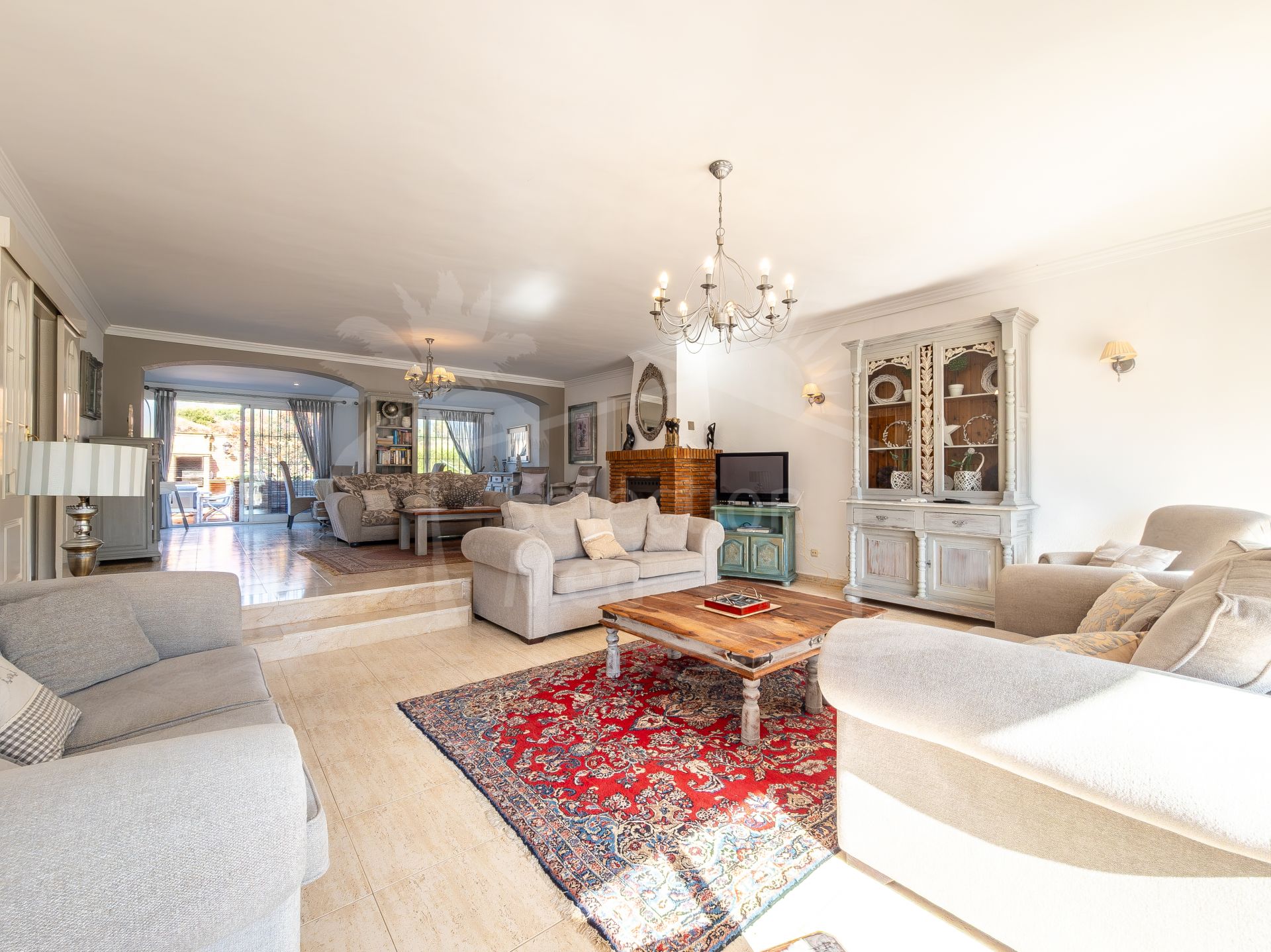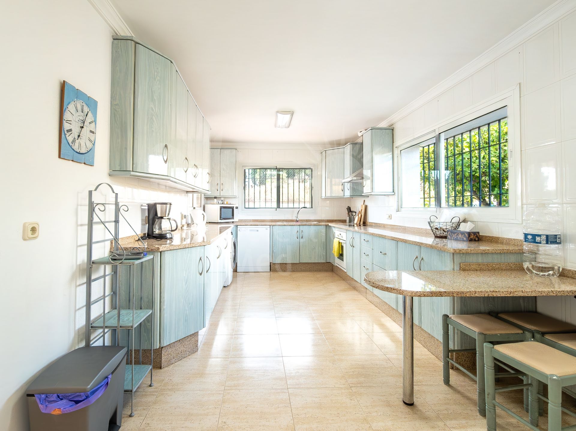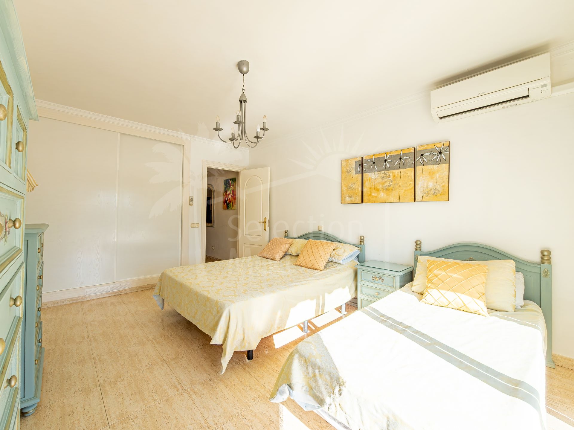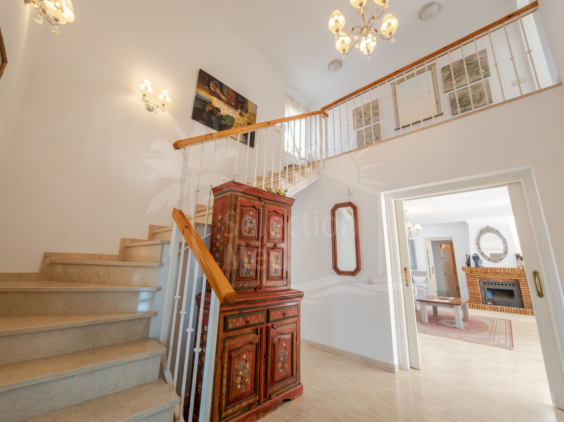 The villa features spacious and versatile accommodation, including five bedrooms and four bathrooms, three of which are en-suite. The interior presents a large living room, a dedicated dining area, and a well-equipped kitchen, complemented by a an office / bedroom for functionality. A guest room, guest toilet, and a ground floor patio further enhance the layout, while the private terrace, balcony, and covered terrace allow for seamless indoor-outdoor living. The property is wheelchair-accessible and in good condition, with significant potential for renovation to suit individual tastes.